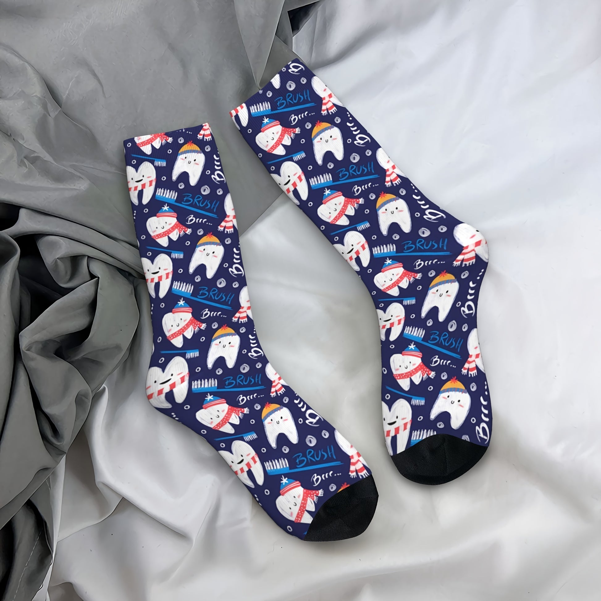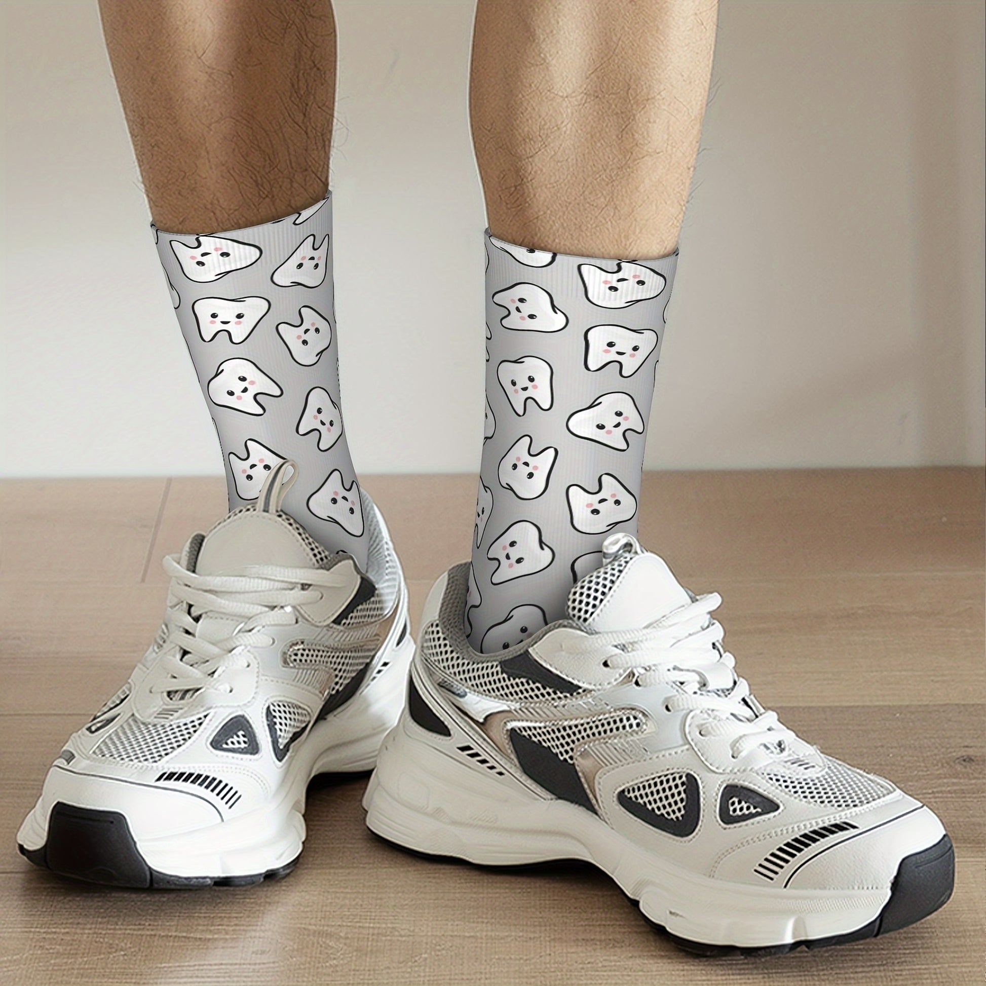 Мужские носки с 3D-принтом зубов, дышащая вязка, для всех сезонов