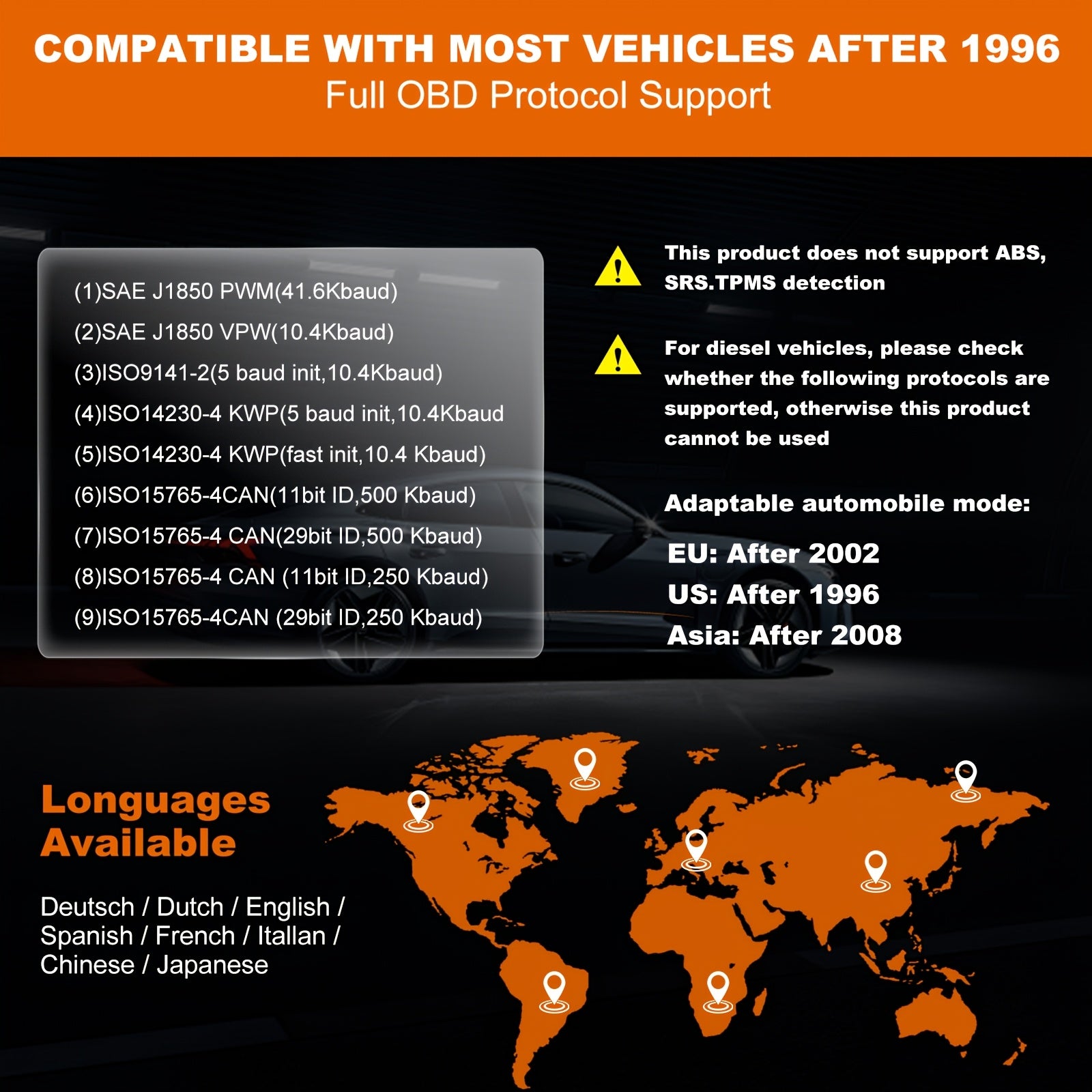 OBD2 Автомобильный сканер кодов, считыватель ошибок двигателя, диагностический инструмент для транспортных средств