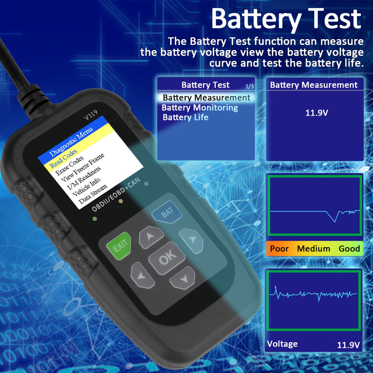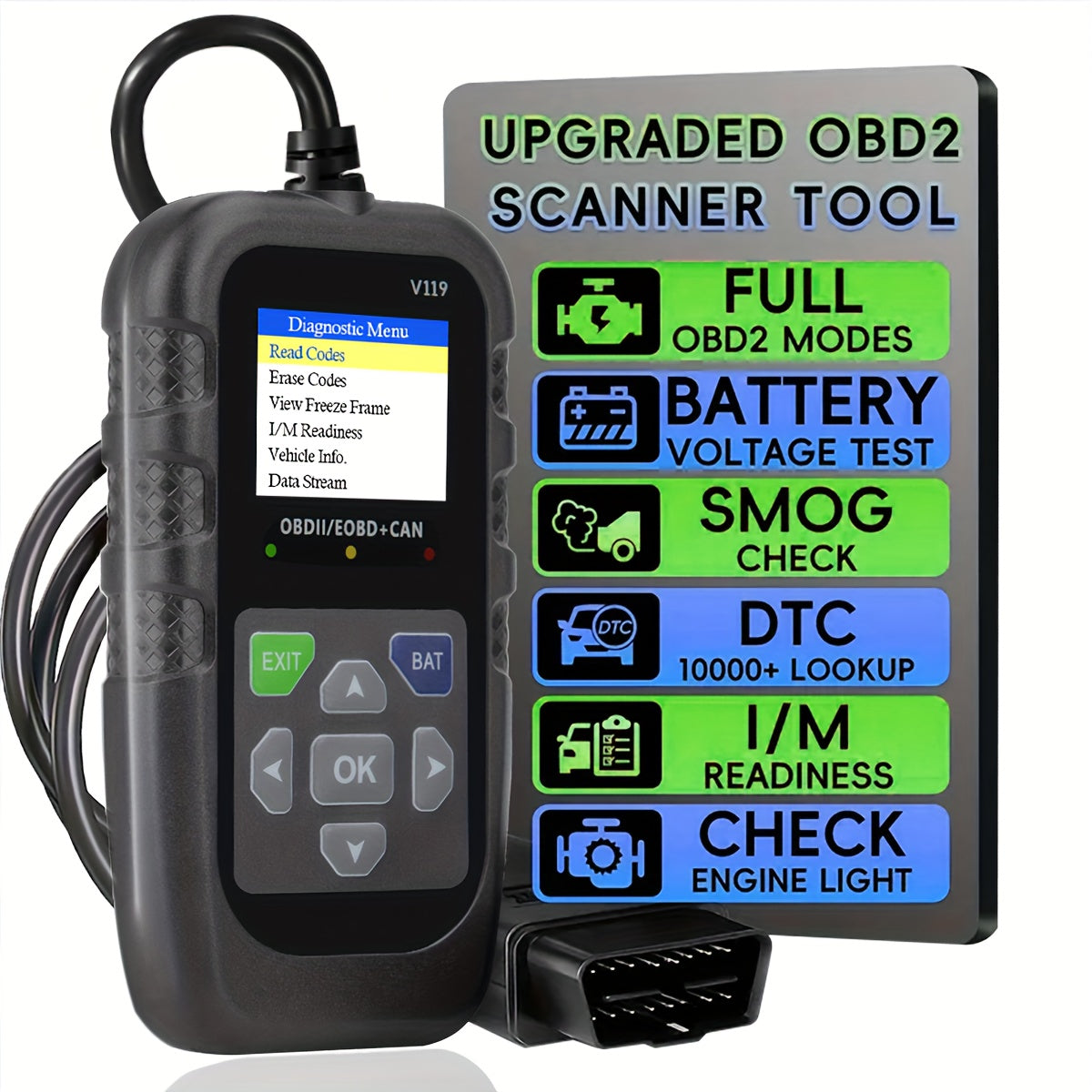 OBD2 Сканер диагностический инструмент для автомобиля, считыватель кодов неисправностей двигателя, EOBD CAN