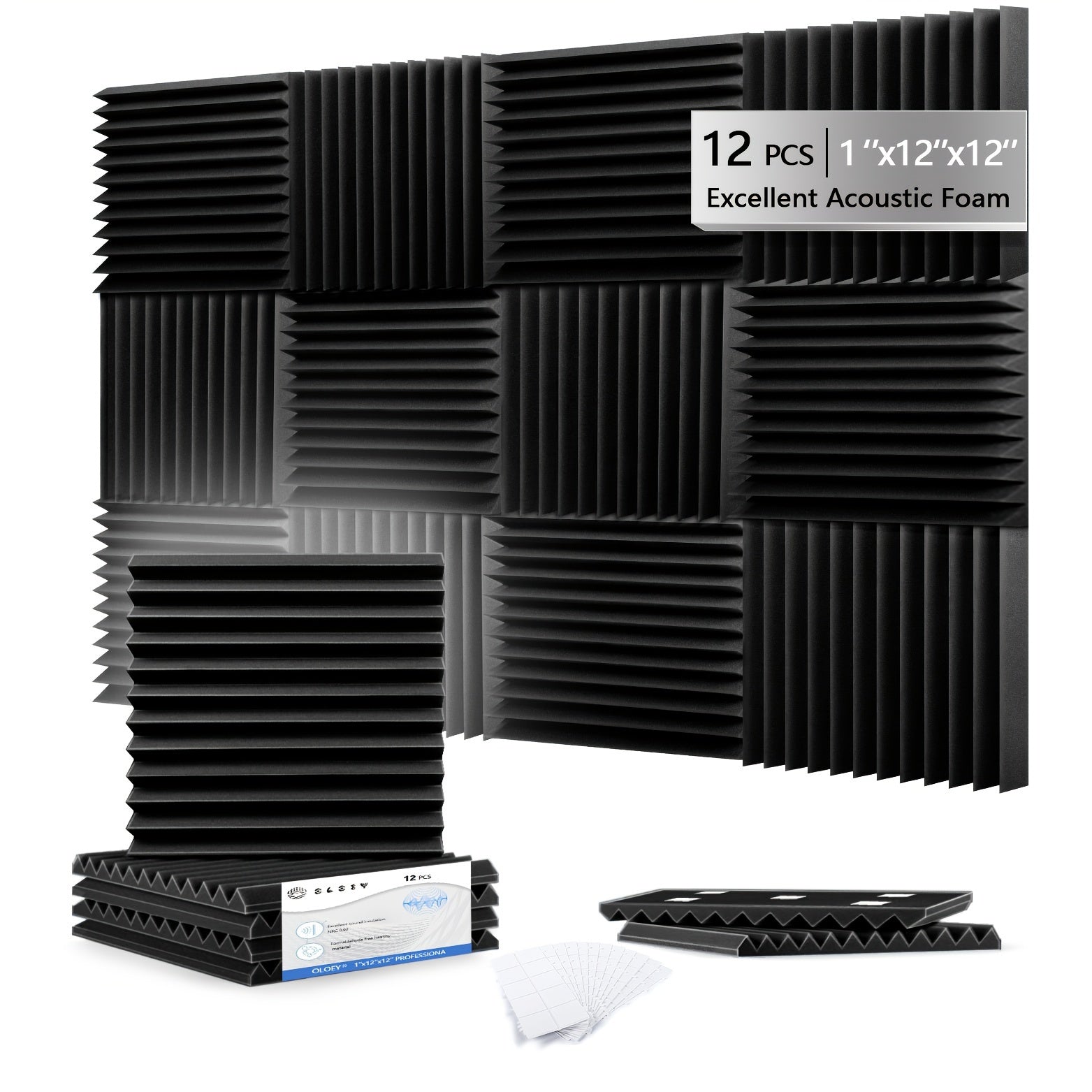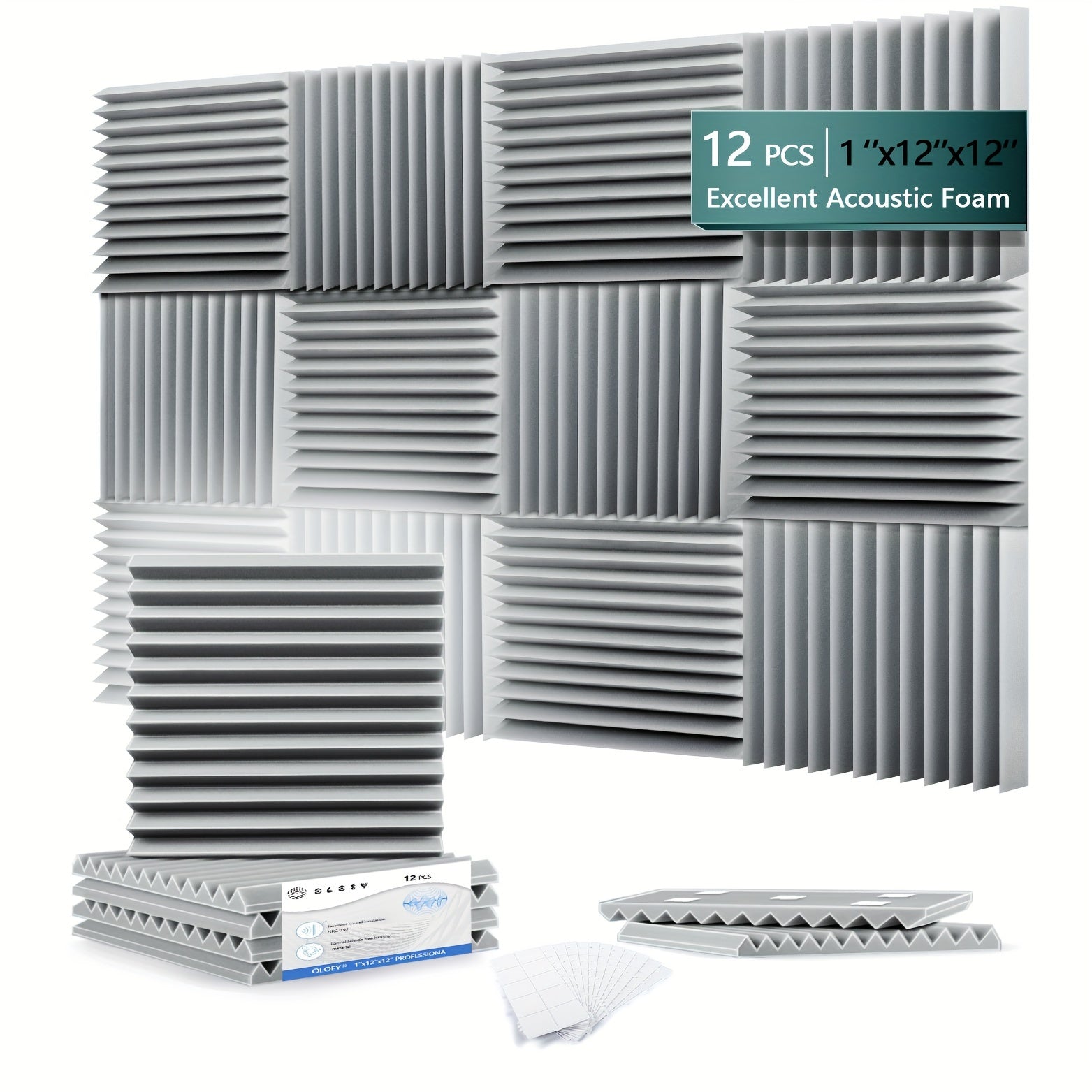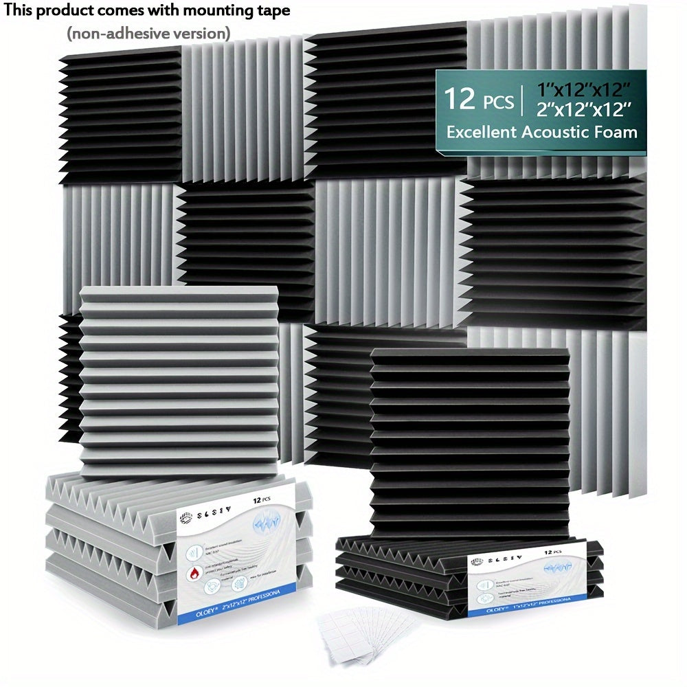 12 штук акустических панелей из пенопласта для снижения шума, звукоизоляции, белые, черные, серые, 30x30x2.5 см