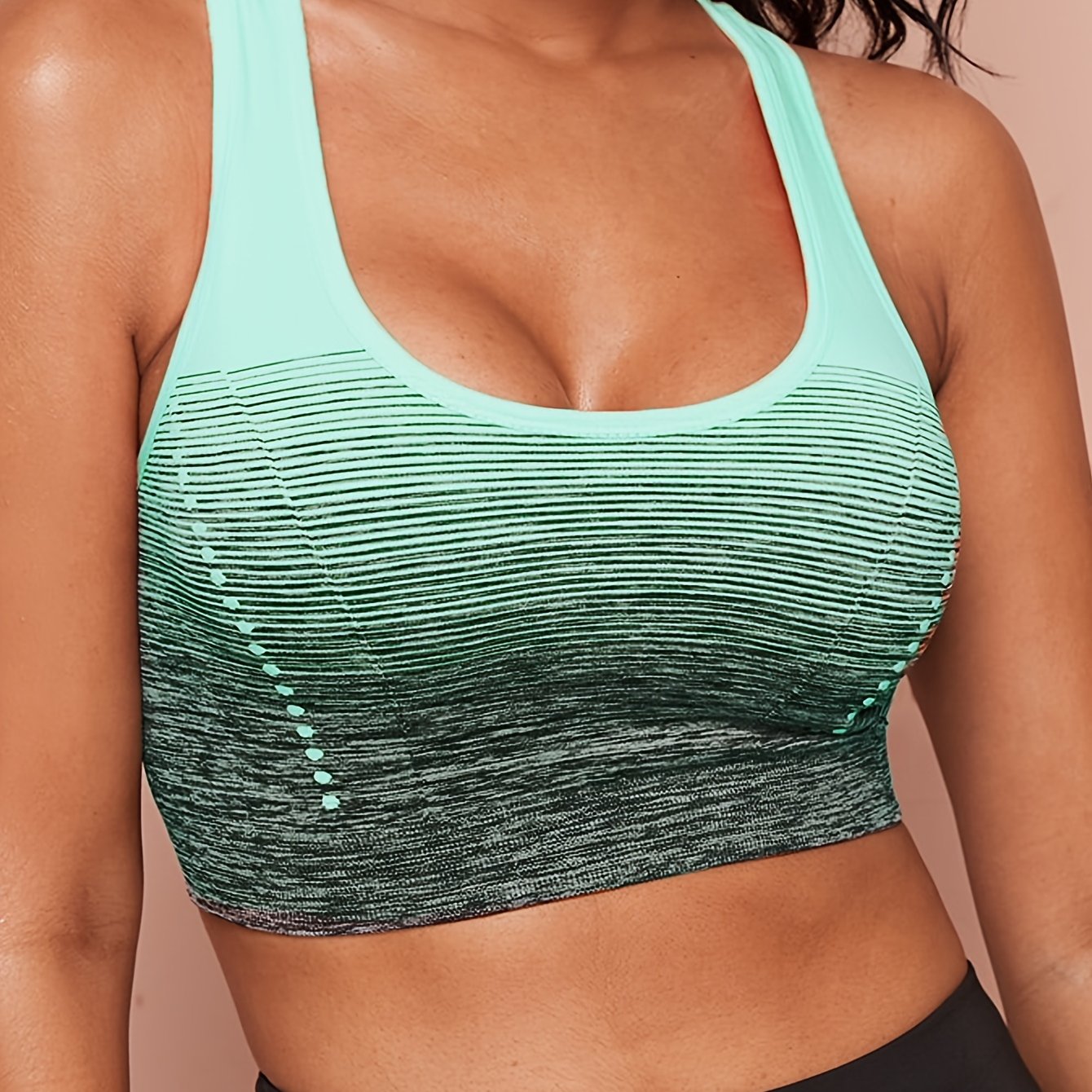 Спортивный бюстгальтер с принтом в полоску Ombre и шокопоглощающим пуш-апом, с racer back для женского нижнего белья и трусиков