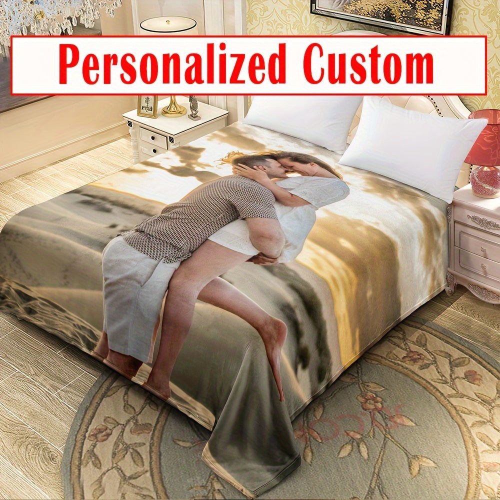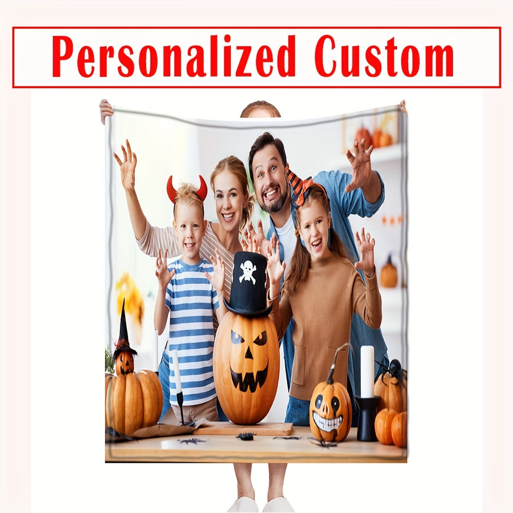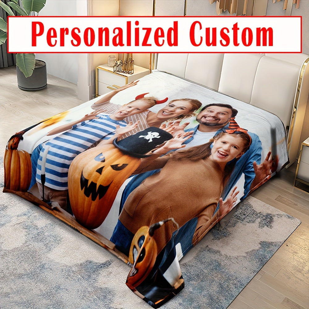 Одеяло из фланели на заказ с вашим собственным фото и текстом - реверсивный микрофибровый плед для всех сезонов, легко чистится, персонализированная цифровая печать для Рождества, Хэллоуина, дней рождения и свадеб - включает 1 одеяло