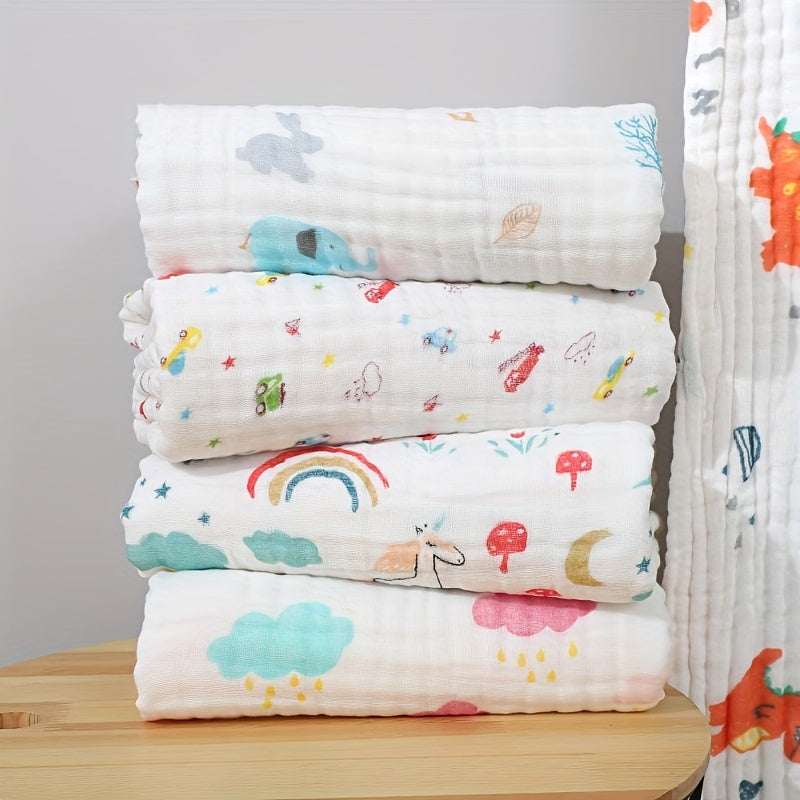 Одна штука 4-слойного марлевого банного полотенца из хлопка. Это полотенце также служит одеялом и имеет мягкий, милый принт.