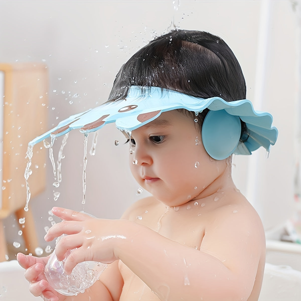 Одна водонепроницаемая EVA шапка для ванной с регулируемым размером и защитой ушей в синем и розовом цветах для детей до 6 лет - 1 штука