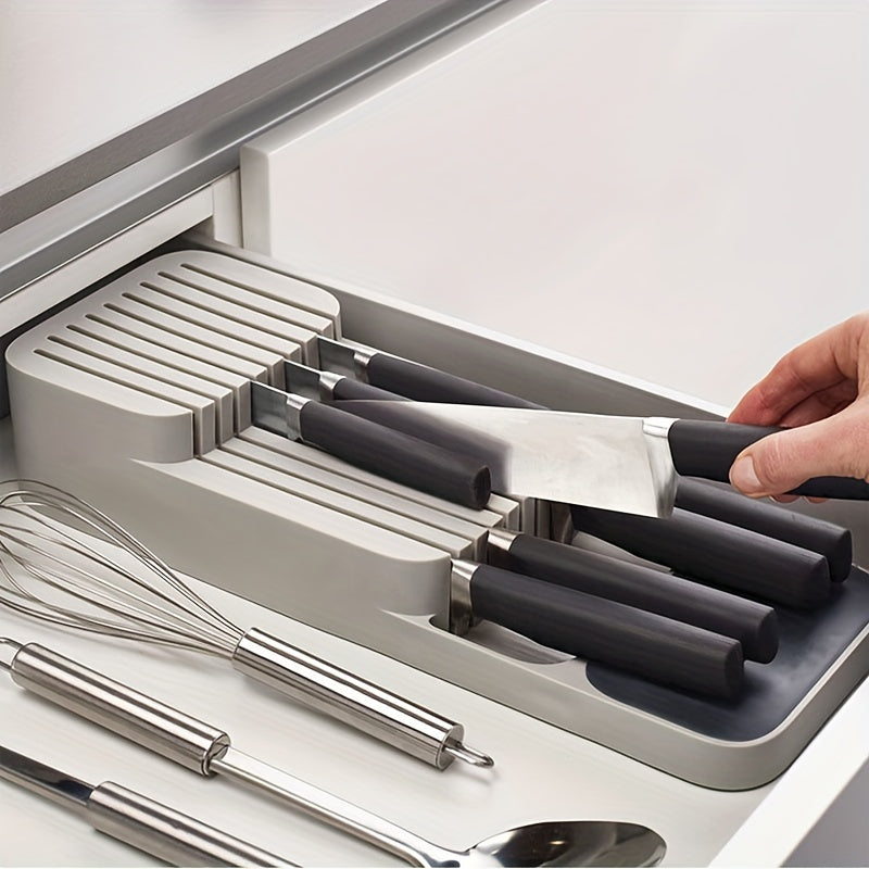 Организуйте свою кухню с помощью 1-секционного лотка для ножей — вмещает 9 ножей и помещается в любой ящик. Идеальное решение для хранения ножей!