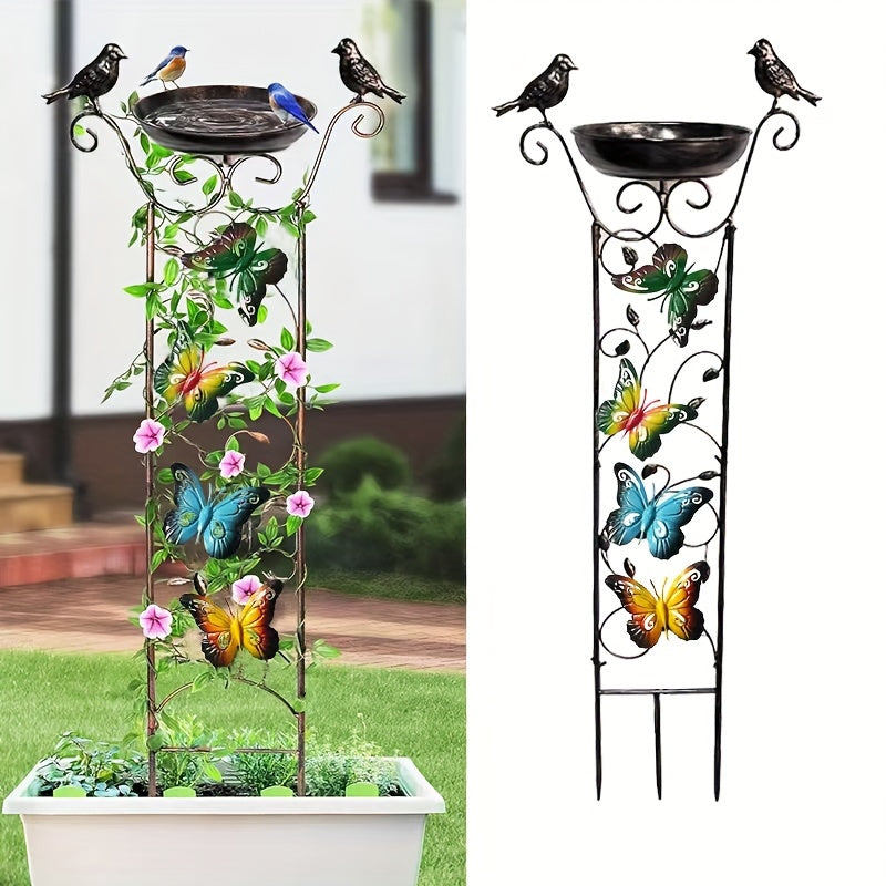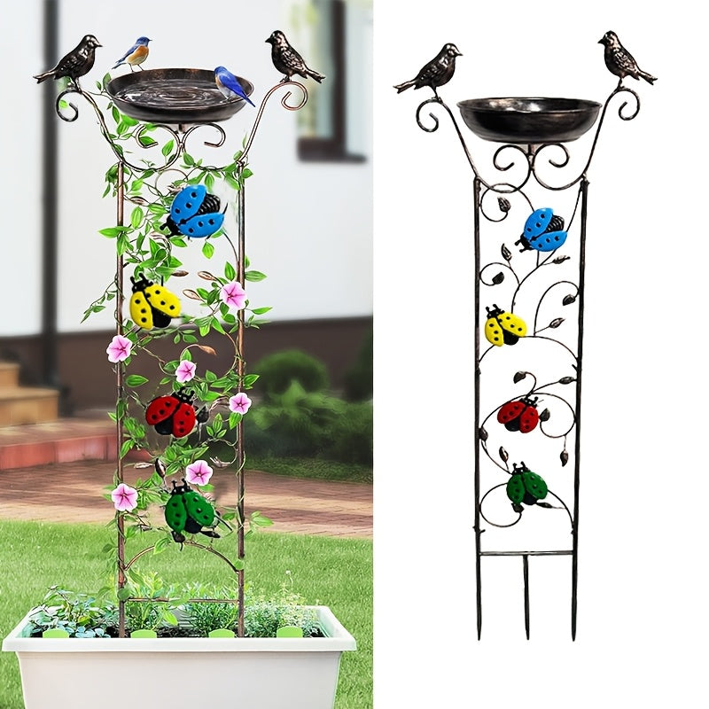 Античная железная уличная купальня для птиц и садовая решетка с съемной опорой для вьющихся растений