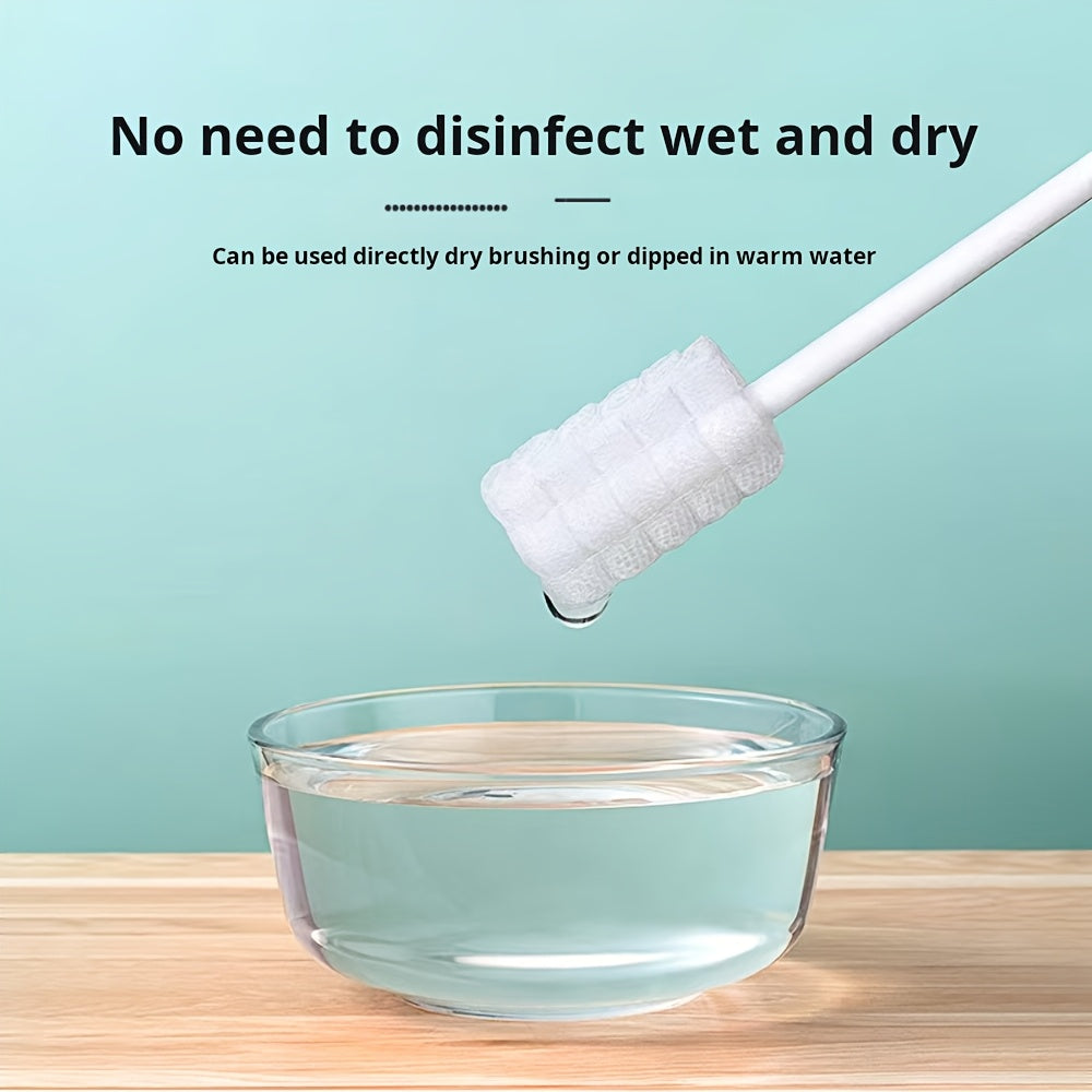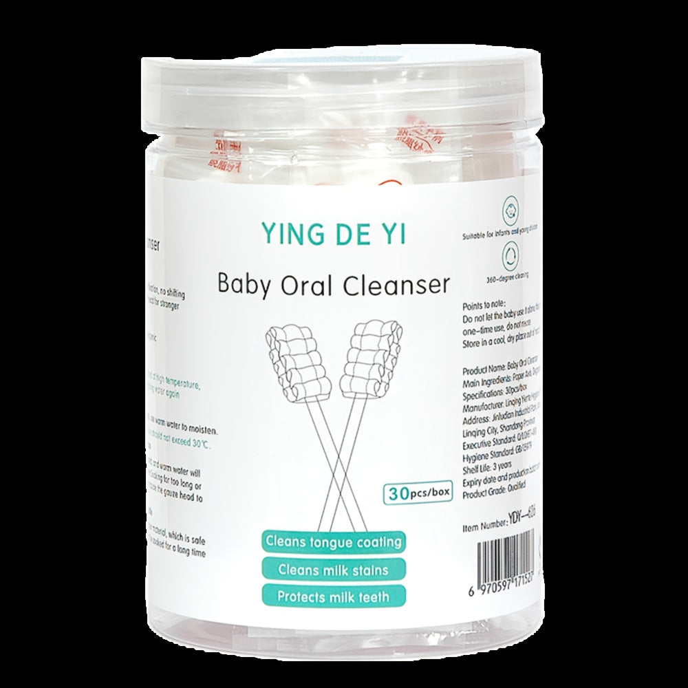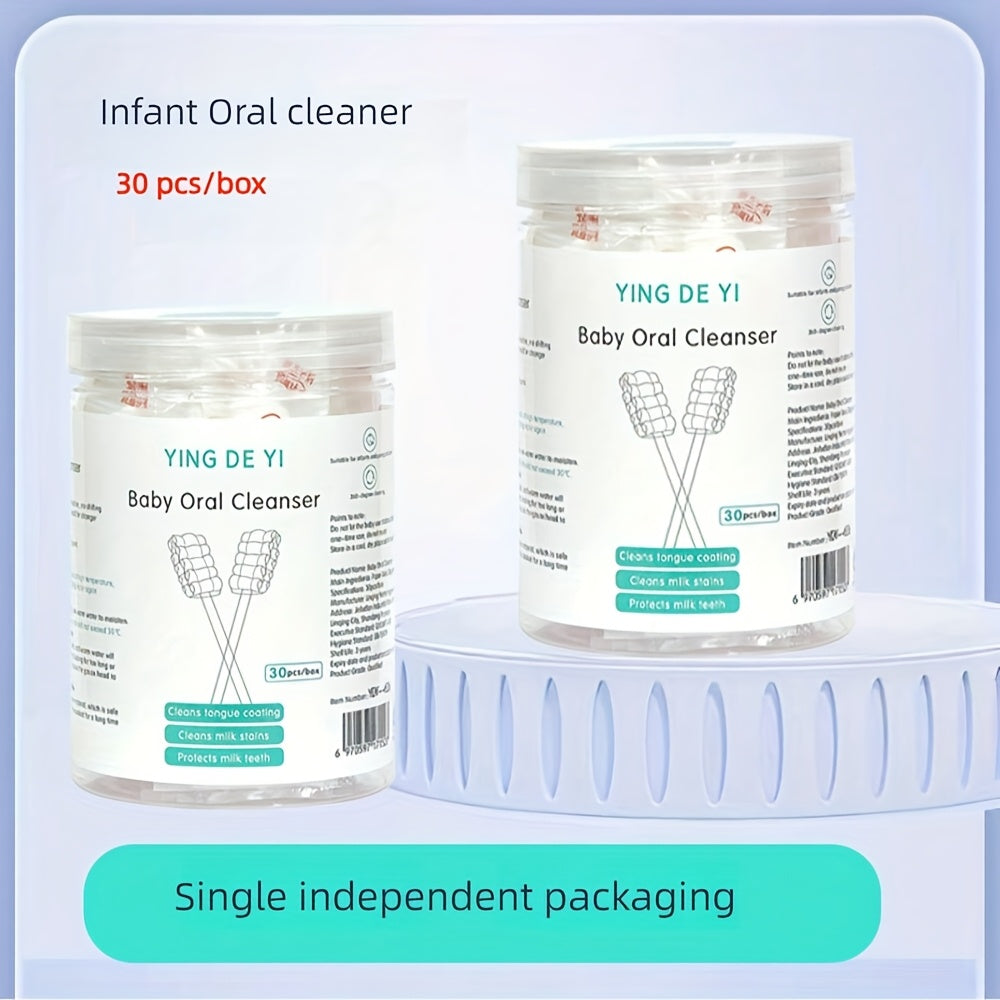 Упаковка из 30 одноразовых зубных щеток YING DE YI, предназначенных для бережного и безопасного ухода за зубами новорожденных и малышей с мягкой щетиной.