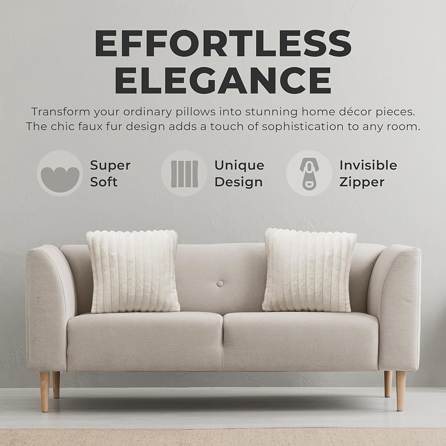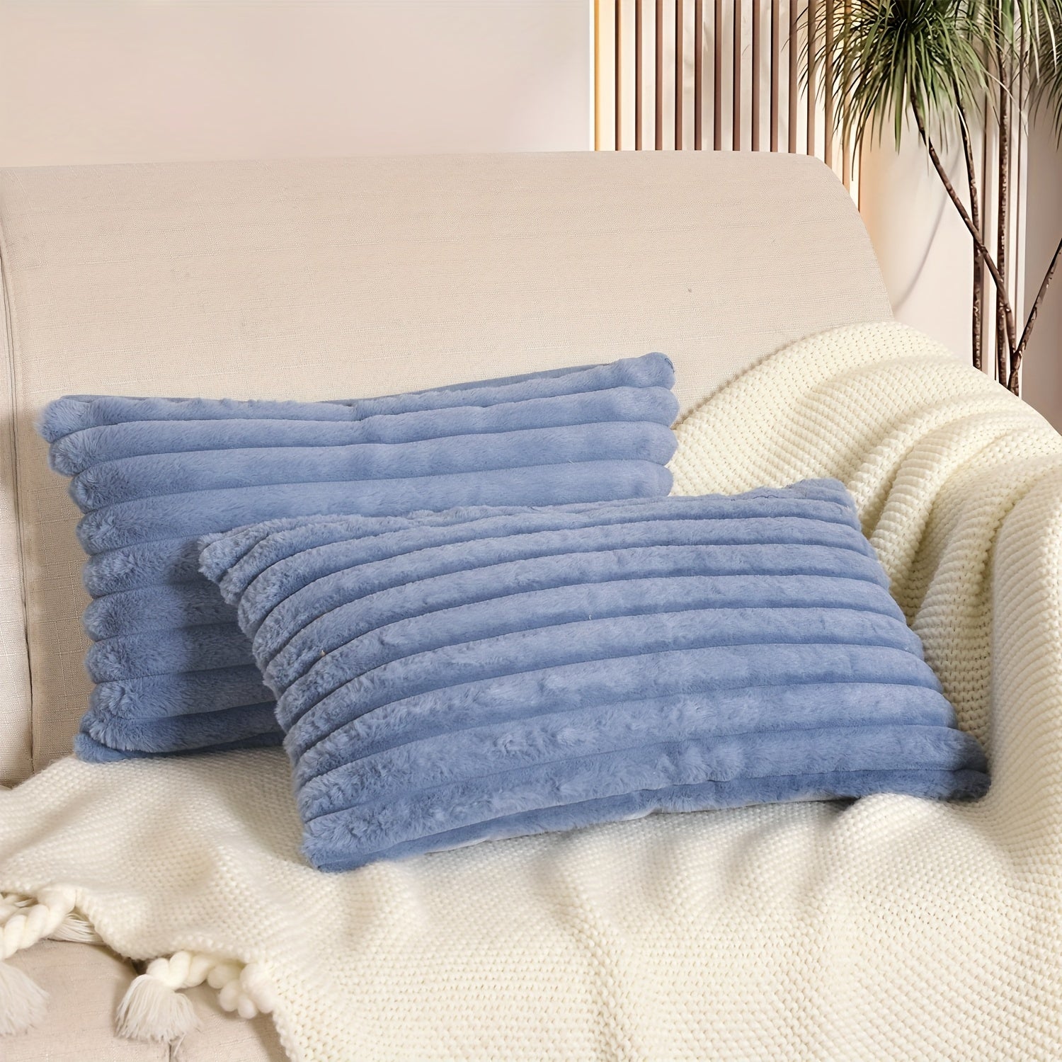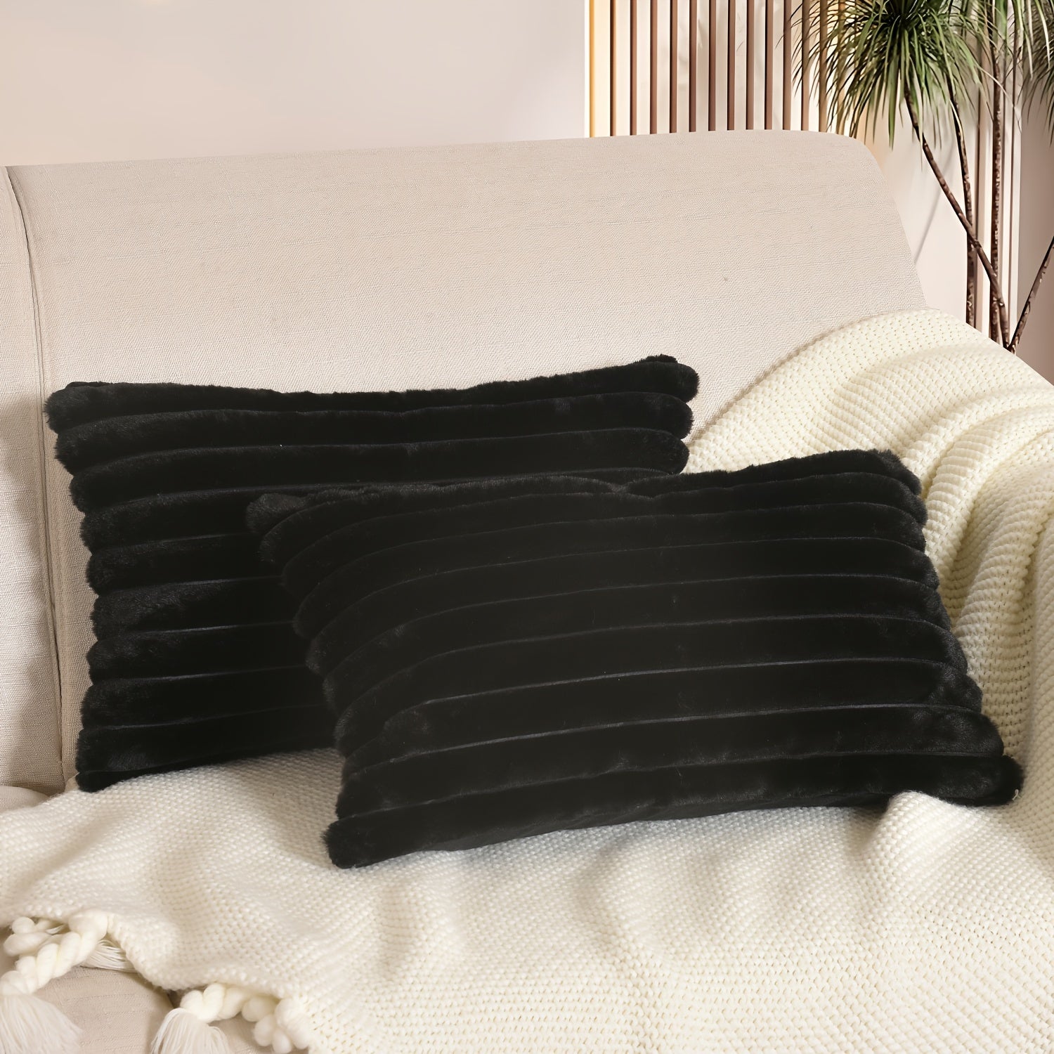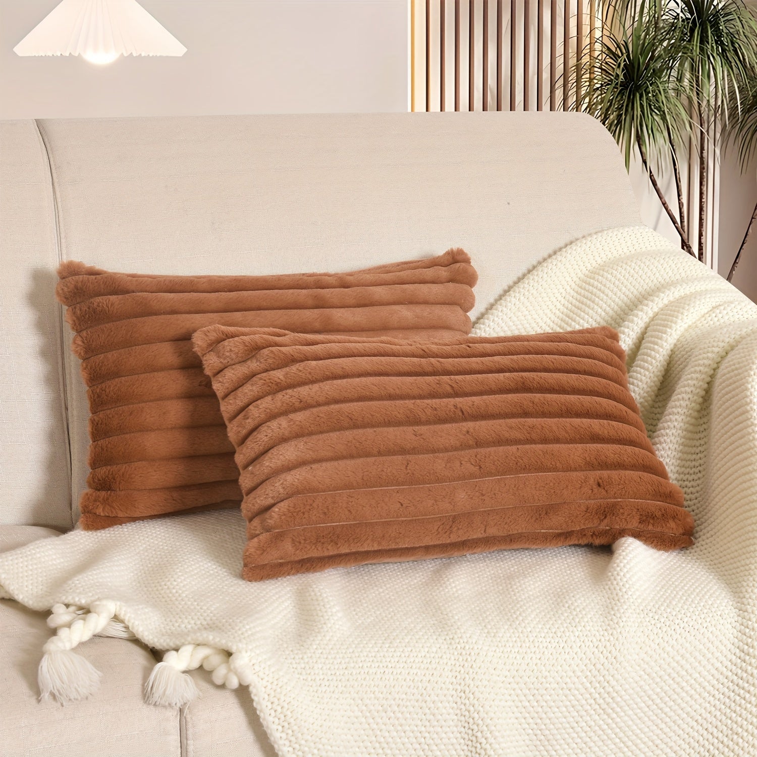 Пара чехлов для подушек из искусственной шерсти в стиле бохо шик с застежкой-молнией, идеальных для декора дивана и спальни.