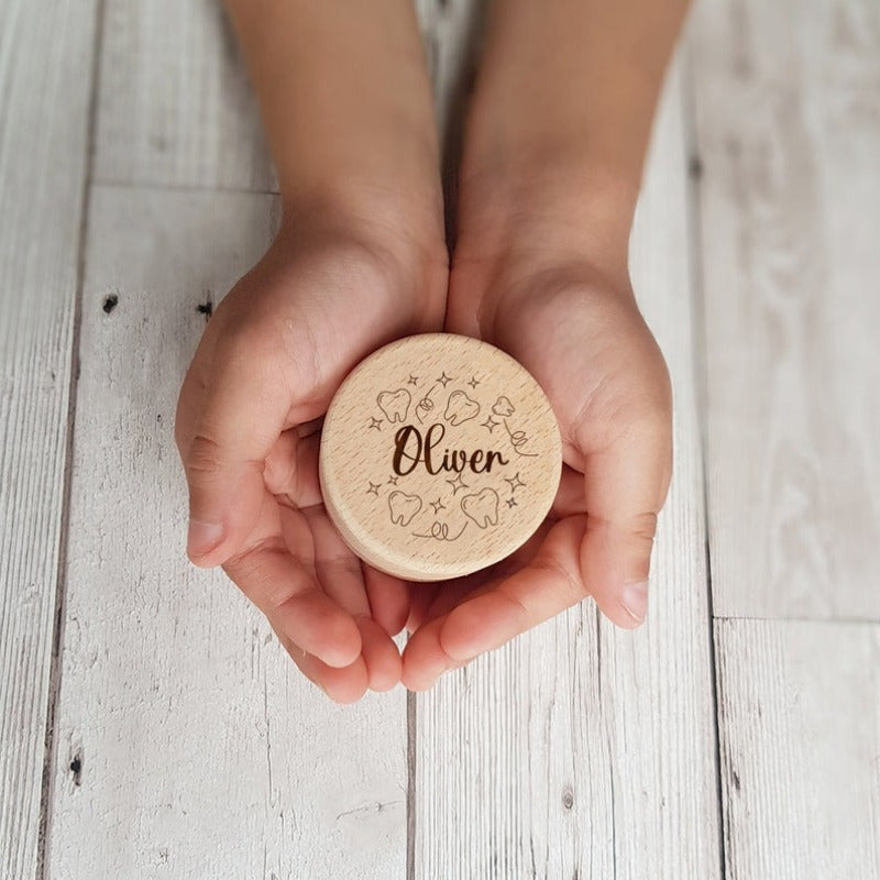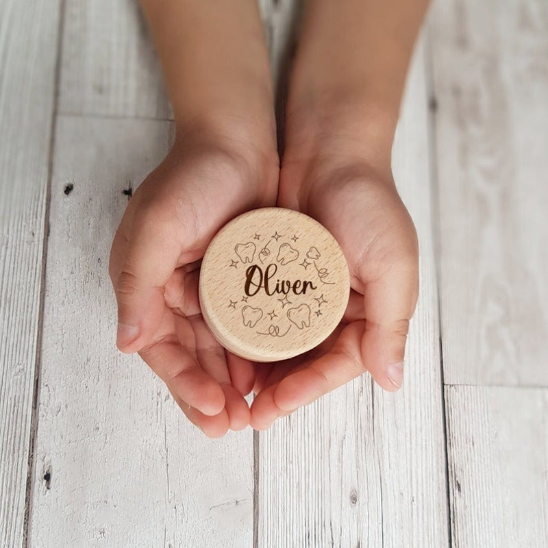 Персонализированная деревянная коробка для зубов на 1 шт. для мальчиков и девочек, сувенир для зубной феи с индивидуальным именем