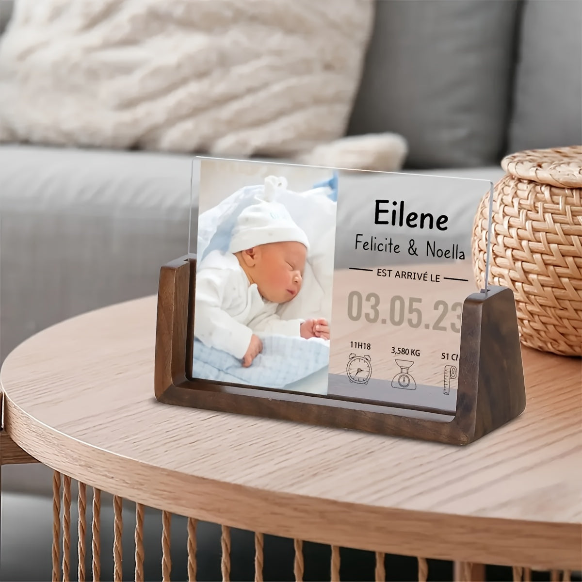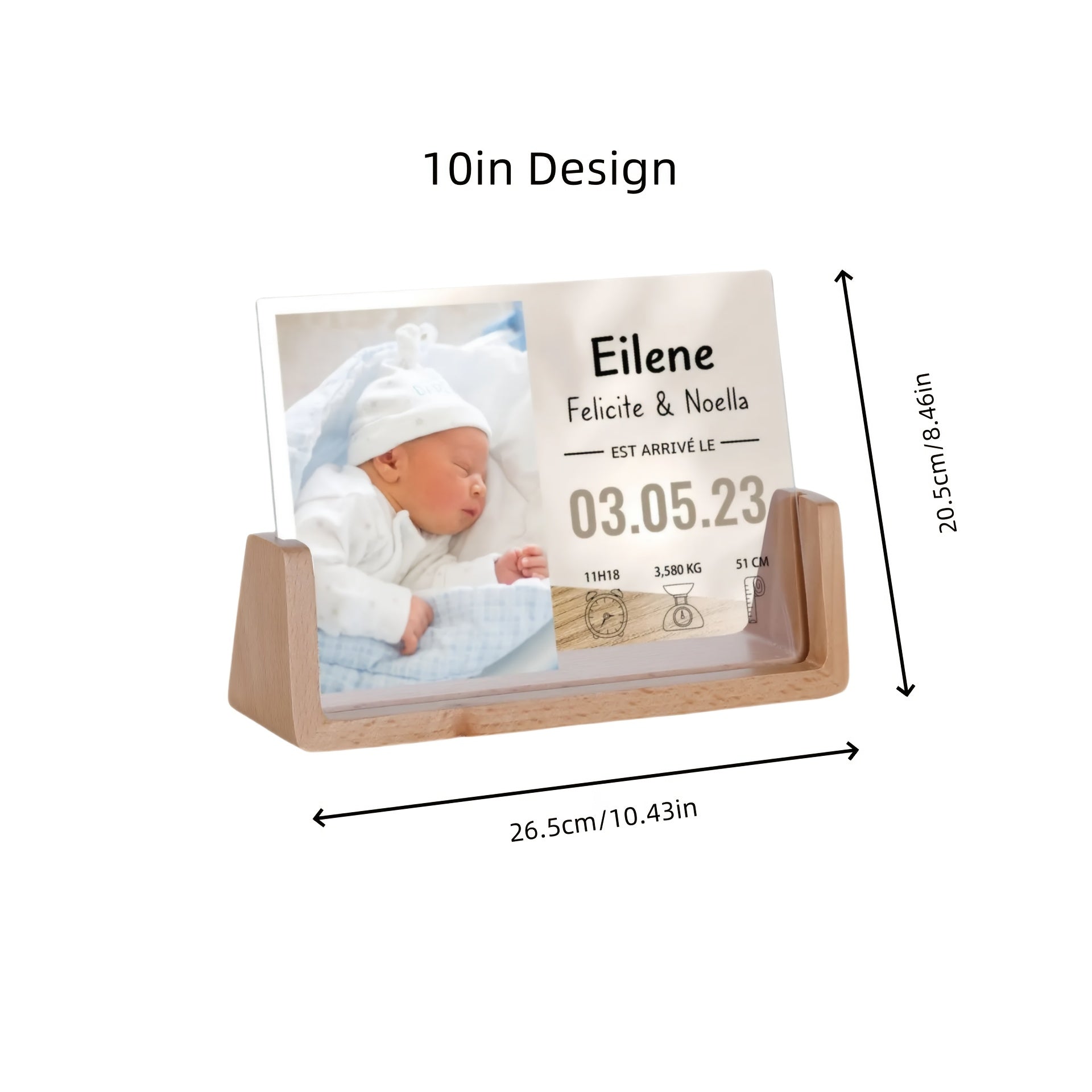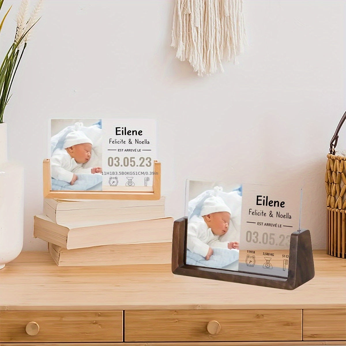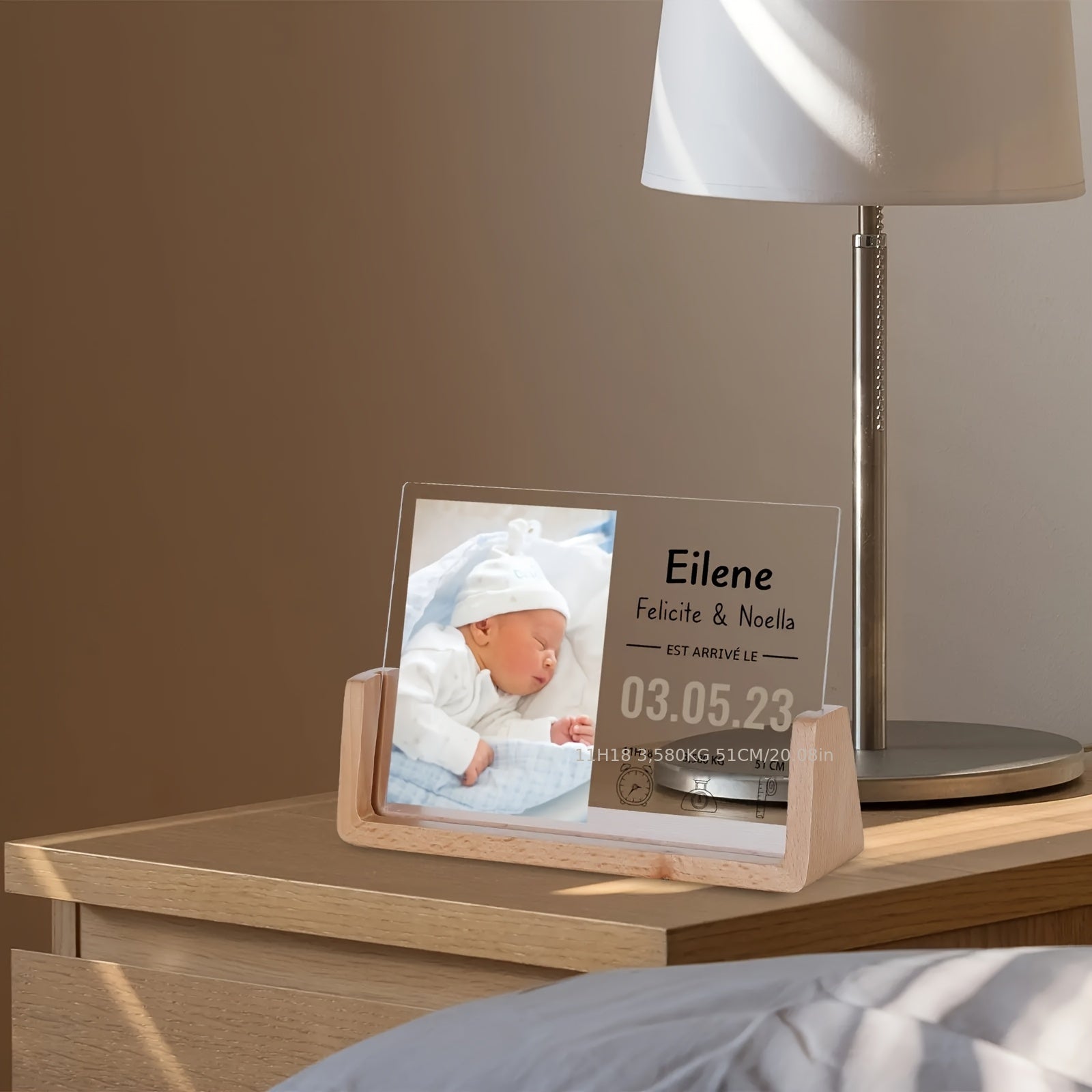 Персонализированная фоторамка для новорожденных - акриловая УФ-печать, памятный предмет с матовой черной подставкой для декора детской - настраиваемая