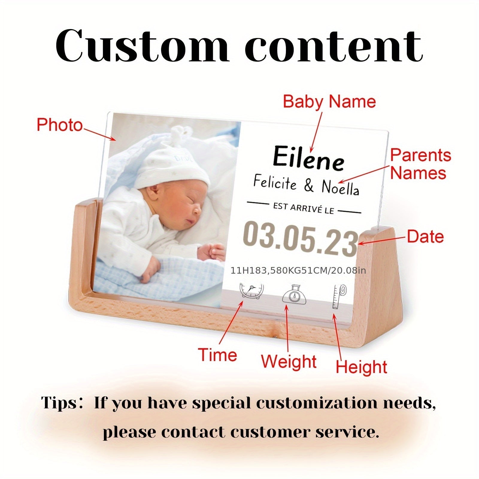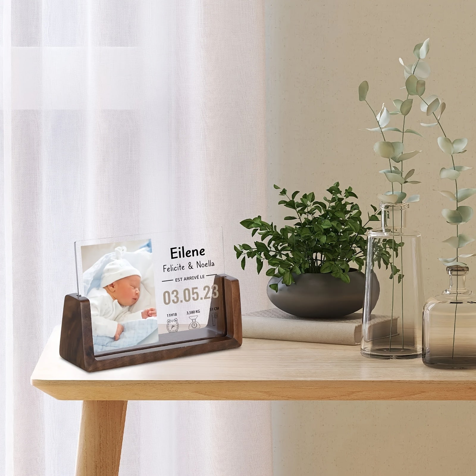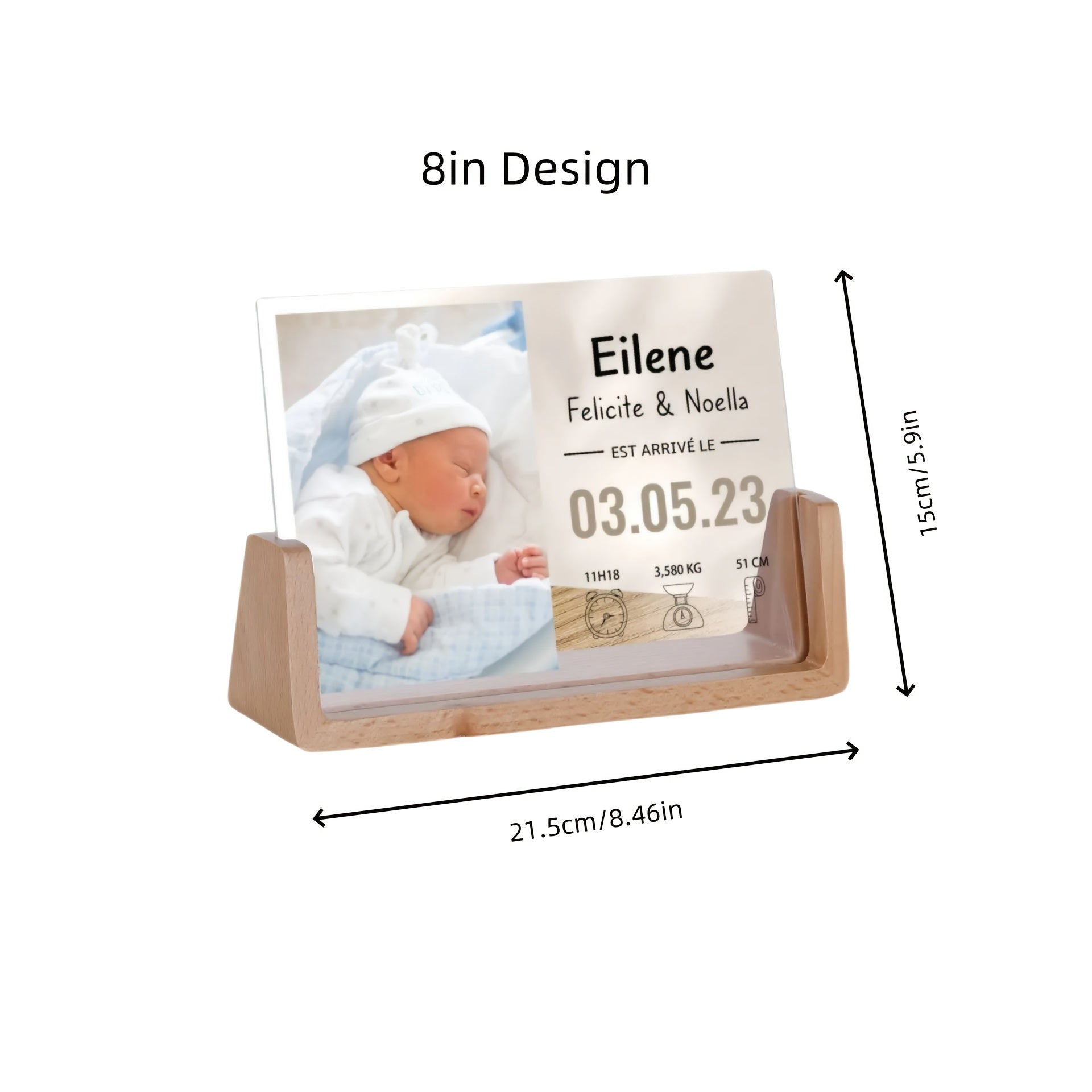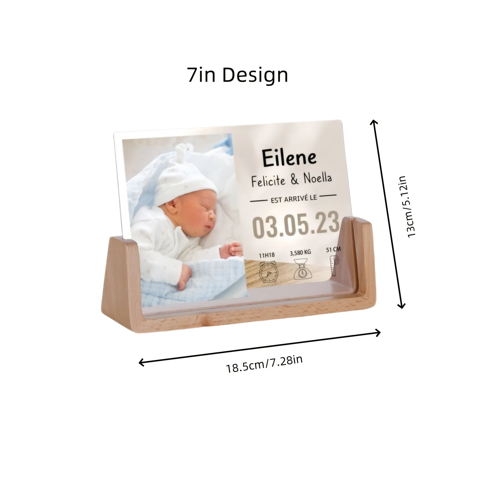 Персонализированная фоторамка для новорожденных - акриловая УФ-печать, памятный предмет с матовой черной подставкой для декора детской - настраиваемая