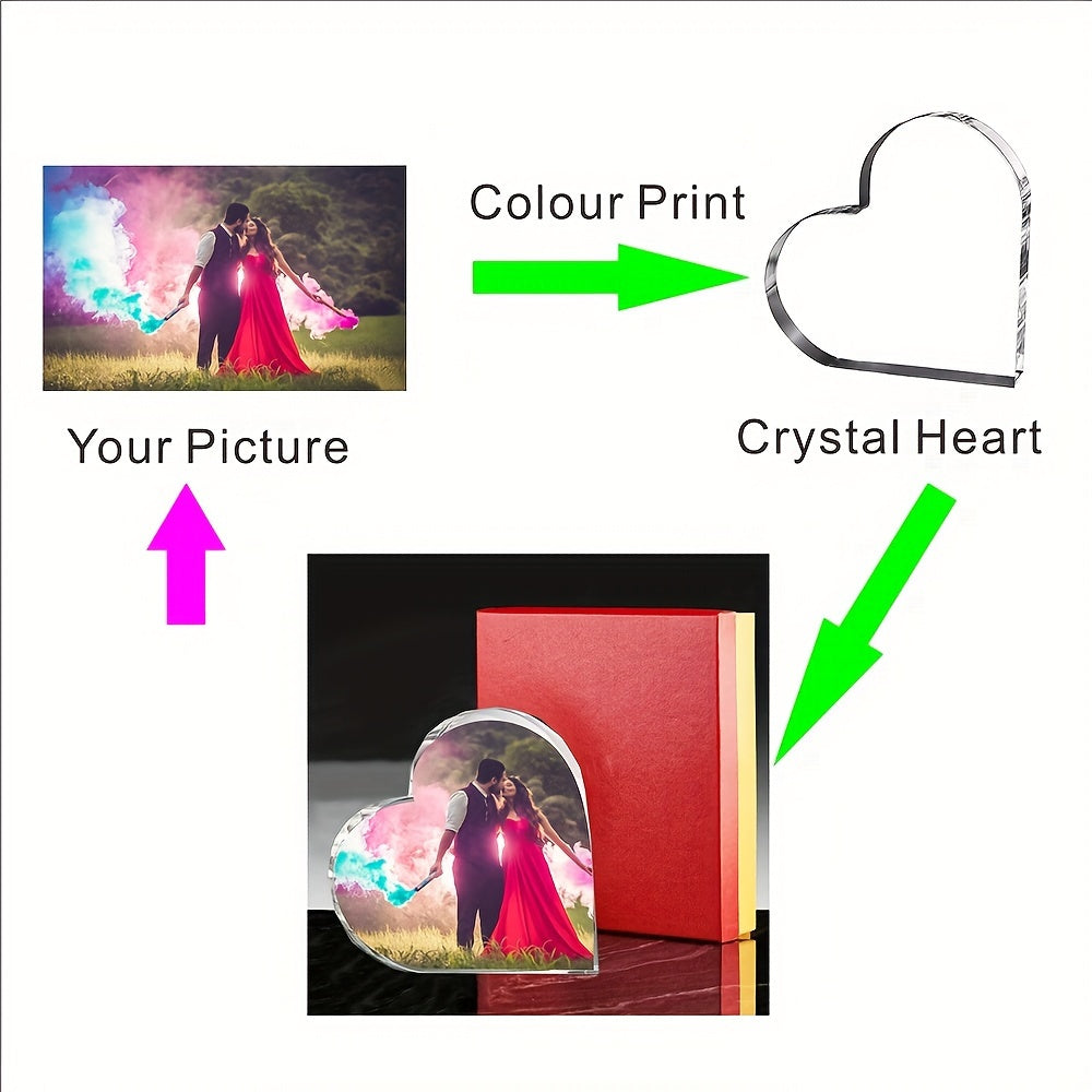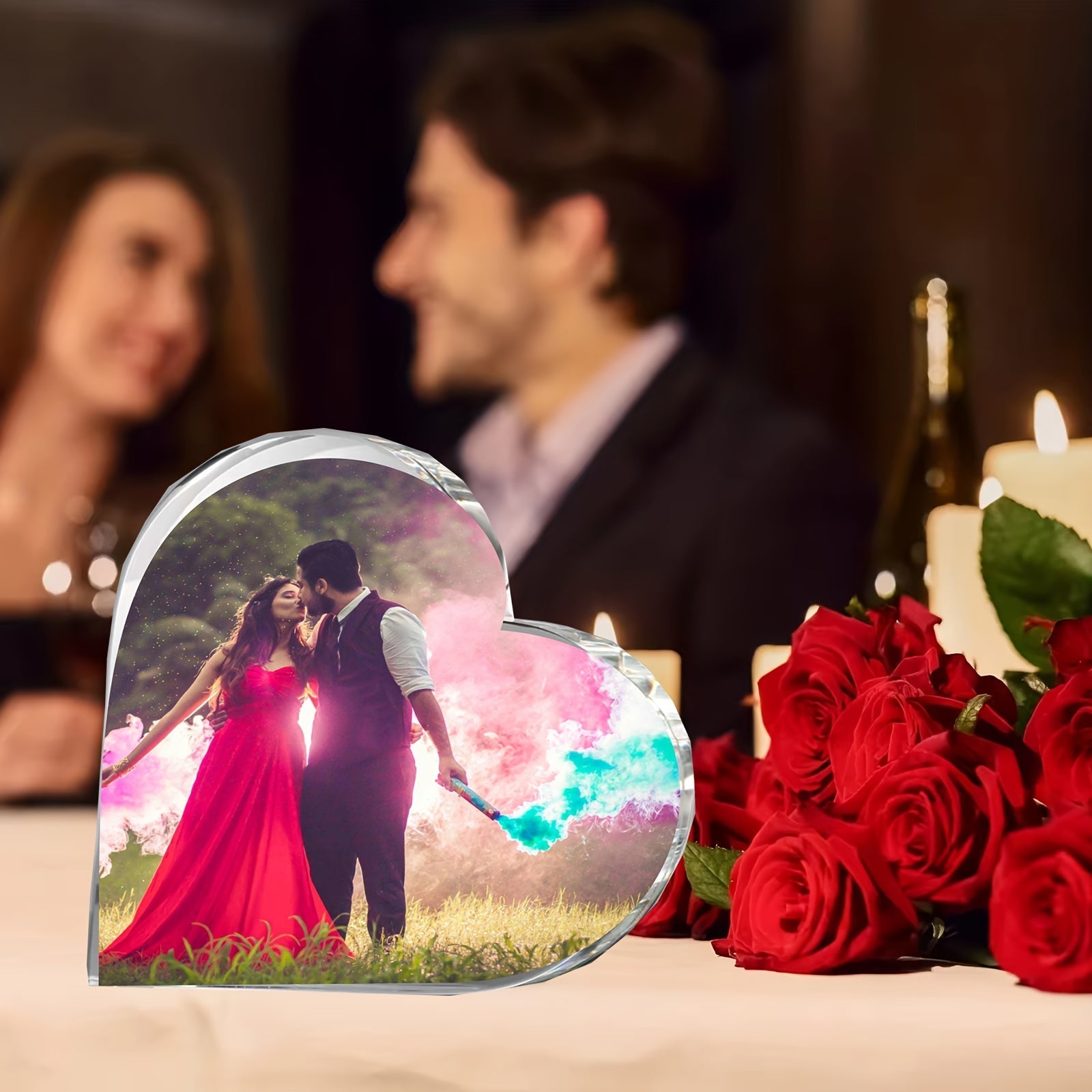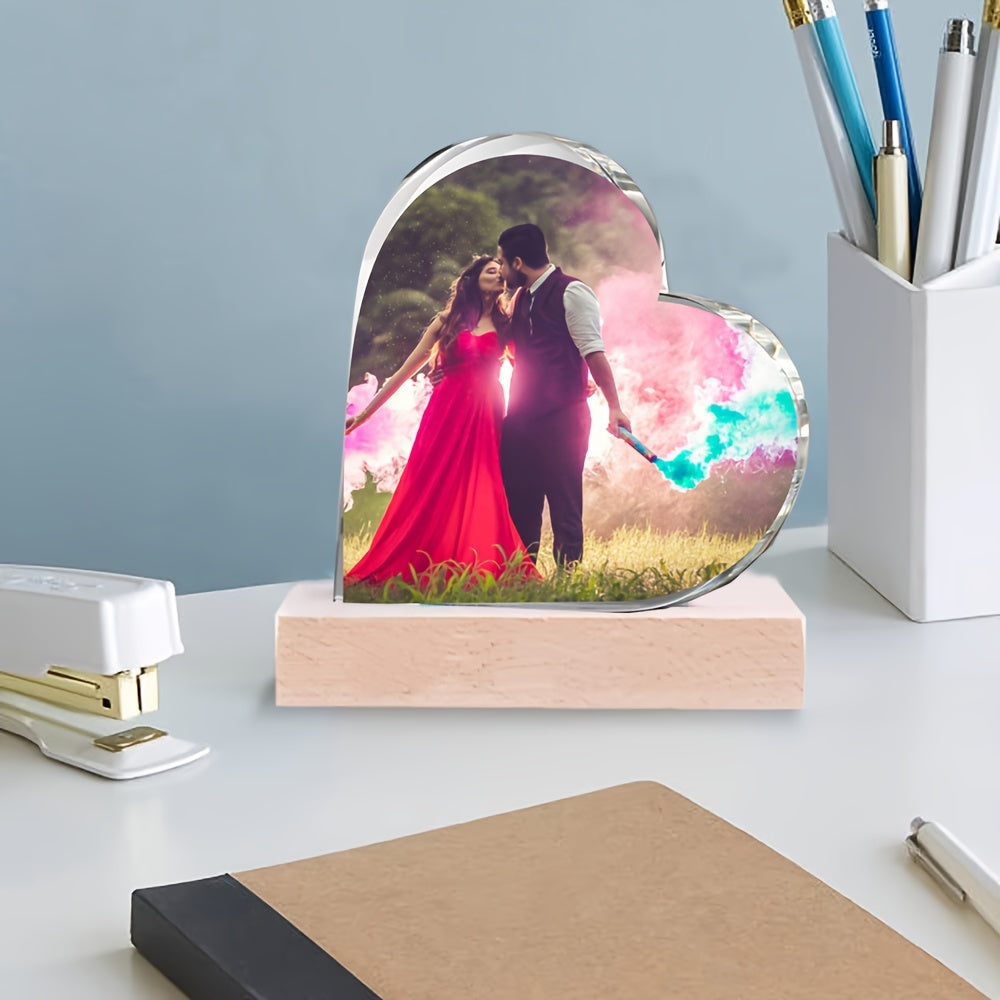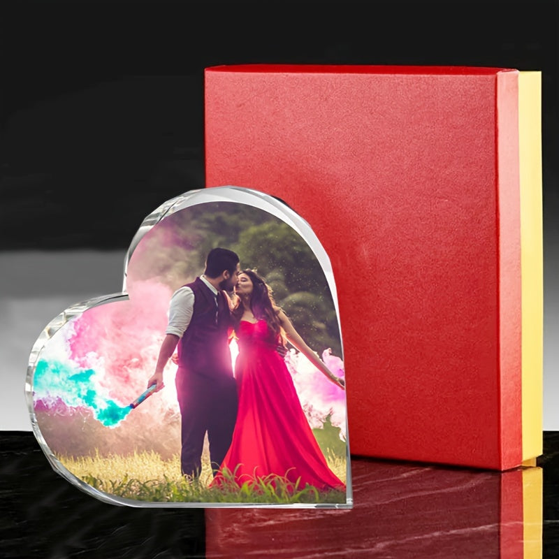 Индивидуальная фоторамка с кристальным сердцем и гравировкой для свадеб и дней рождения