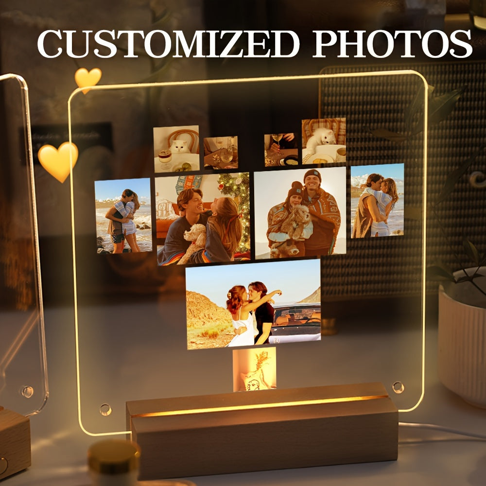 Индивидуальная светодиодная фоторамка в виде сердца из акрила для дней рождения, Дня святого Валентина, Рождества