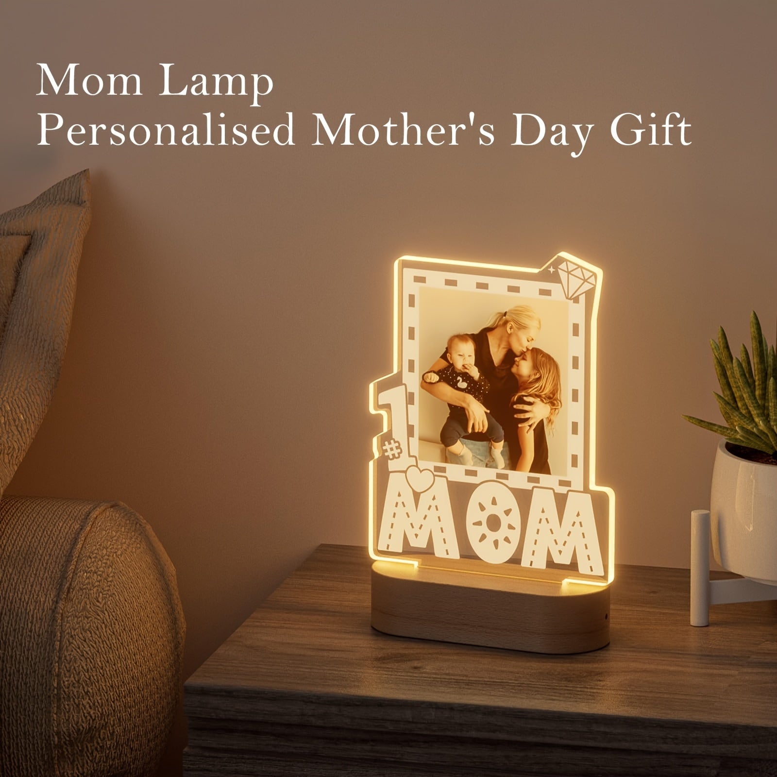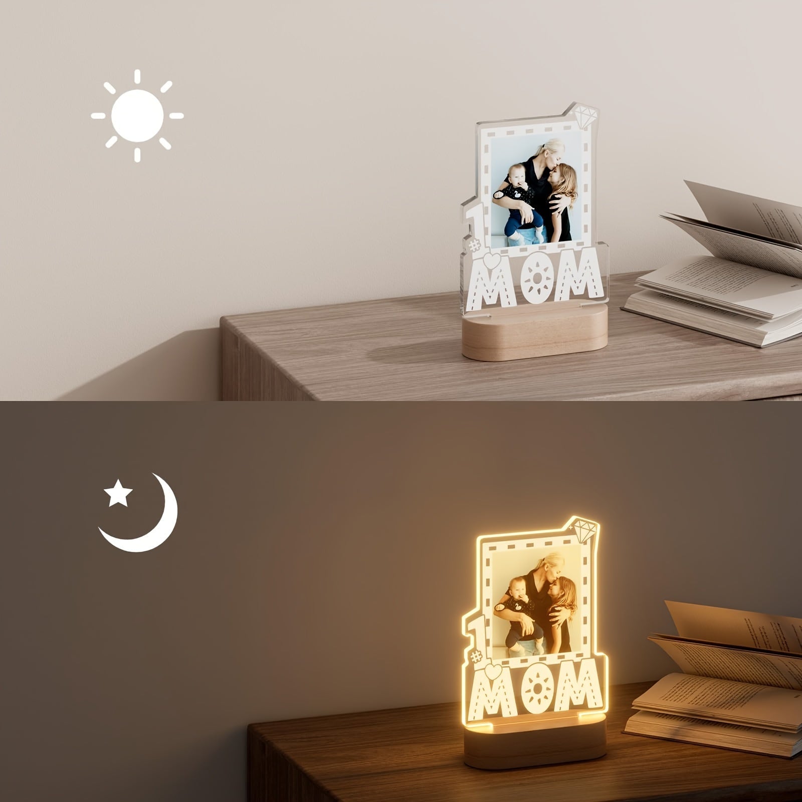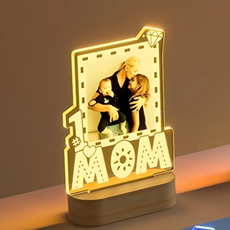 Персонализированная фоторамка с источником света для мамы - индивидуальный подарок "Лучшая мама" на День матери и день рождения от дочери, акриловая памятная вещь для мамы