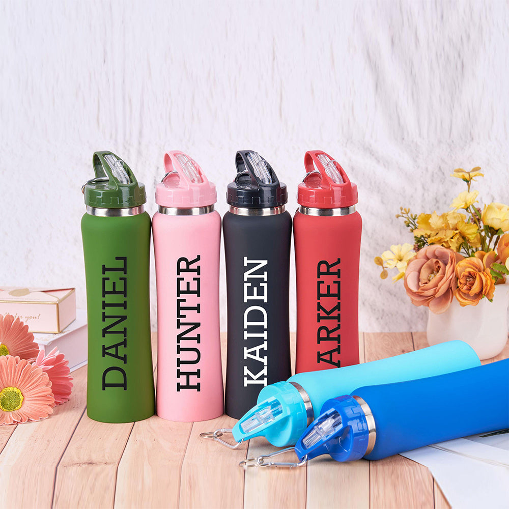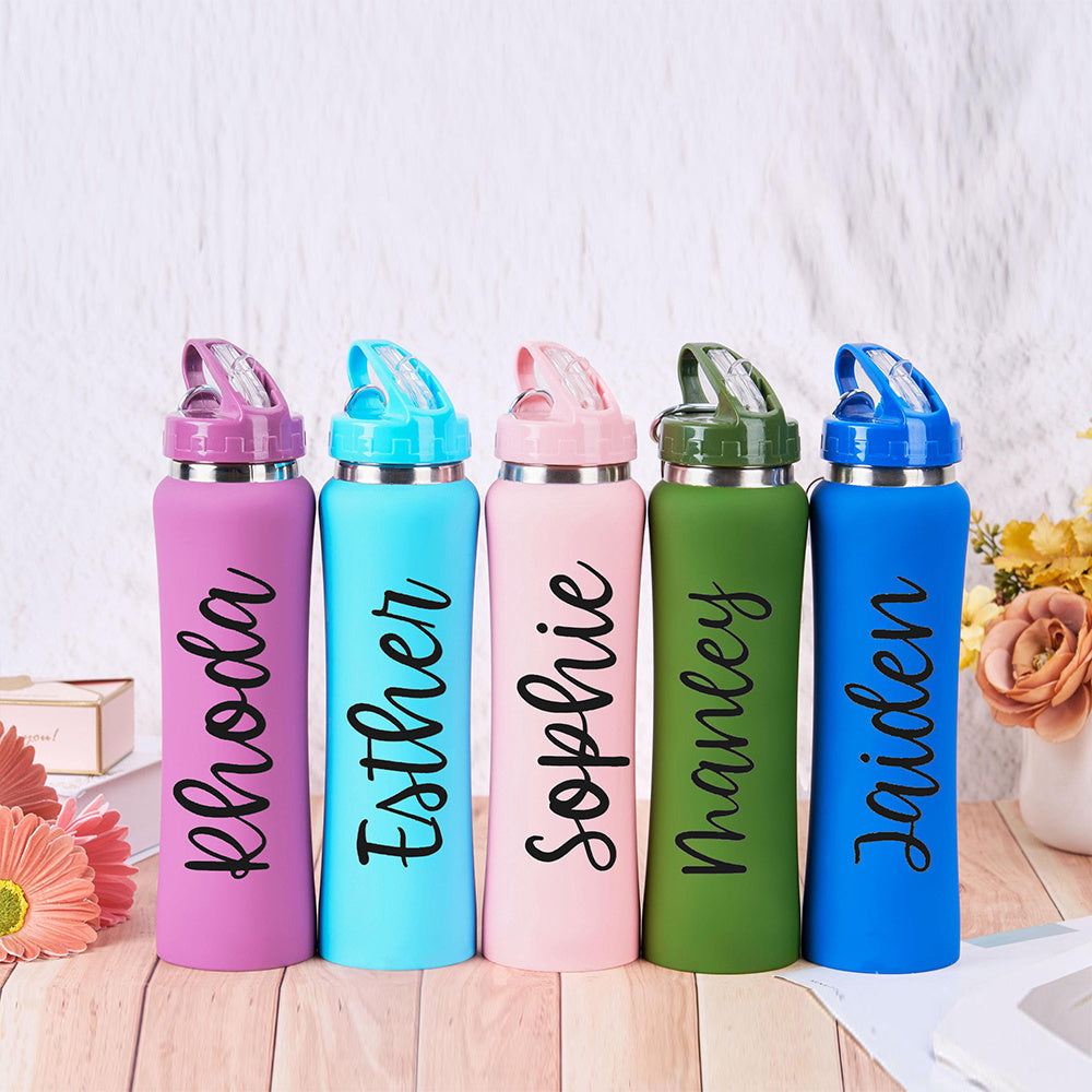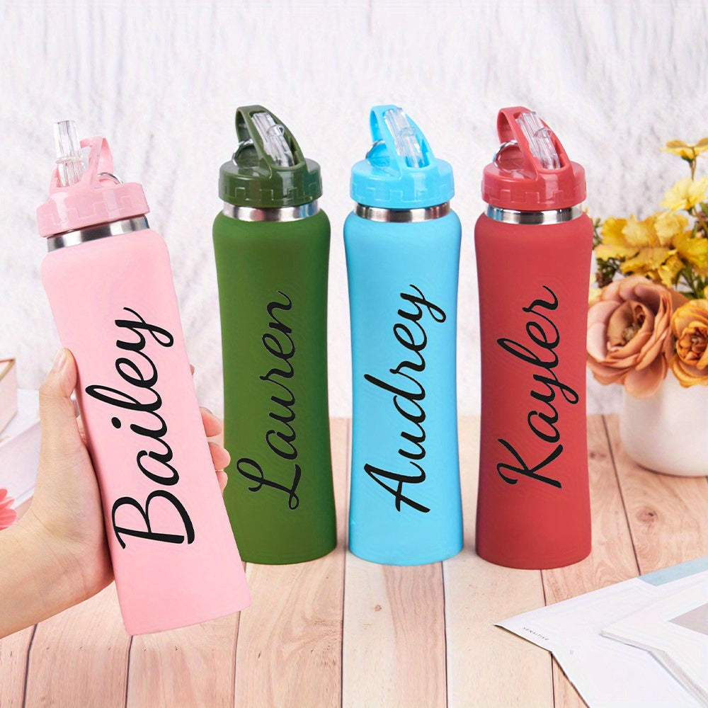 Персонализированная бутылка из нержавеющей стали с трубочкой для спорта и подарков