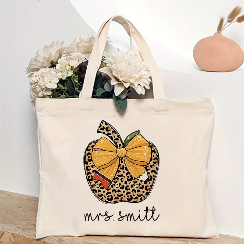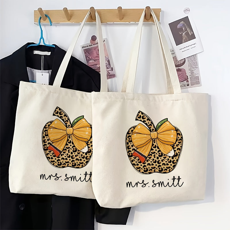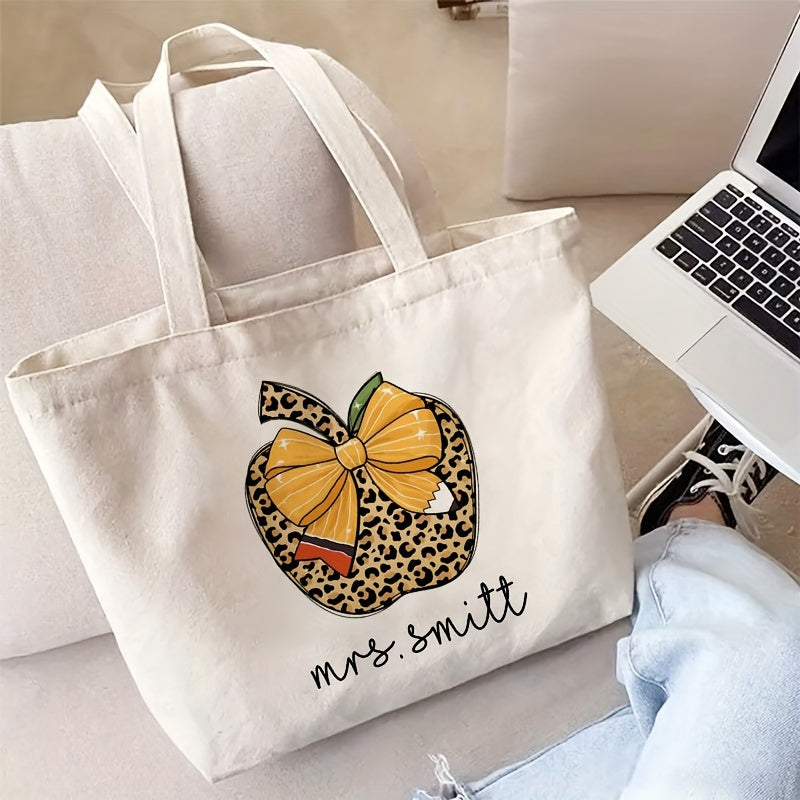 Персонализированная сумка-тоут с узором в виде банта для учителей, холщевая сумка через плечо, идеально подходящая для путешествий, работы и покупок. Идеальный подарок для Дня учителя или к началу учебного года.