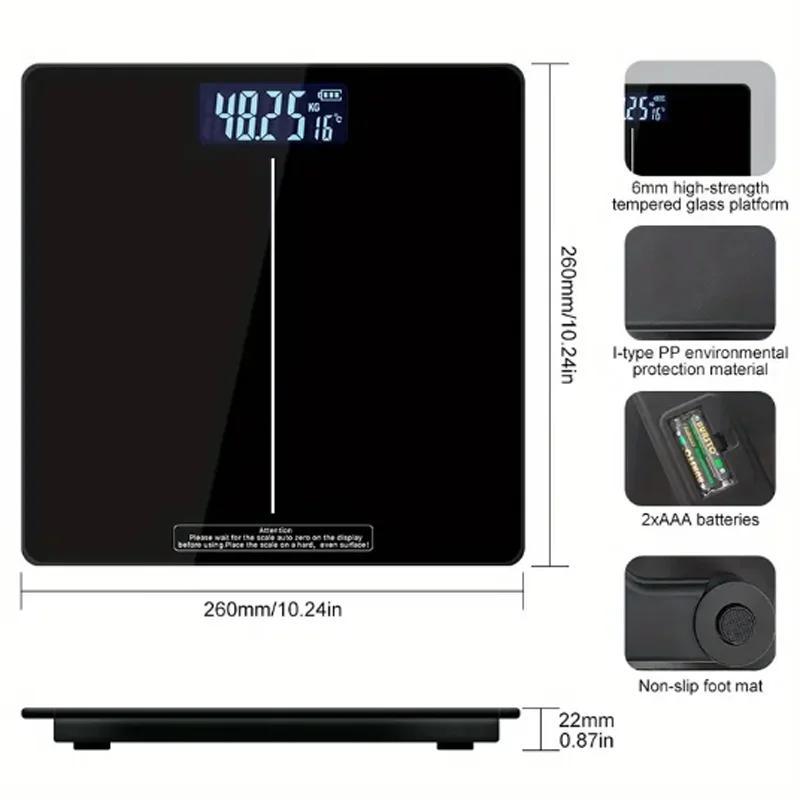 Цифровые напольные весы для ванной комнаты Black с автоматическим включением/выключением, индикатор перегрузки, батарея не входит в комплект