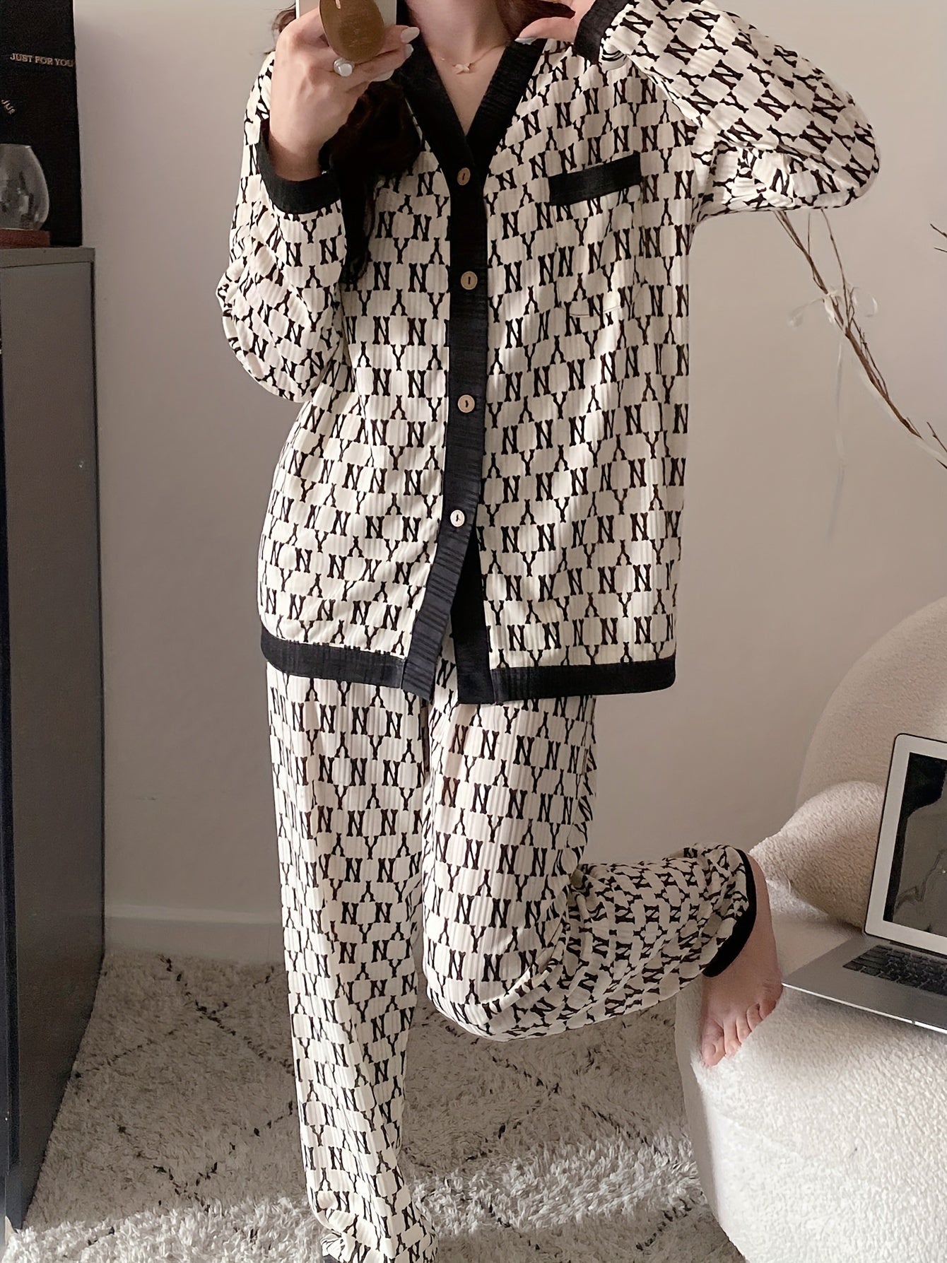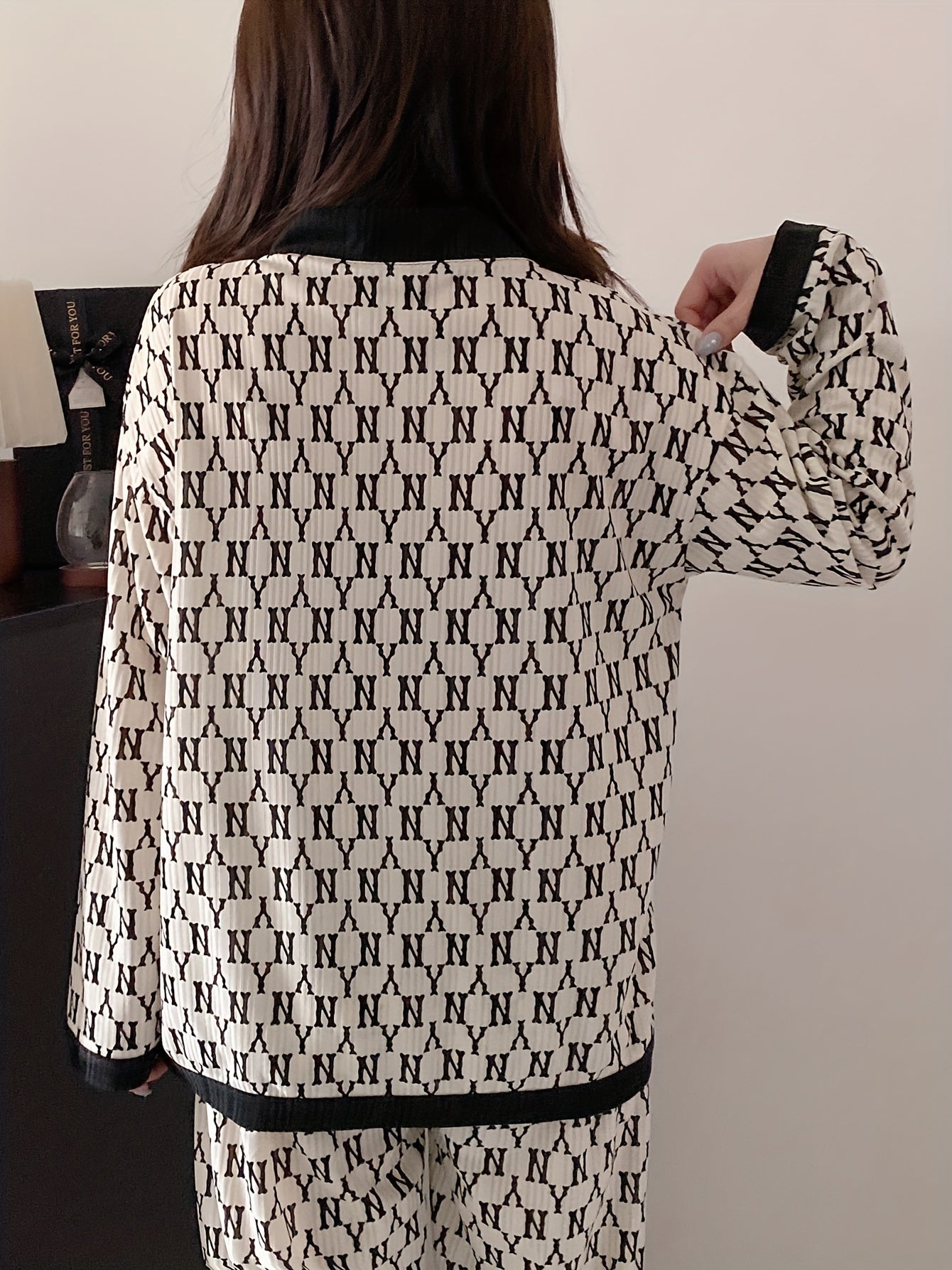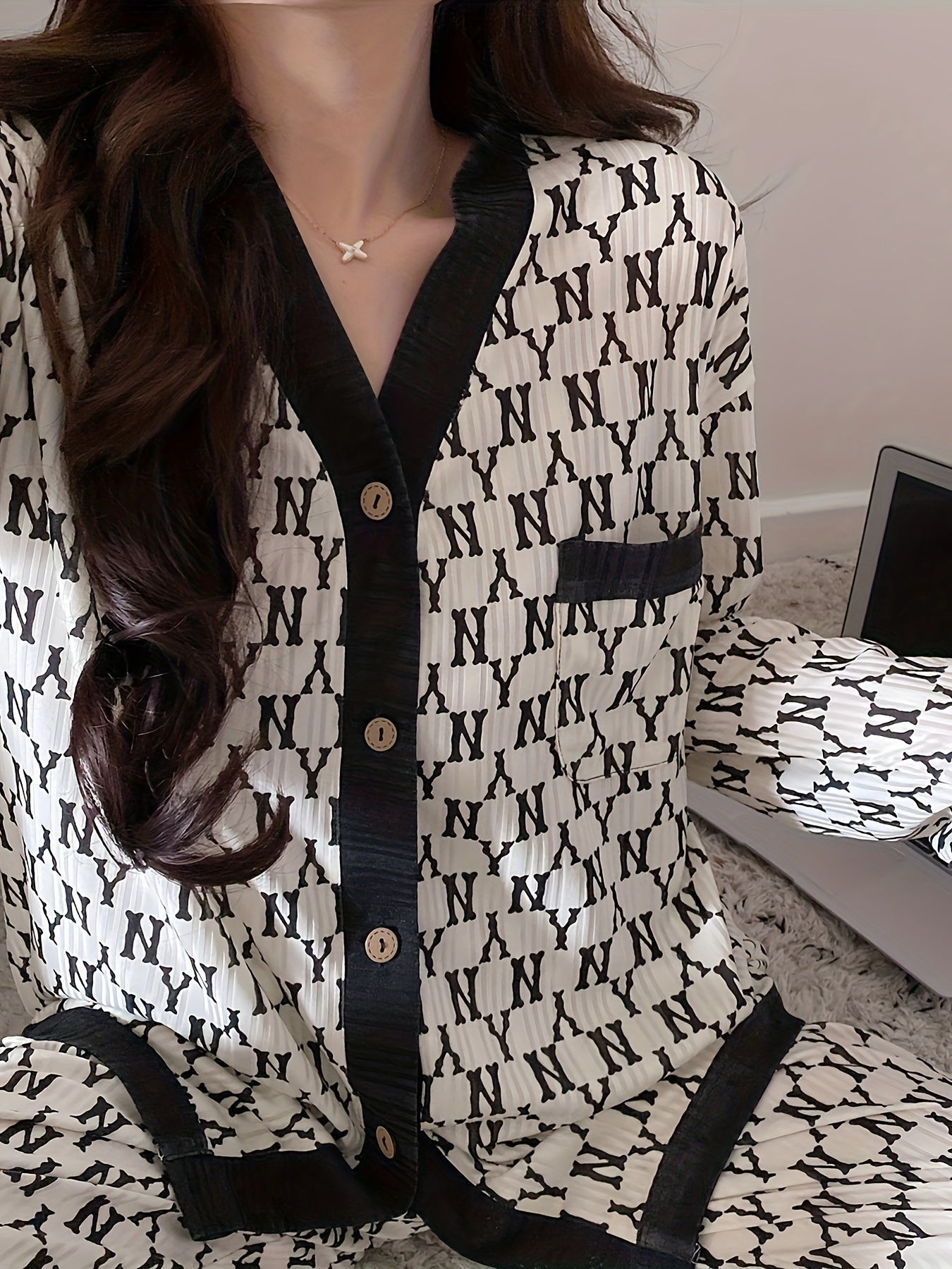 Розовый и синий корейский стиль пижамный комплект для женщин с открытой передней частью, весна, осень, длинный рукав