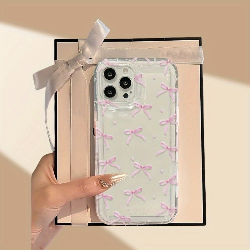 Розовый прозрачный чехол из TPU для iPhone SE до 16 Pro Max с дизайном из маленького бантика
