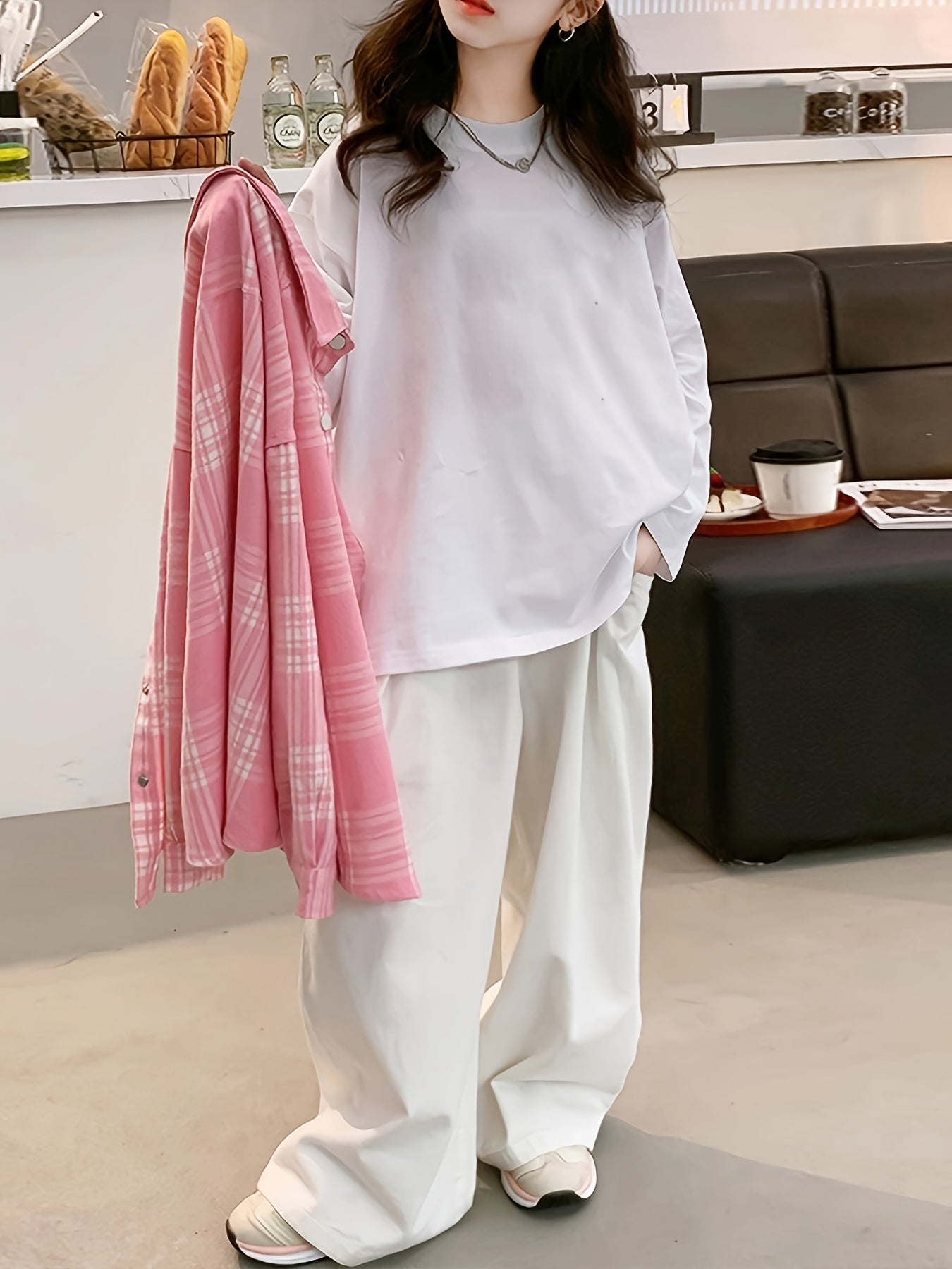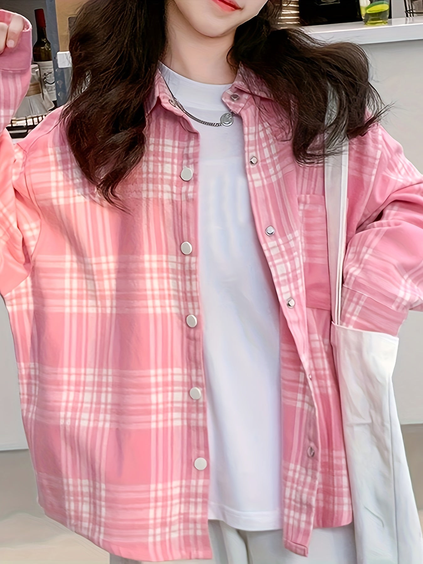 Девочки в клетчатой рубашке с длинным рукавом, дышащий смесь из вискозы, повседневная школьная одежда