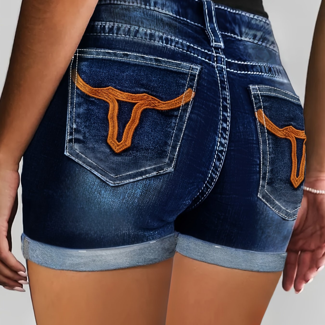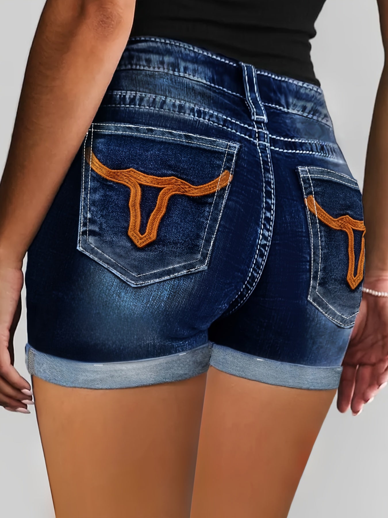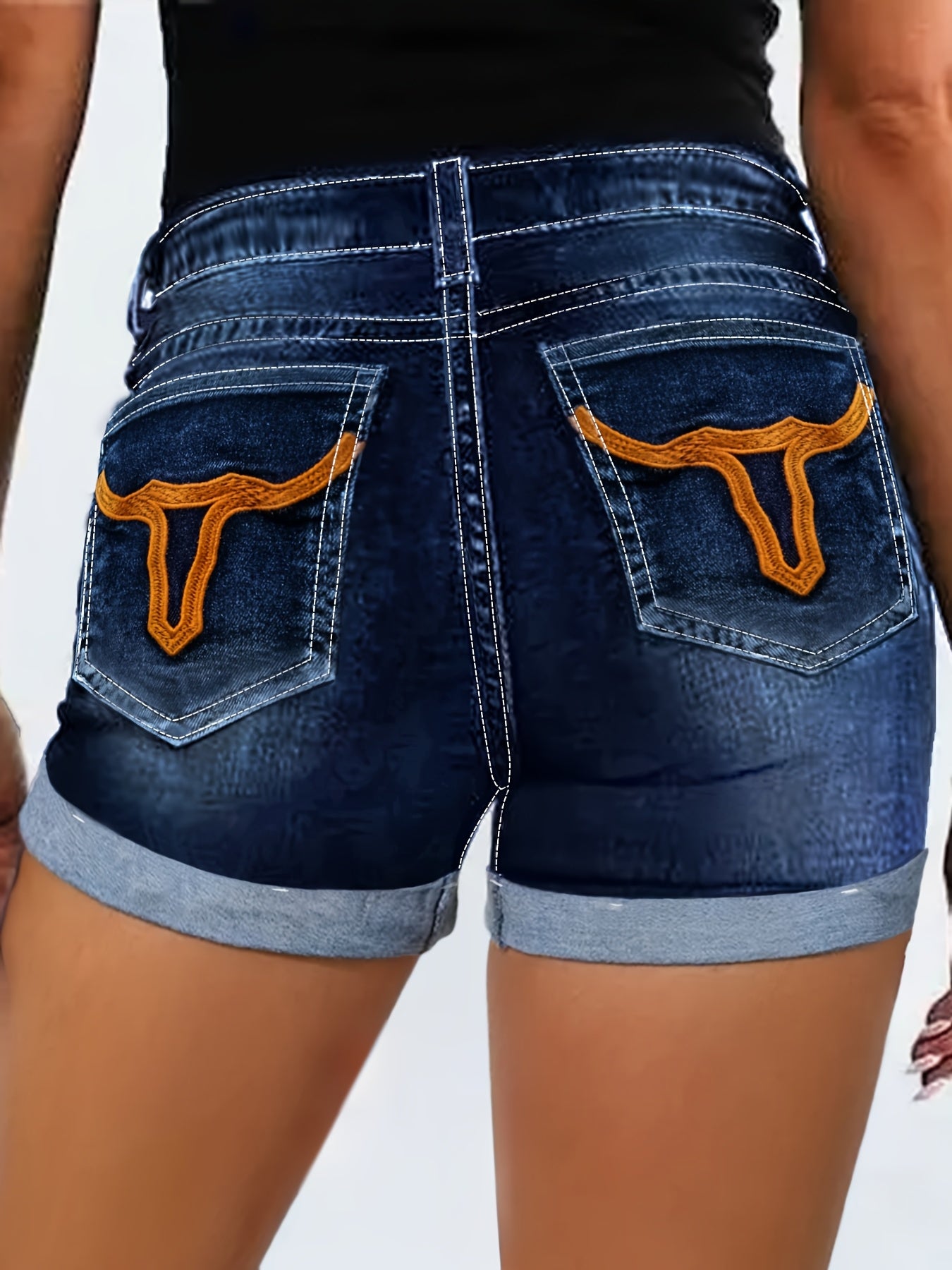 Plus Size Black Geometric Embroidery High Waist Shorts Bermuda Summer Fashion