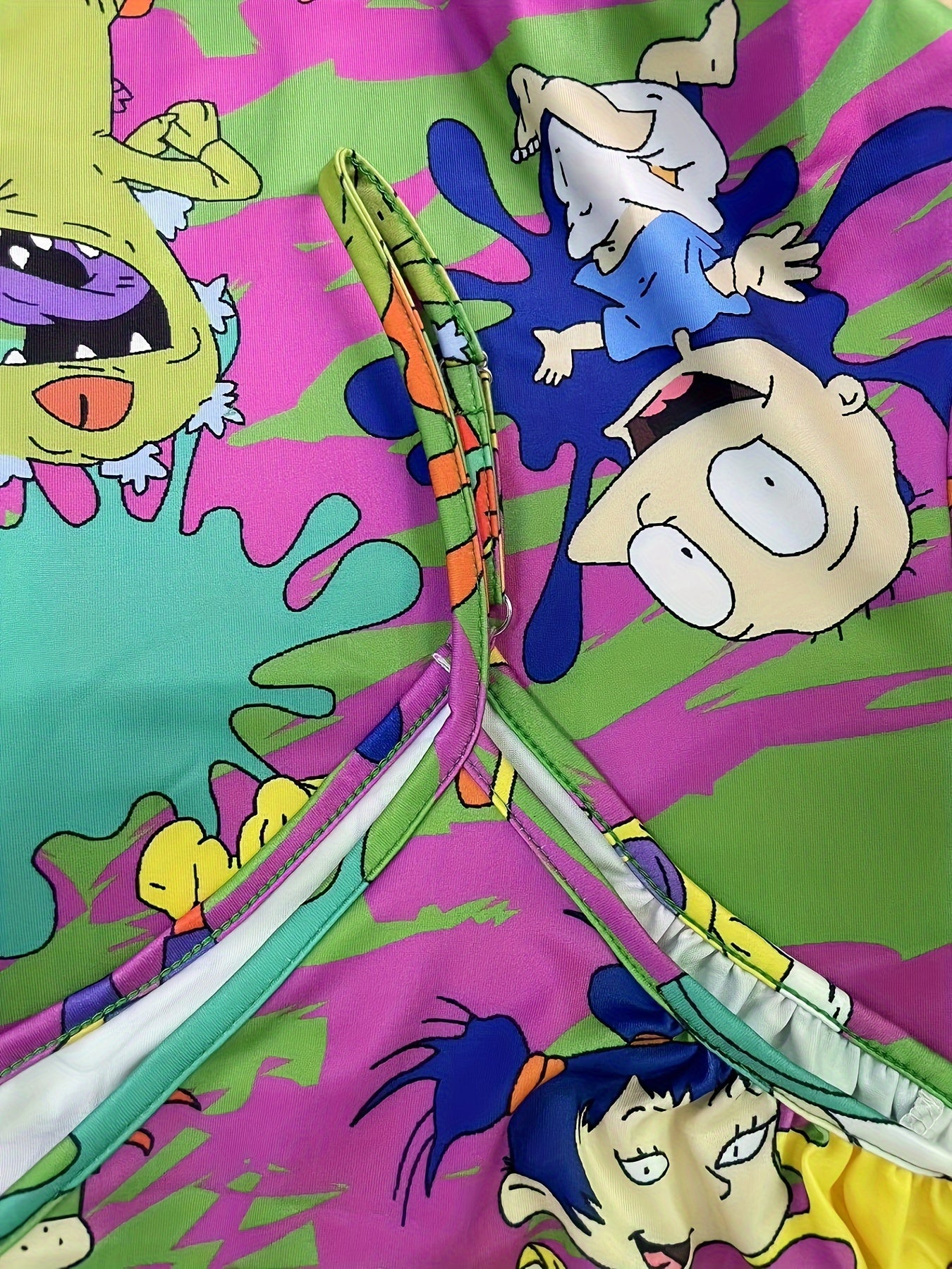 Plus Size Cartoon Print Slip Romper Casual Sleeveless Pockets Women