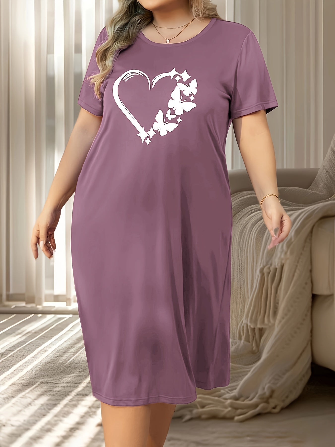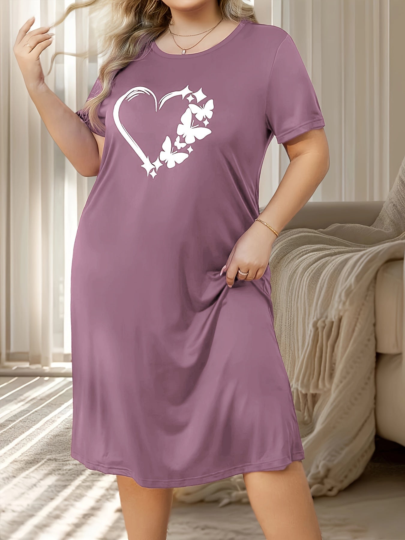 Платье для женщин большого размера в стиле casual с принтом бабочек и сердец, короткие рукава, круглый вырез