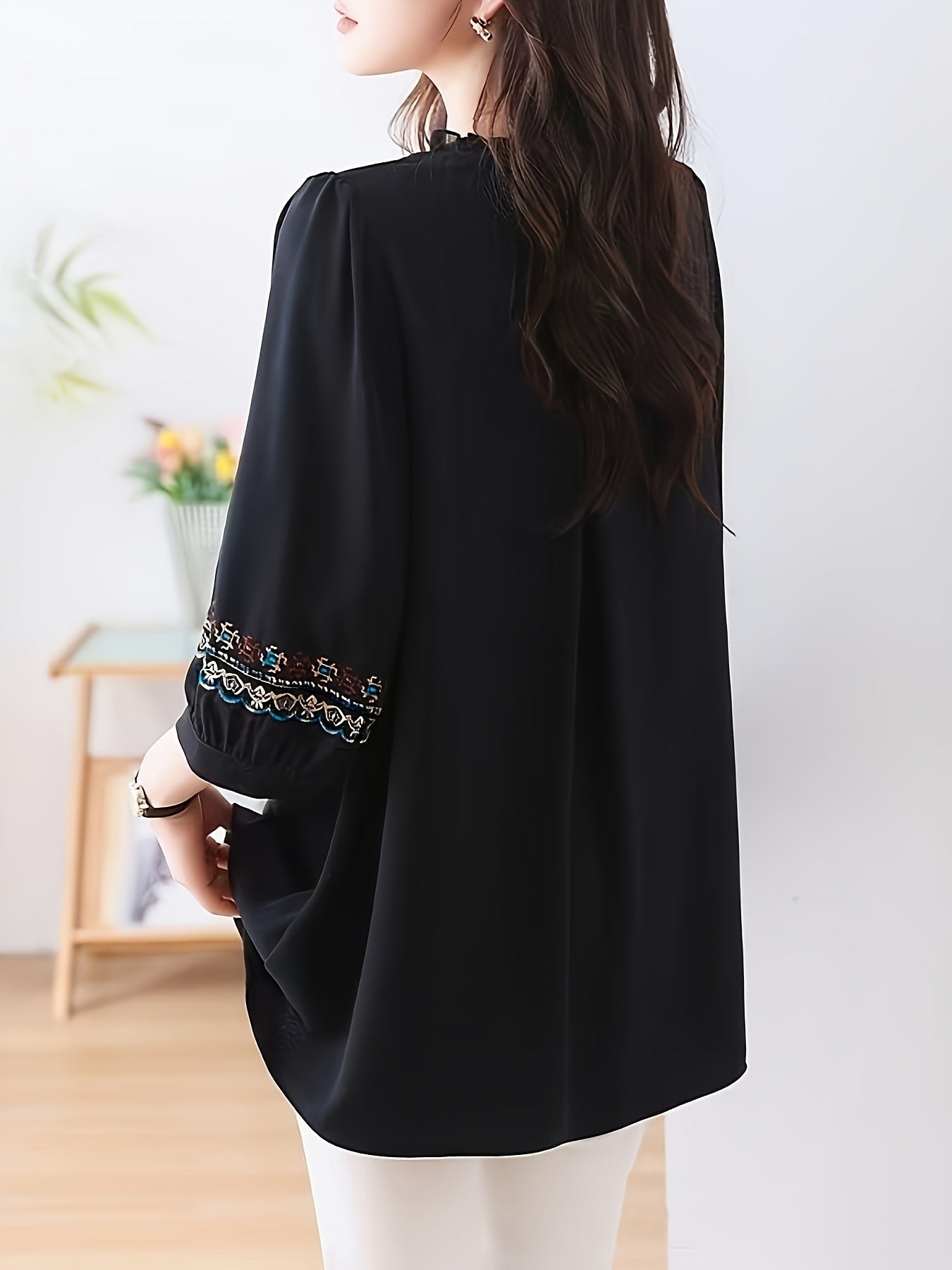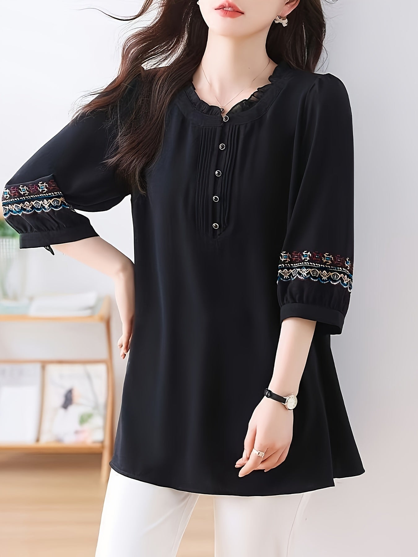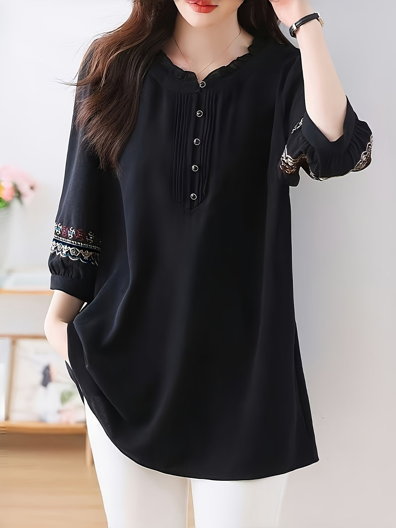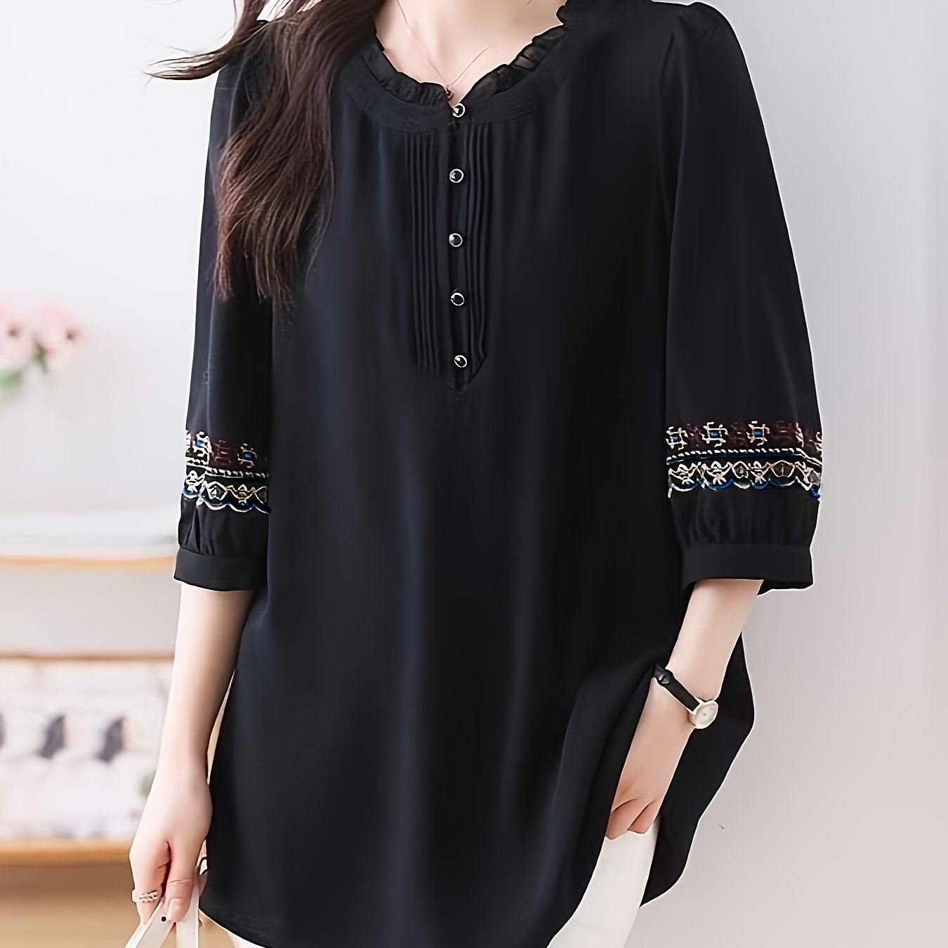 Блузка больших размеров с вышивкой для женщин свободного кроя с круглым вырезом и рукавом 3/4