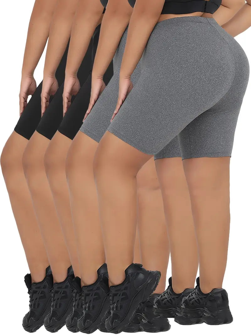 Plus Size Female Biker Shorts Soft Stretchy Polyester Spandex Black Blue Green Brown