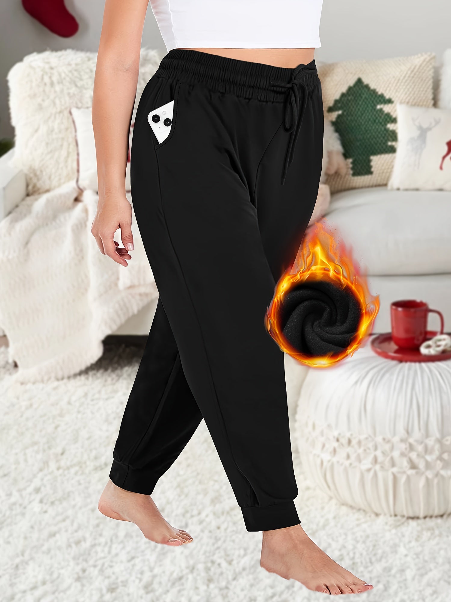 Plus Size Fleece Jogger Pants with Pockets for Women