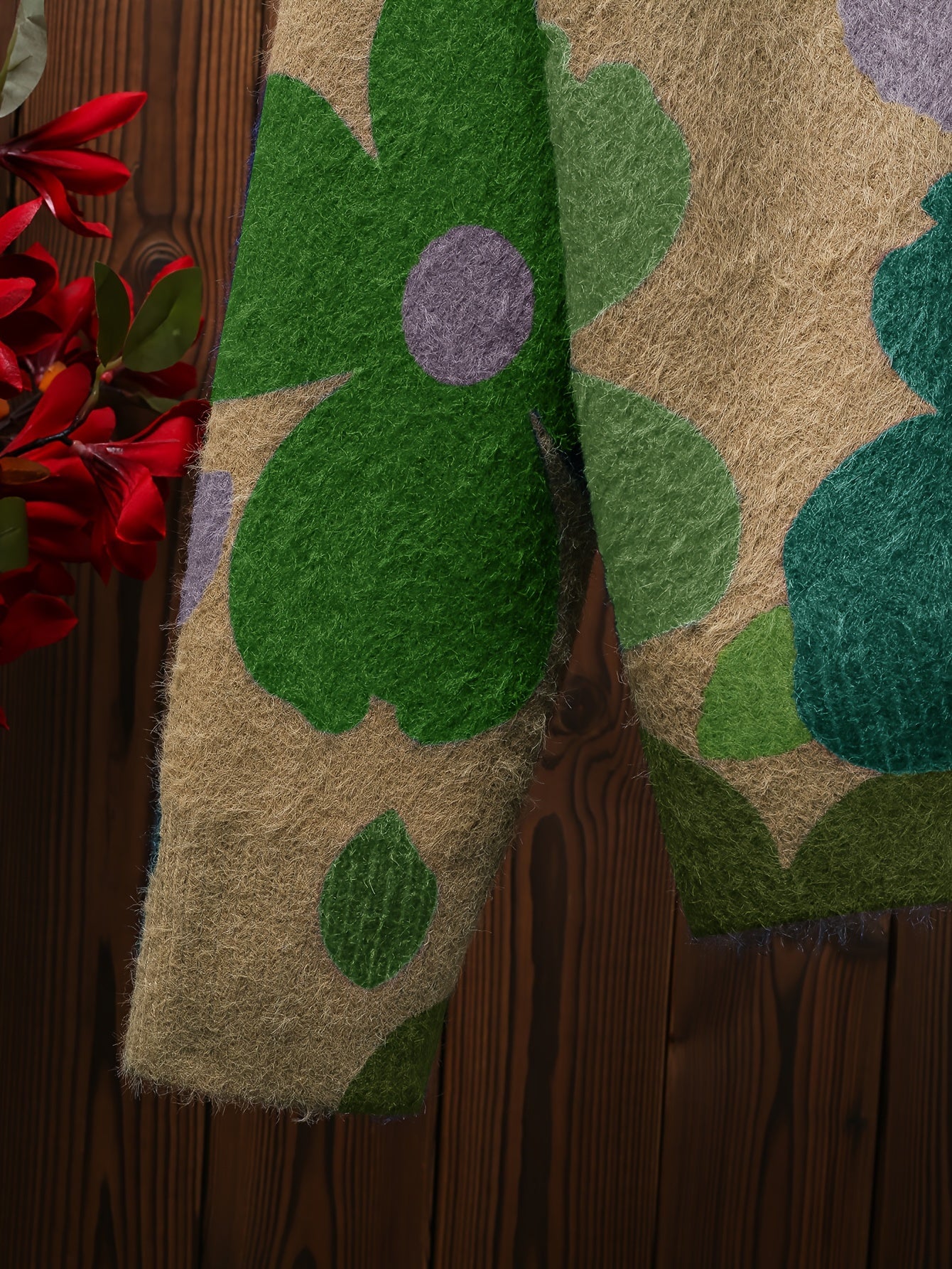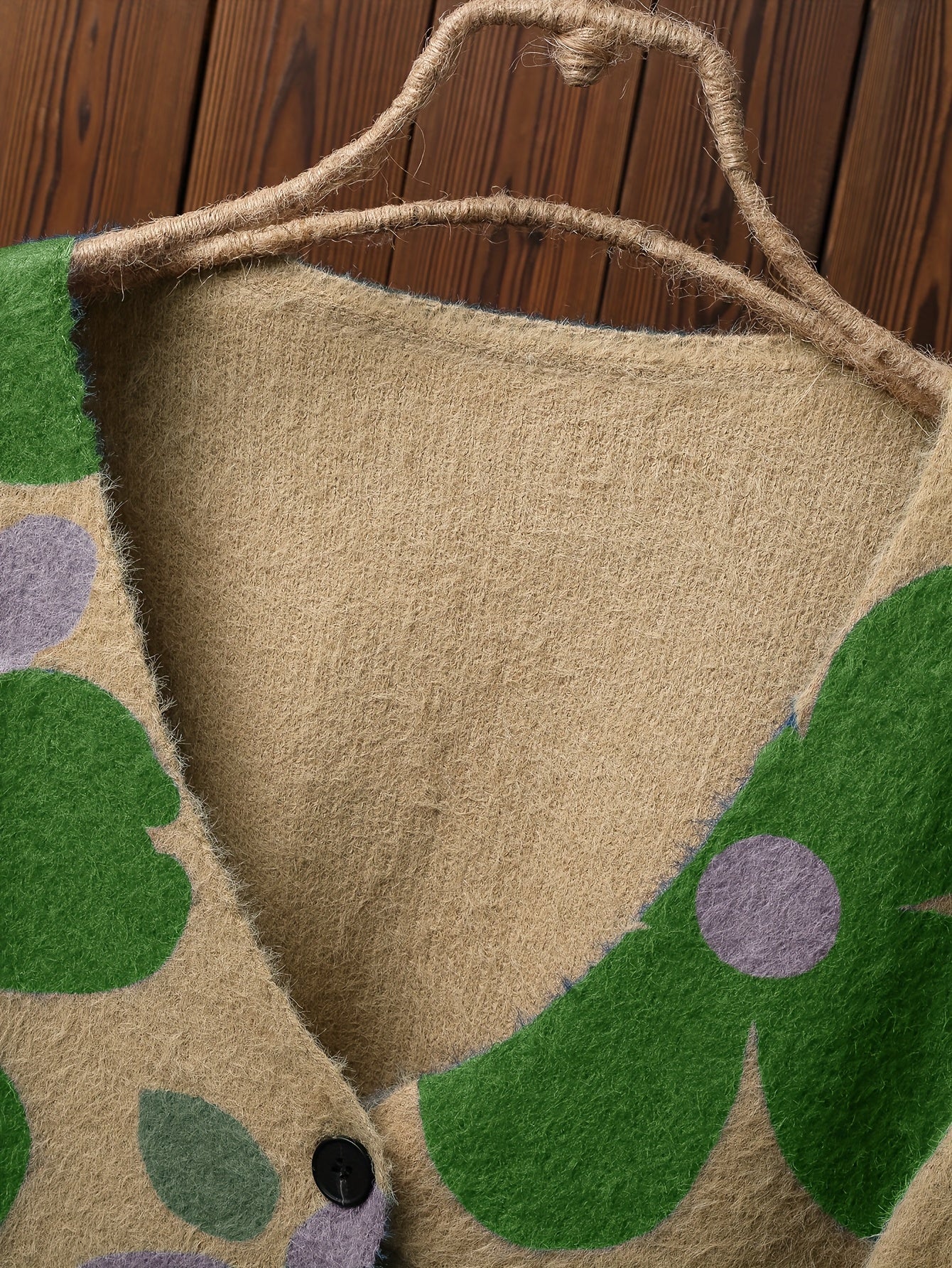 Plus Size Floral Print Button Front Cardigan V Neck Long Sleeve Spring Fall Women's Clothing