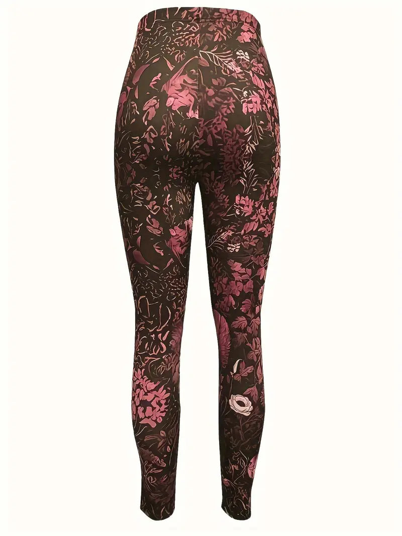 Plus Size Floral Print Skinny Leggings High Waist Casual Stretchy Women