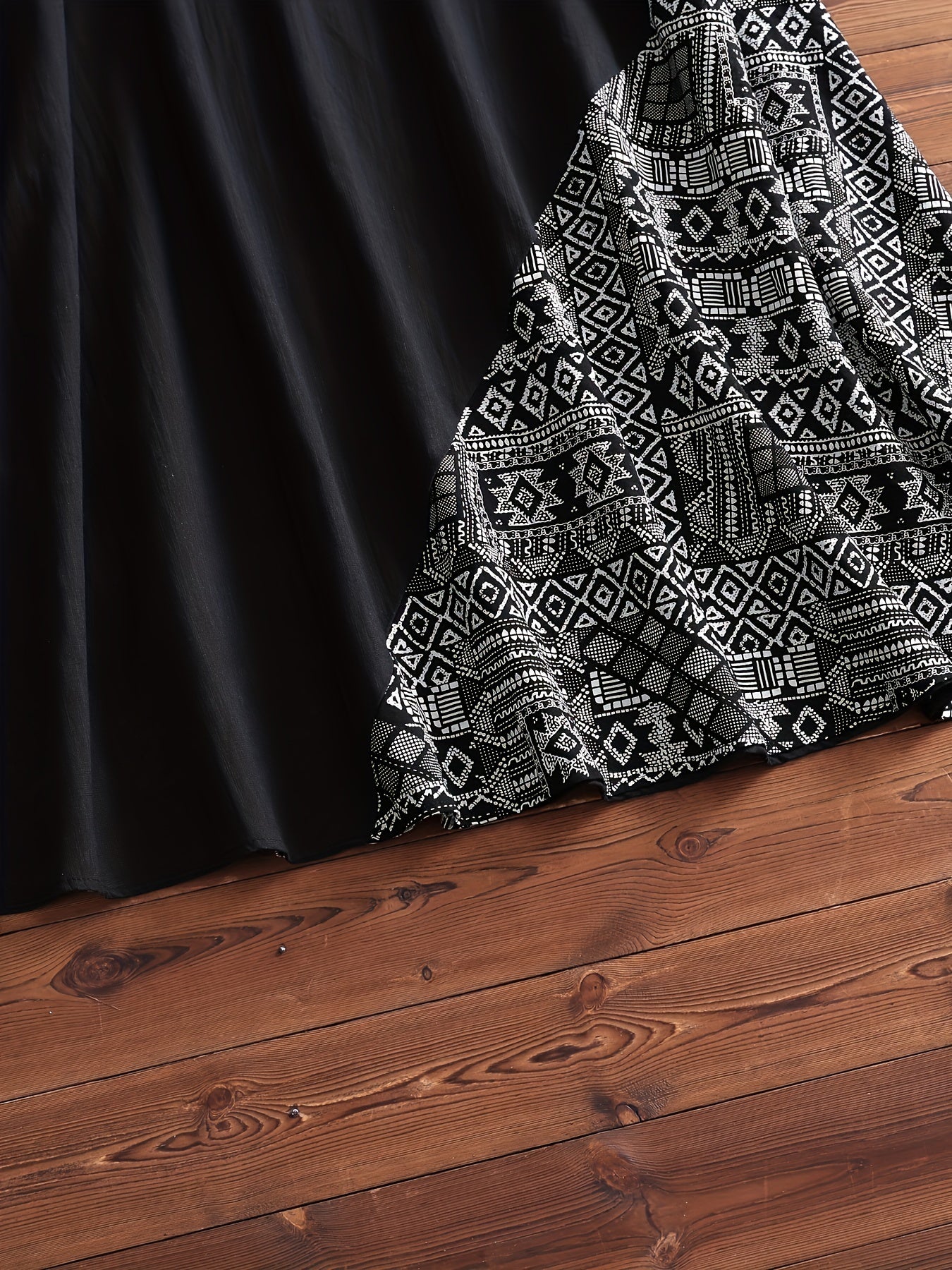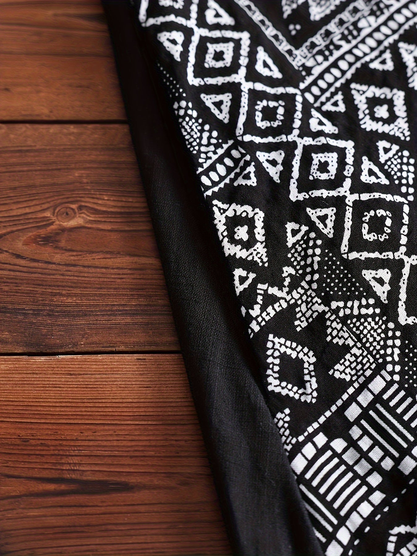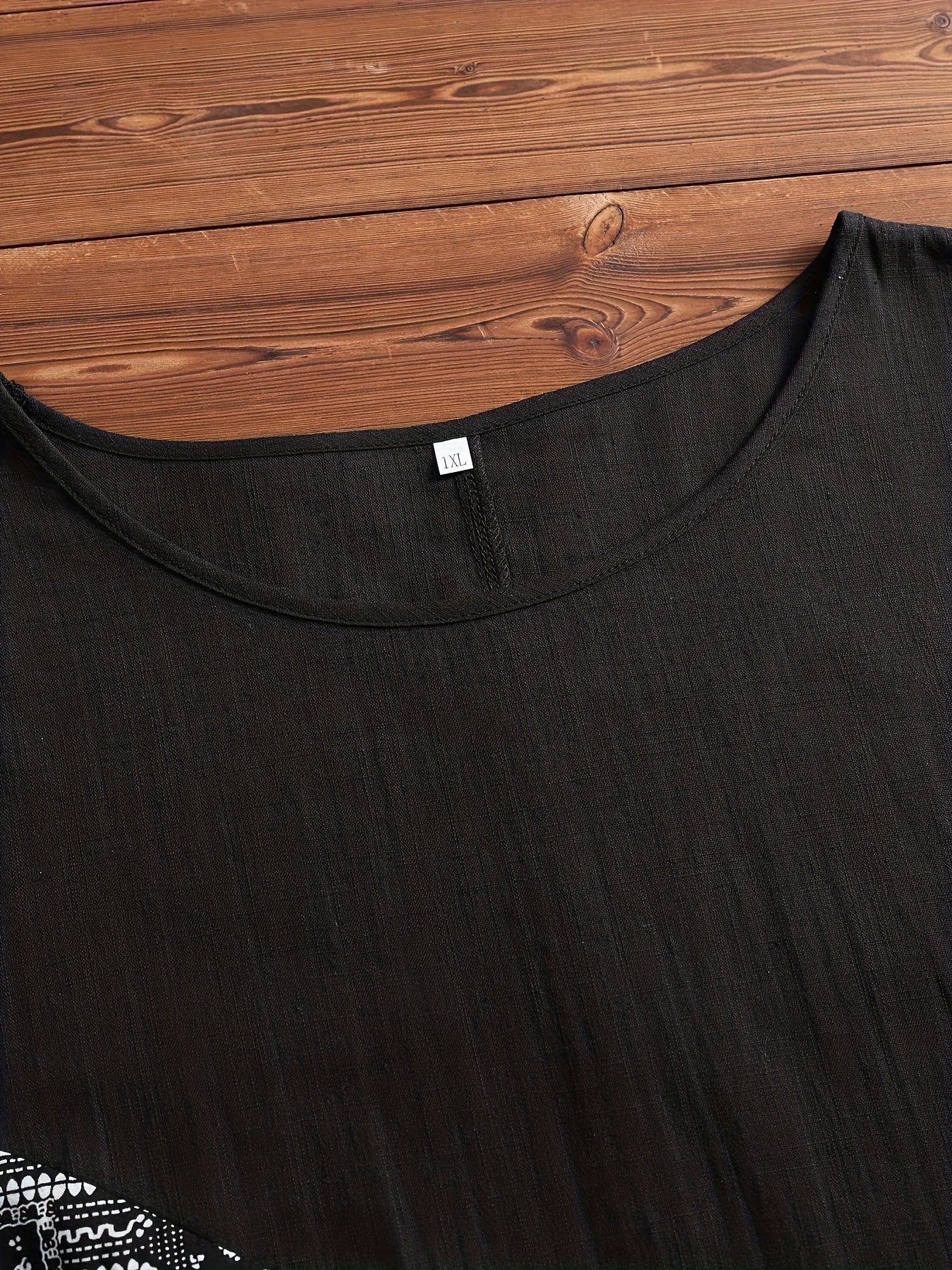 Платье из геометрического принта с заплатками из рами с короткими рукавами и круглым вырезом