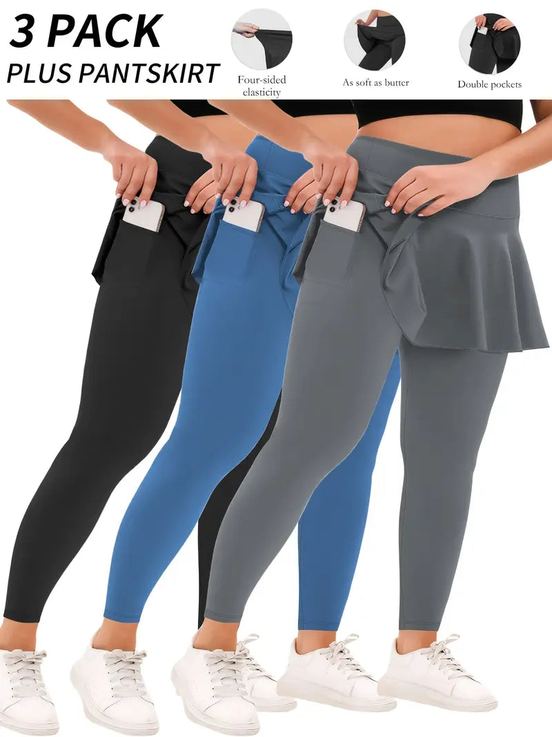 Plus Size High Waist Cropped Leggings with Pockets 3-Pack Elastane Knit