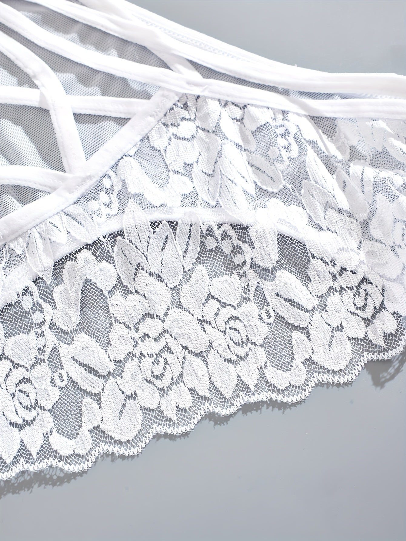 Трусики с высокой талией и кружевной отделкой для полных женщин, полупрозрачный нейлон с эластаном