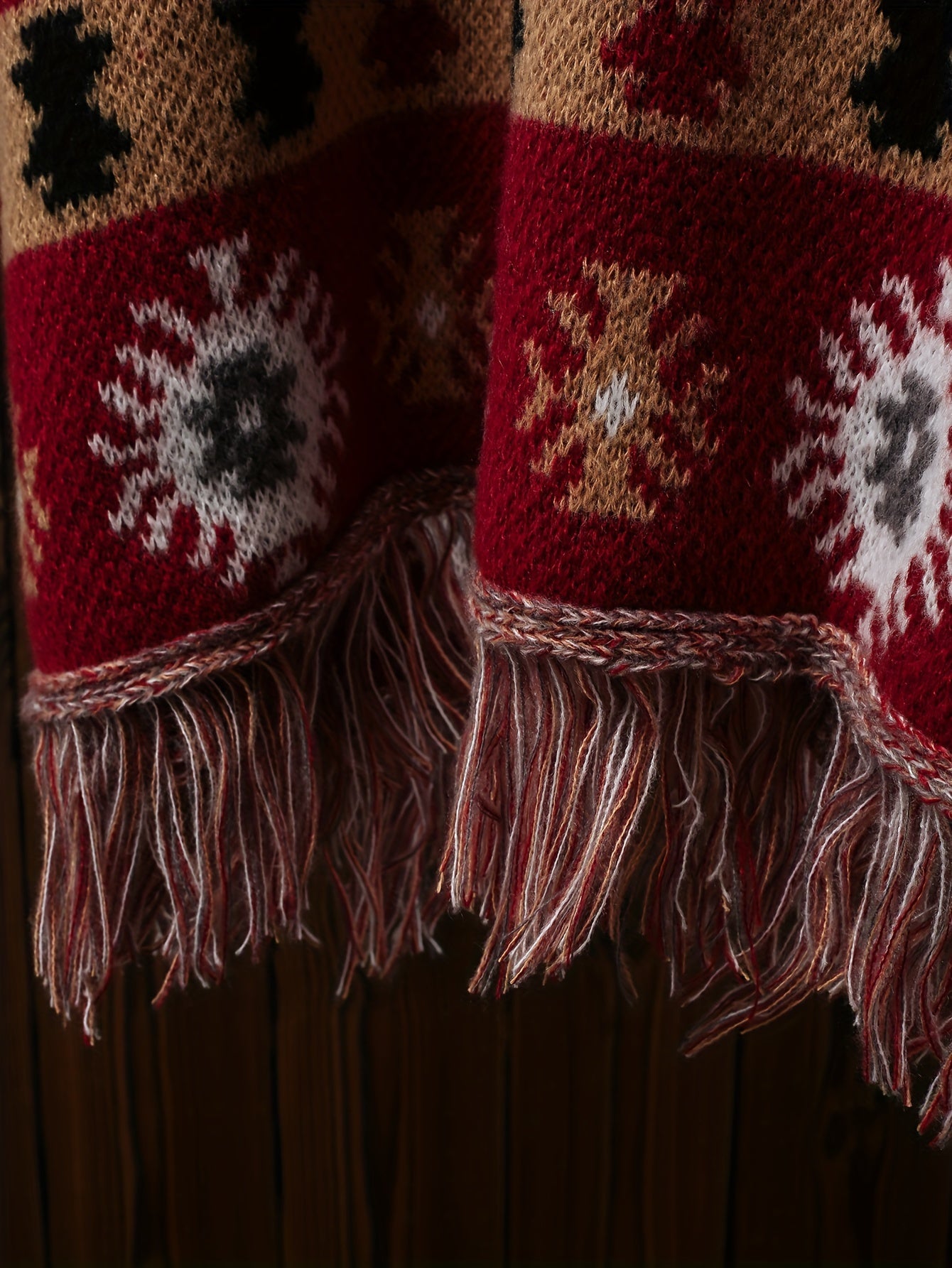 Plus Size Knit Cardigan with Tassels Open Front Long Sleeve Fall Winter Women's Clothing