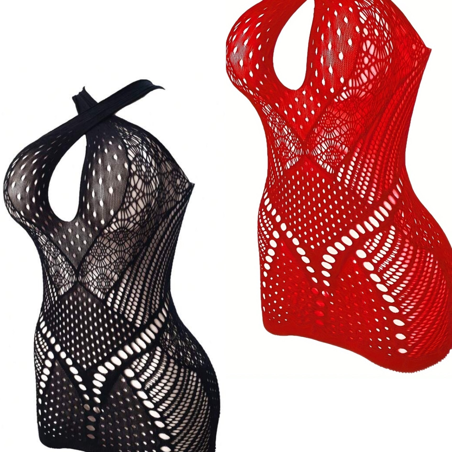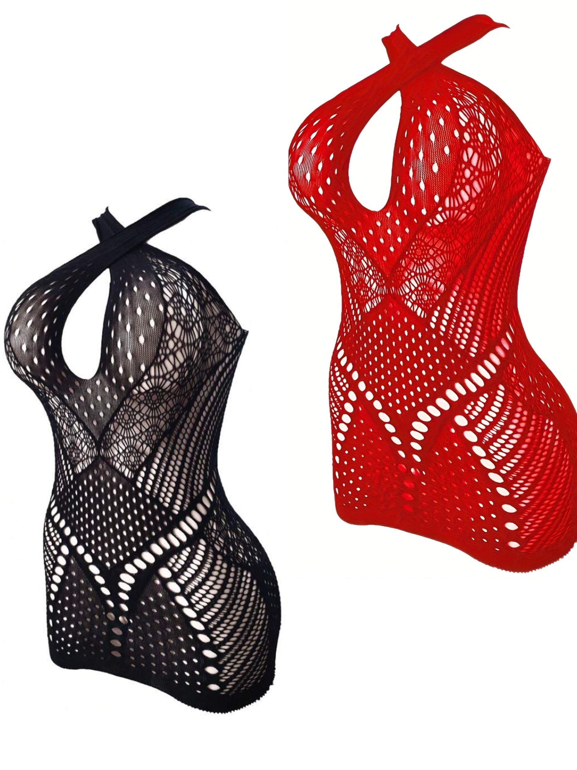 Комплект из 2 кружевных сетчатых боди больших размеров с вырезами, с высоким растяжением, жаккардовая ткань, ночной клубный стиль