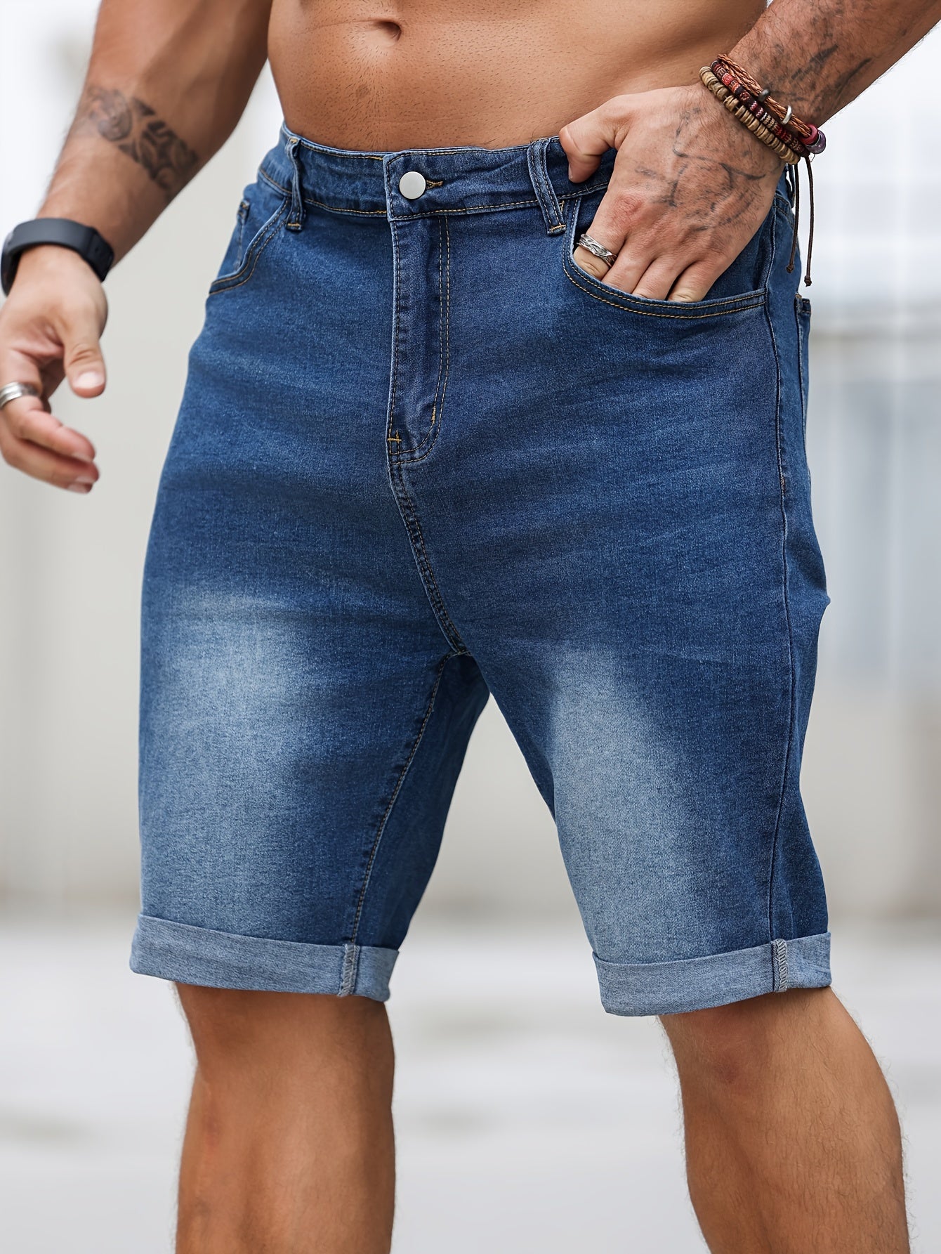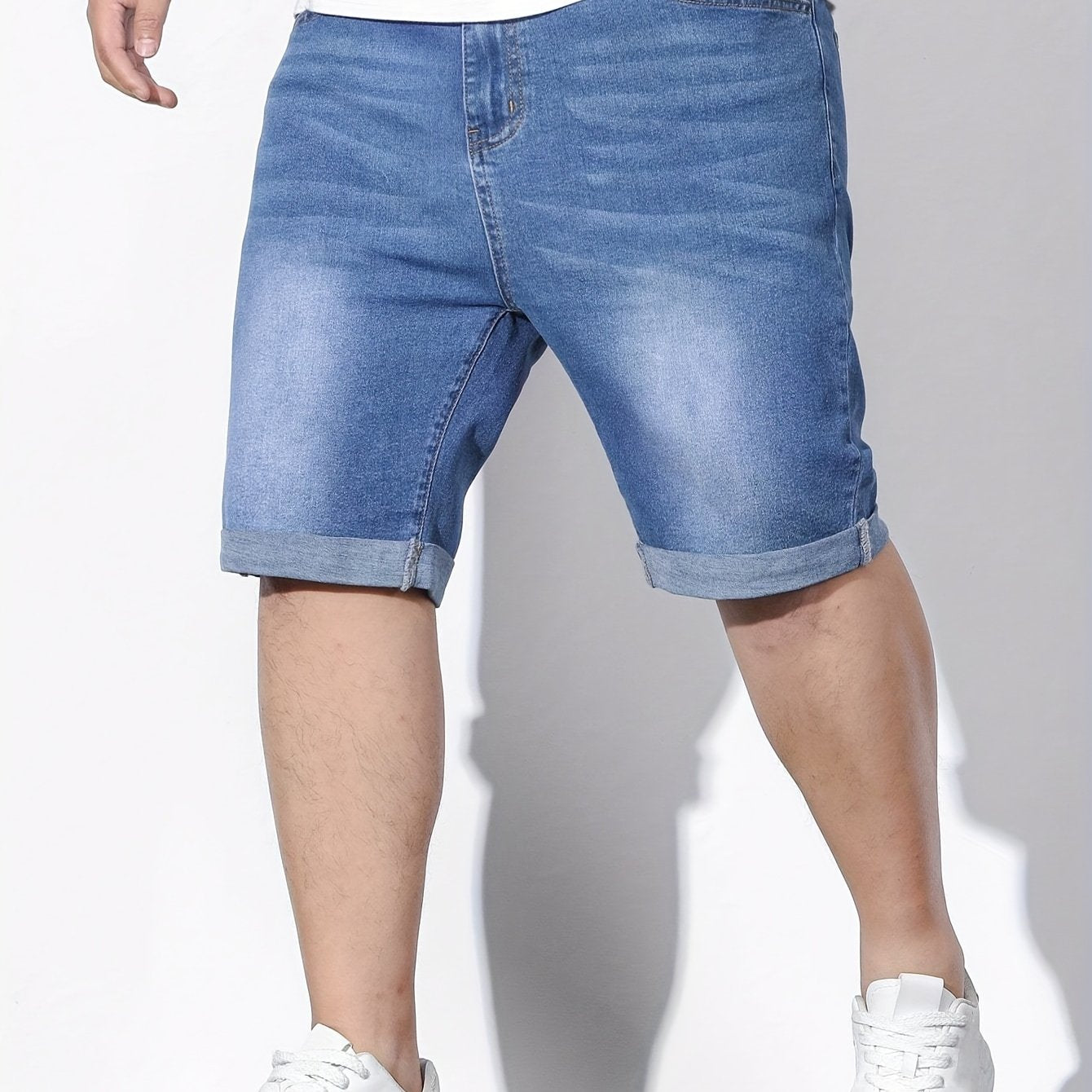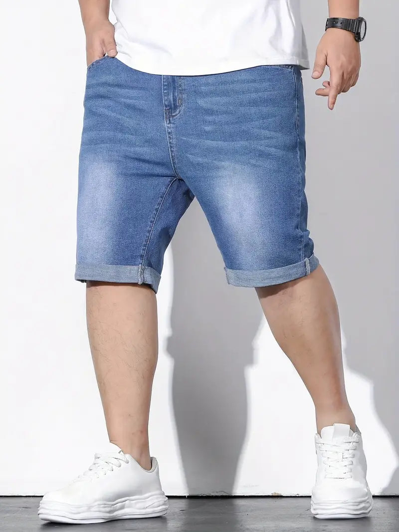 Шорты мужские джинсовые большого размера, повседневные, однотонные, средней эластичности, тканые