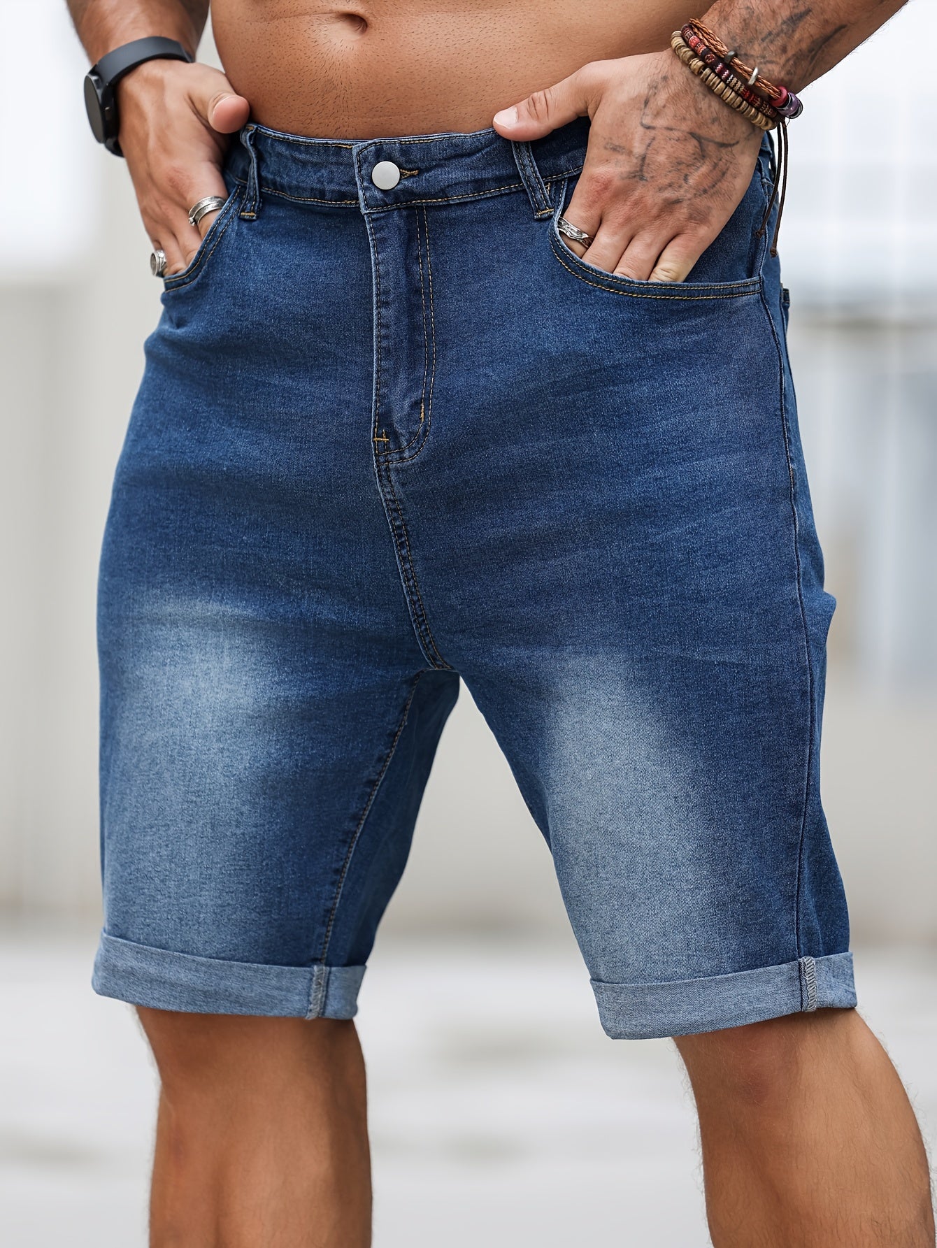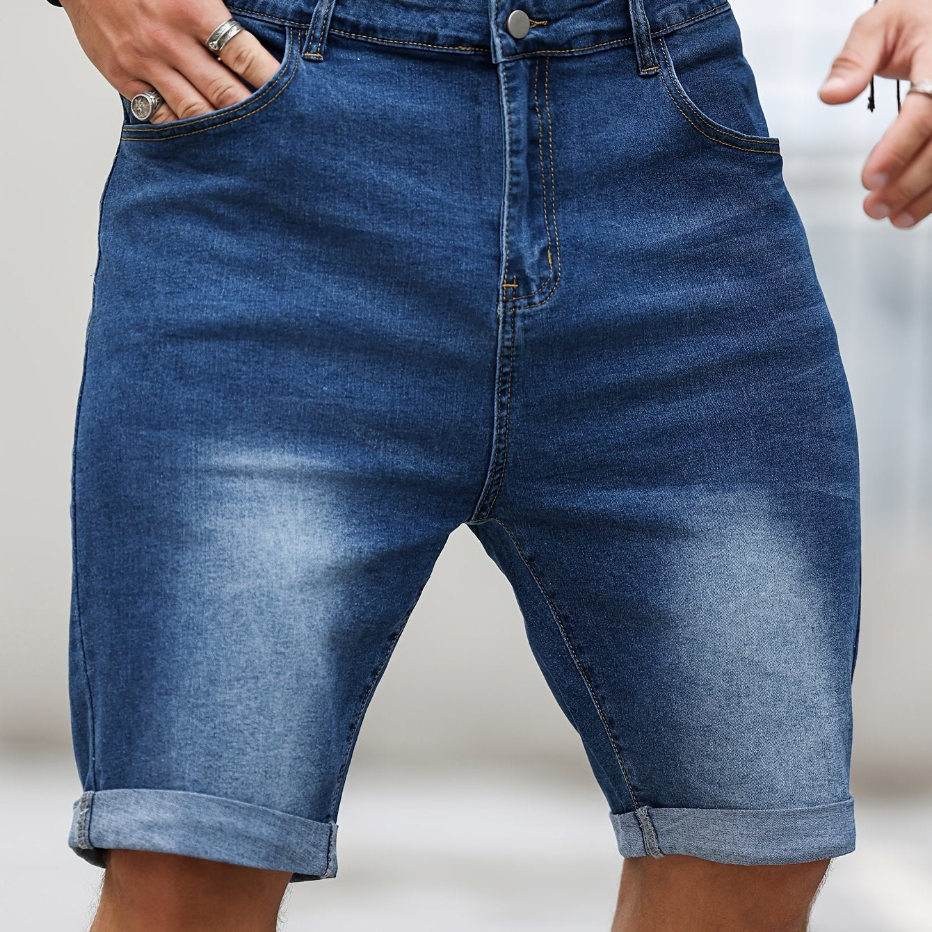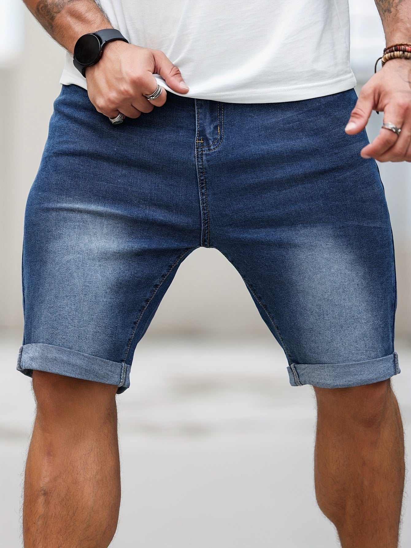 Шорты мужские джинсовые большого размера, повседневные, однотонные, средней эластичности, тканые