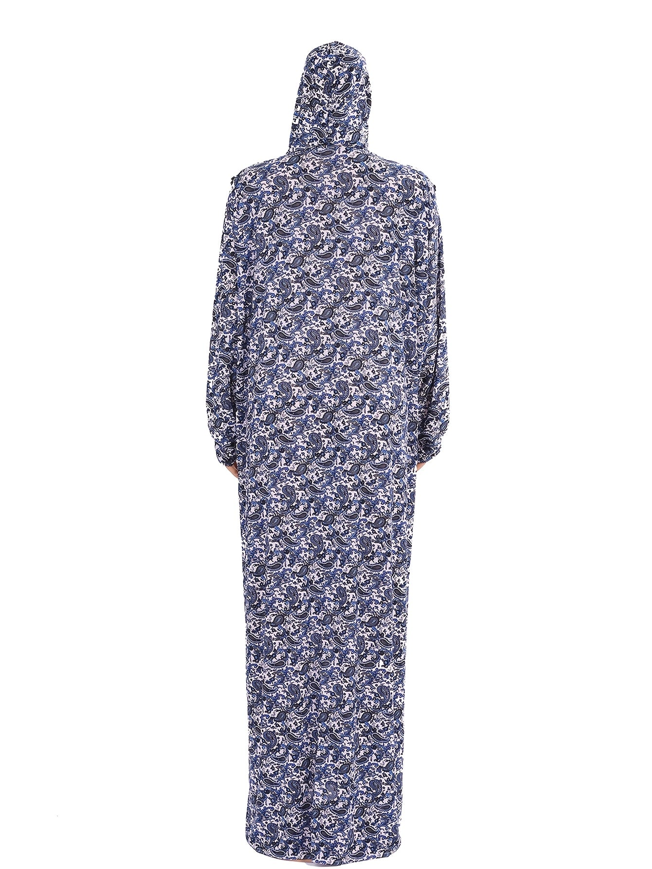 Plus Size Muslim Abaya Long Robe Floral Print Stretchy Fabric Ruffle