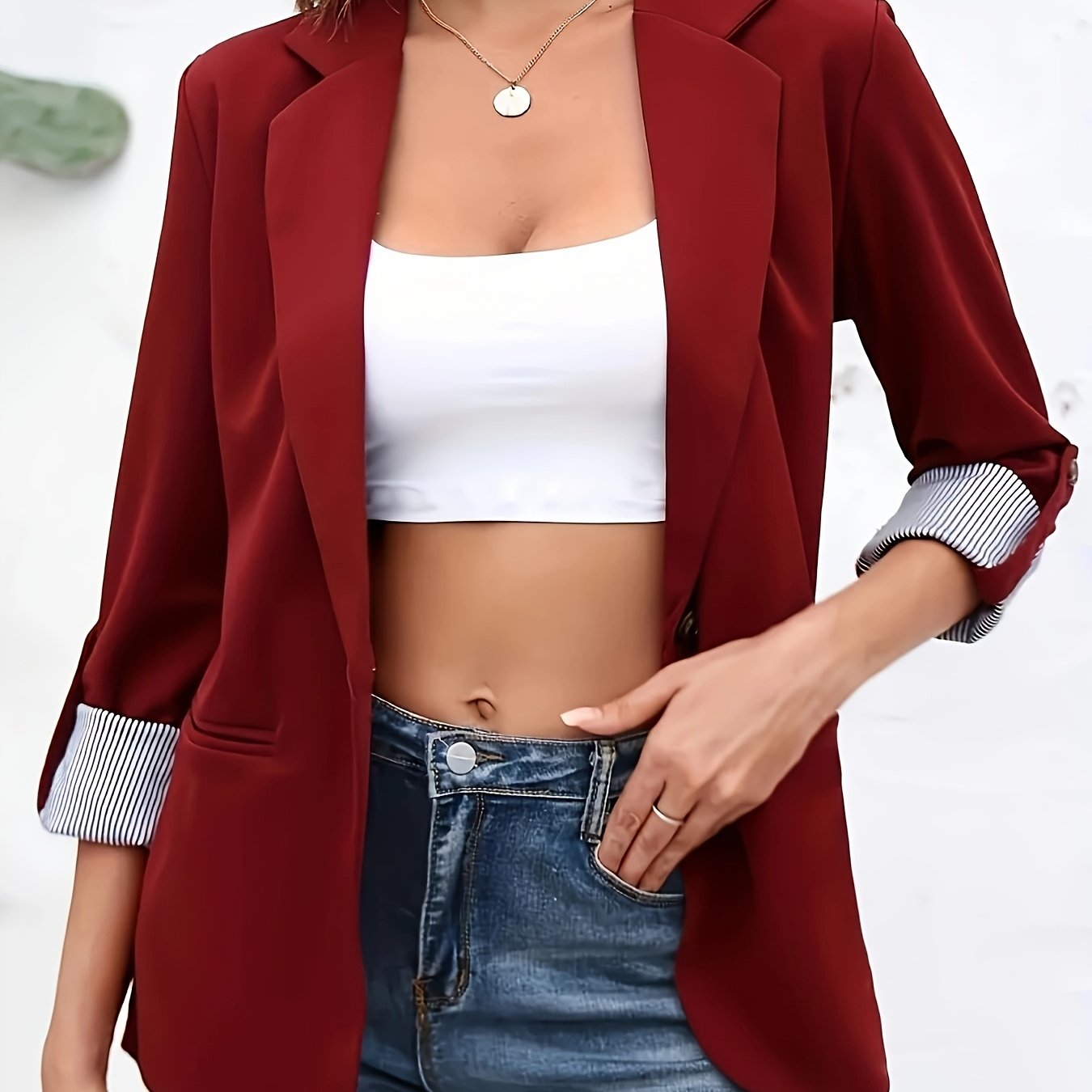 Блейзер с открытой передней частью большого размера с закатывающимися рукавами для офисной одежды