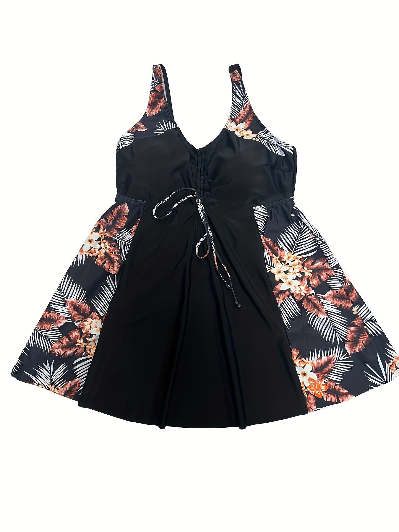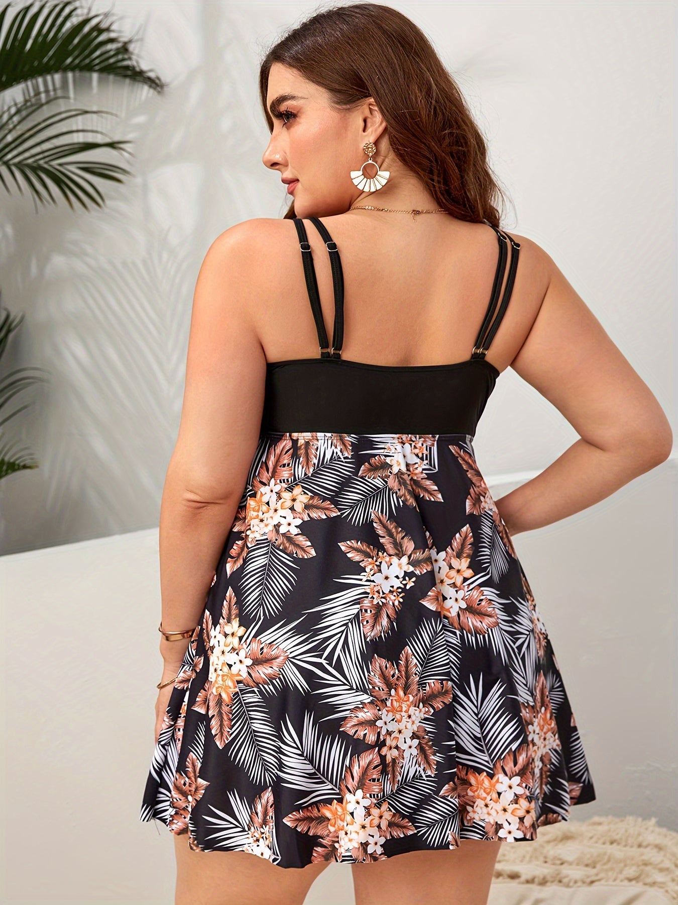Комплект танкини с крупным цветочным принтом и юбочной верхней частью с съемной подкладкой