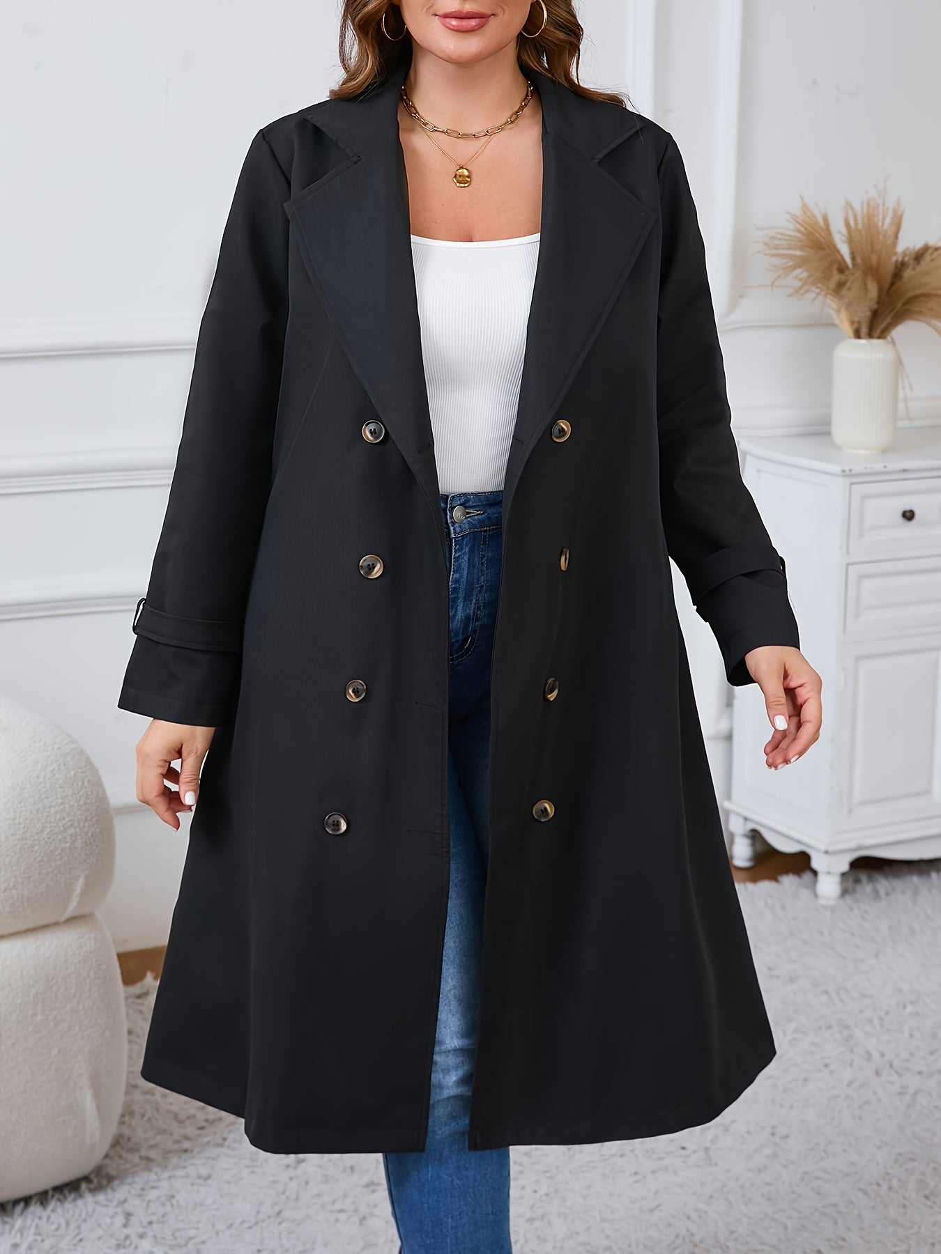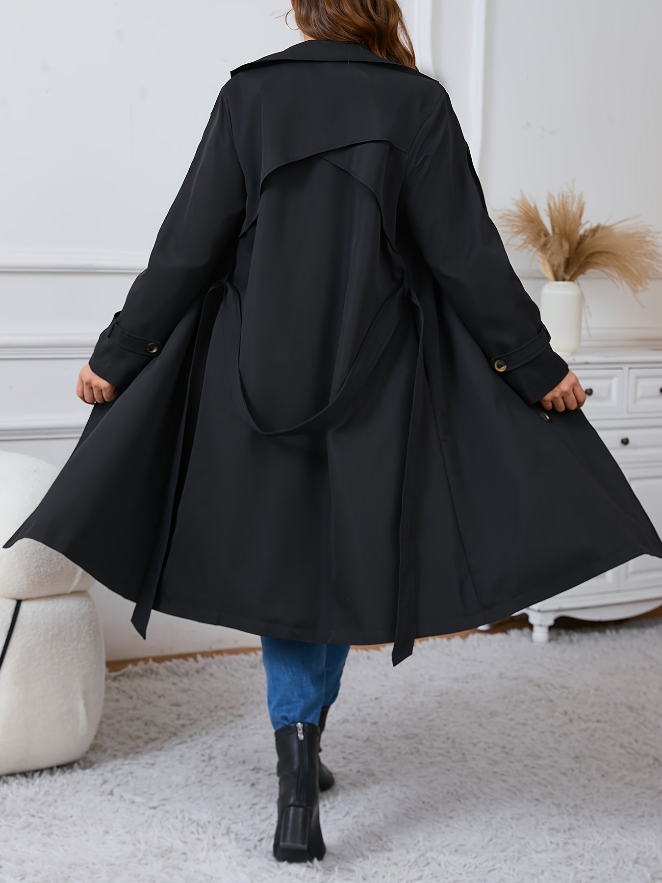 Повседневный тренчкот большого размера для женщин, полиэстер, двубортный, с длинными рукавами, осень-зима
