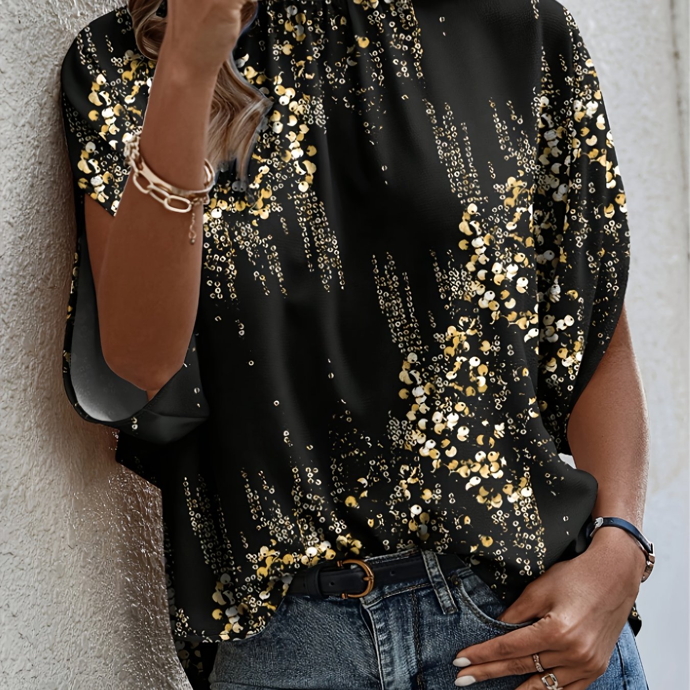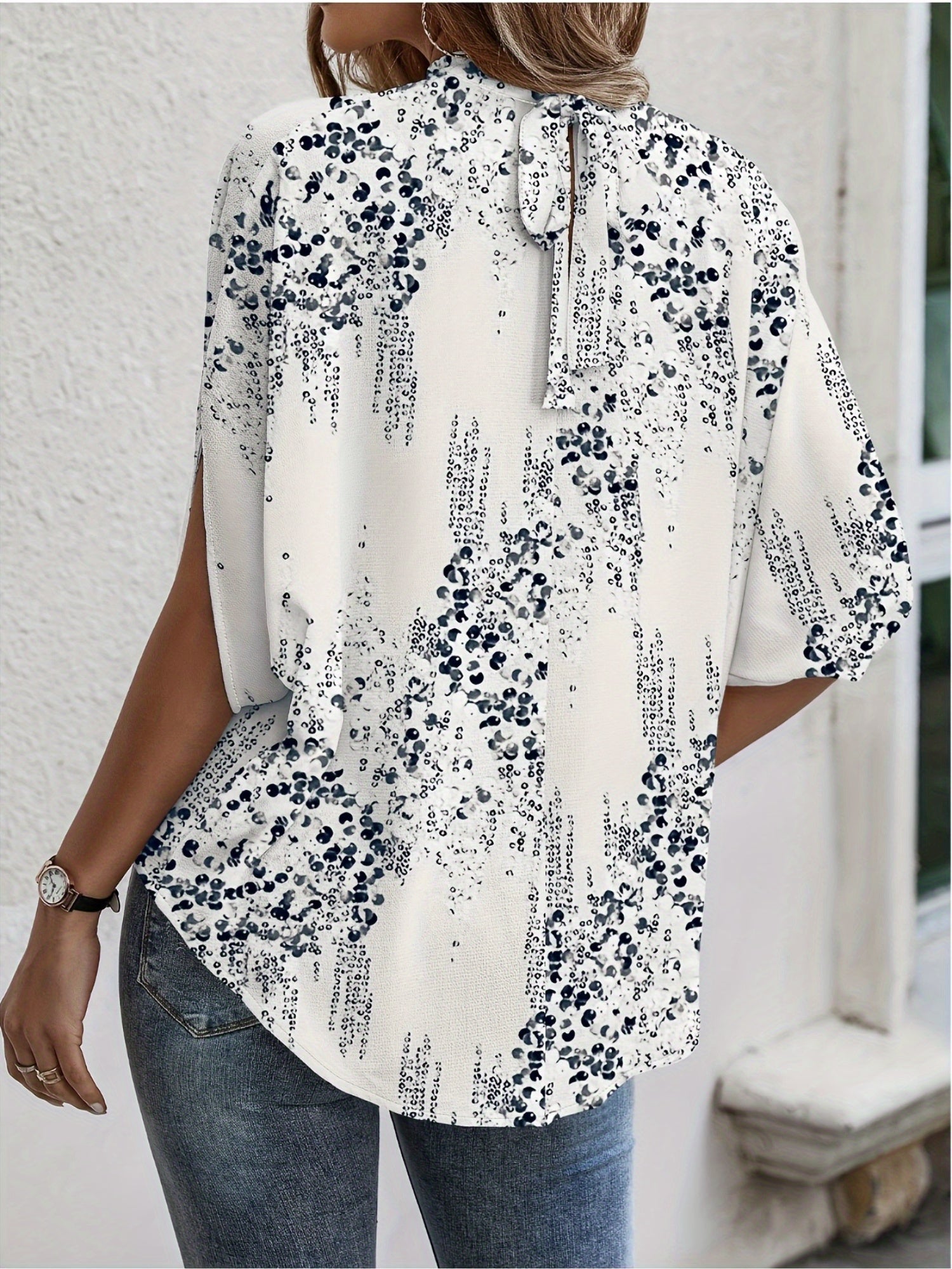 Блузка для полных женщин с бантиками и цветочным принтом, коричневая летняя топ
