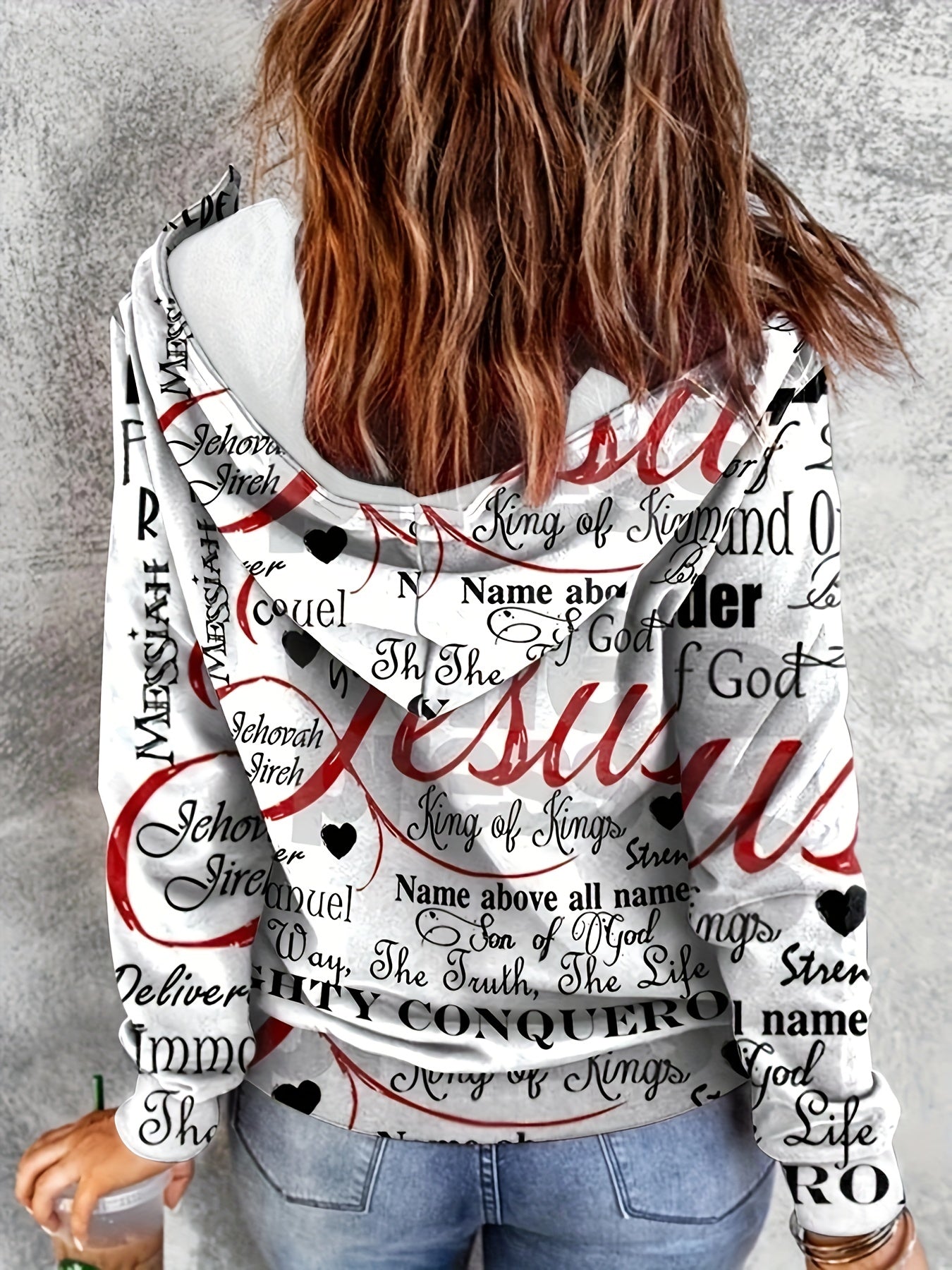 Удобная толстовка с молнией и принтом букв для женщин plus size