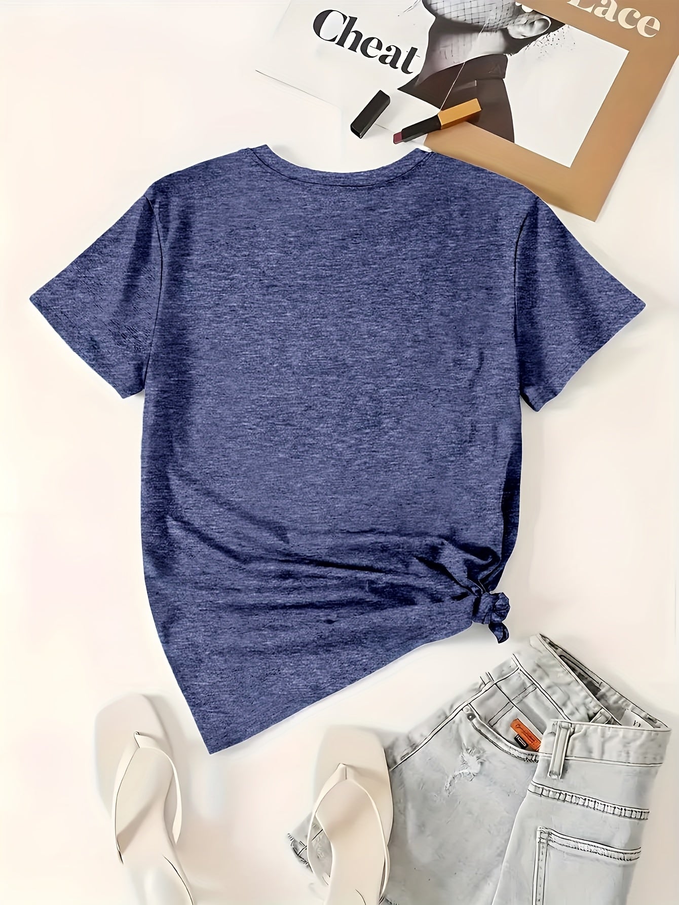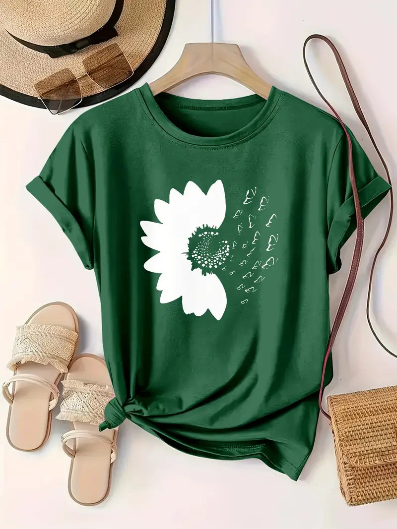 Plus Size Women's Cotton Casual Short Sleeve T-Shirt Black Floral Print