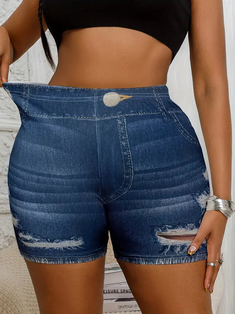 Шорты для женщин больших размеров из искусственной джинсовой ткани с прорезями, облегающие, с высокой эластичностью, повседневные штаны