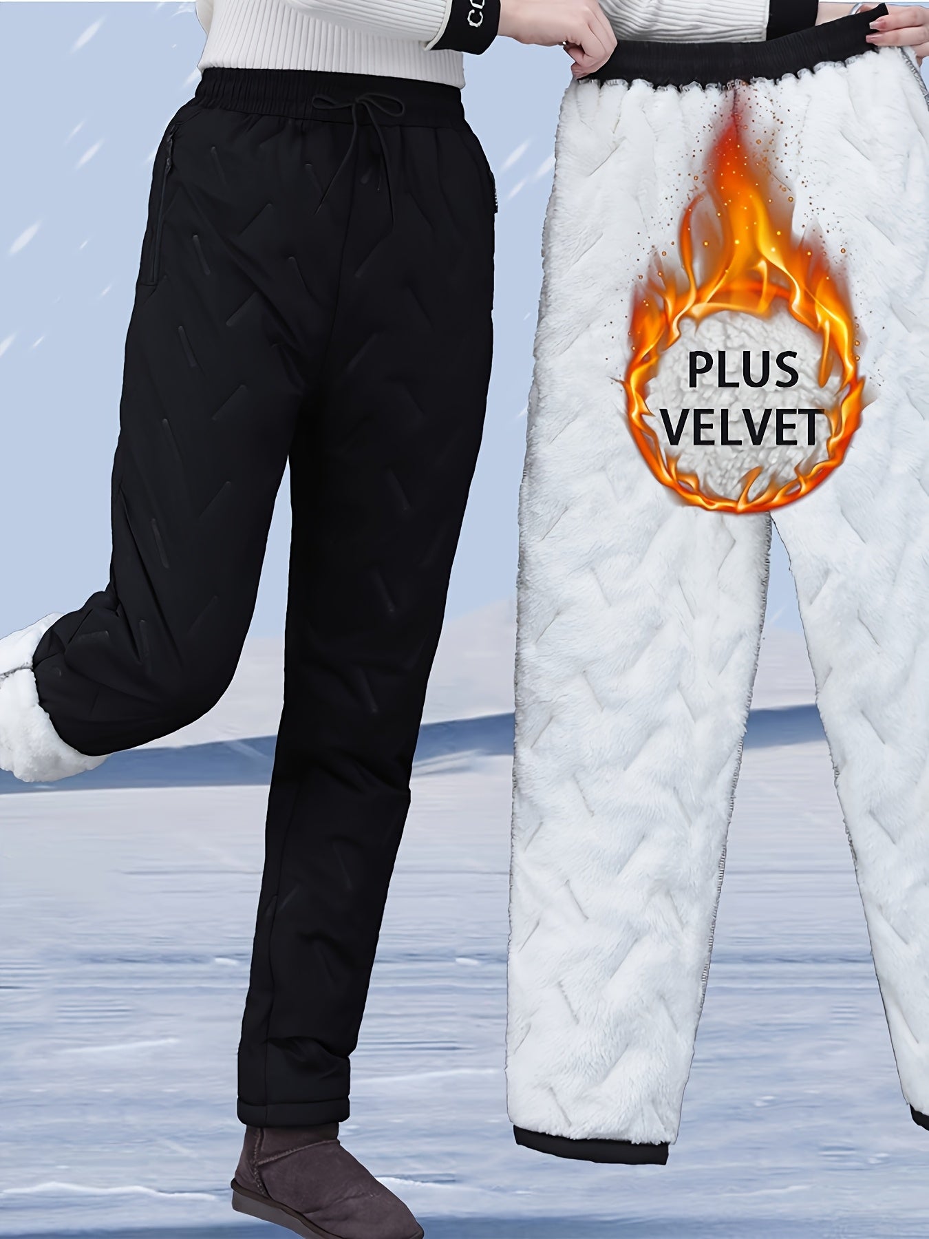 Брюки для женщин больших размеров со флисовой подкладкой, с высокой талией, для лыжного спорта и зимы