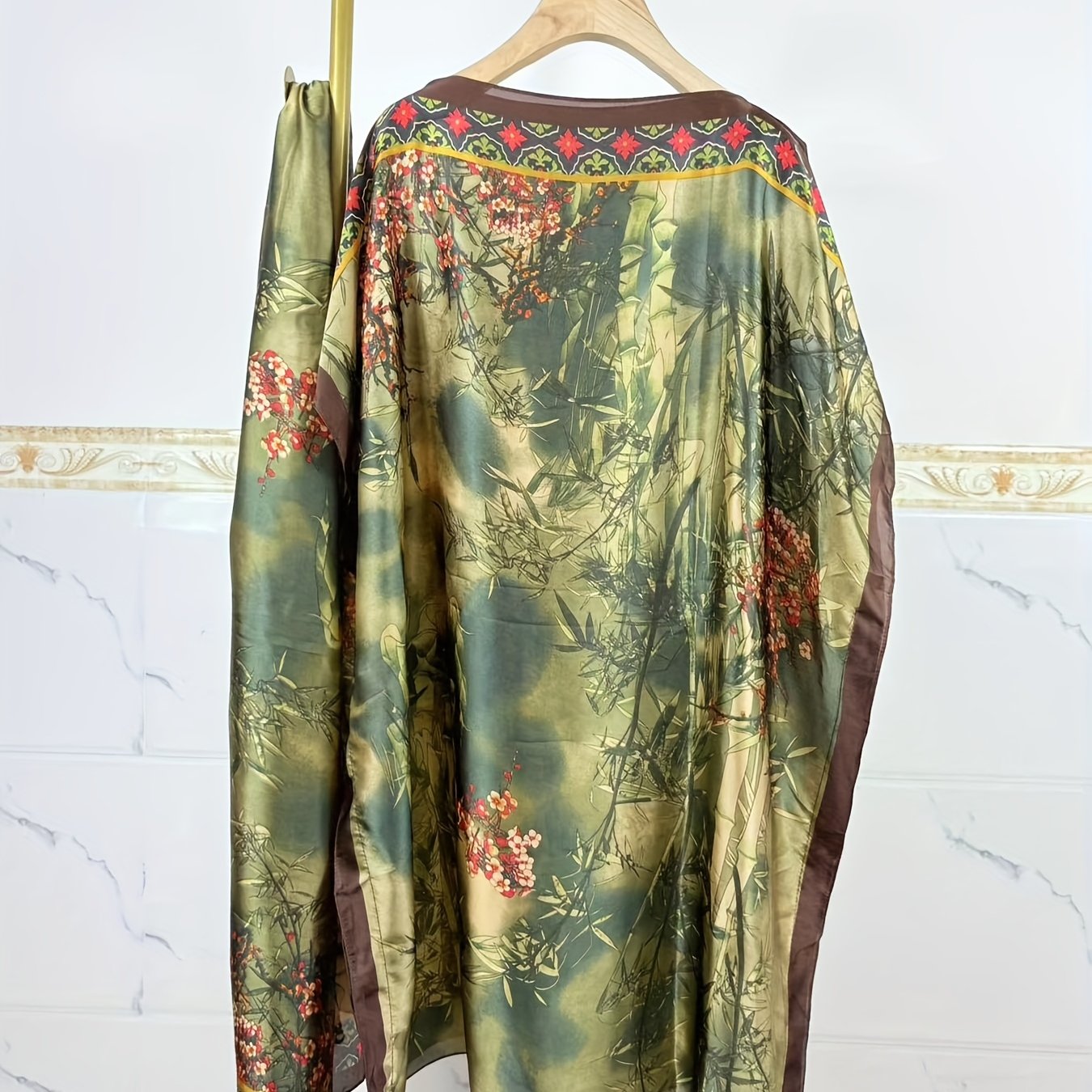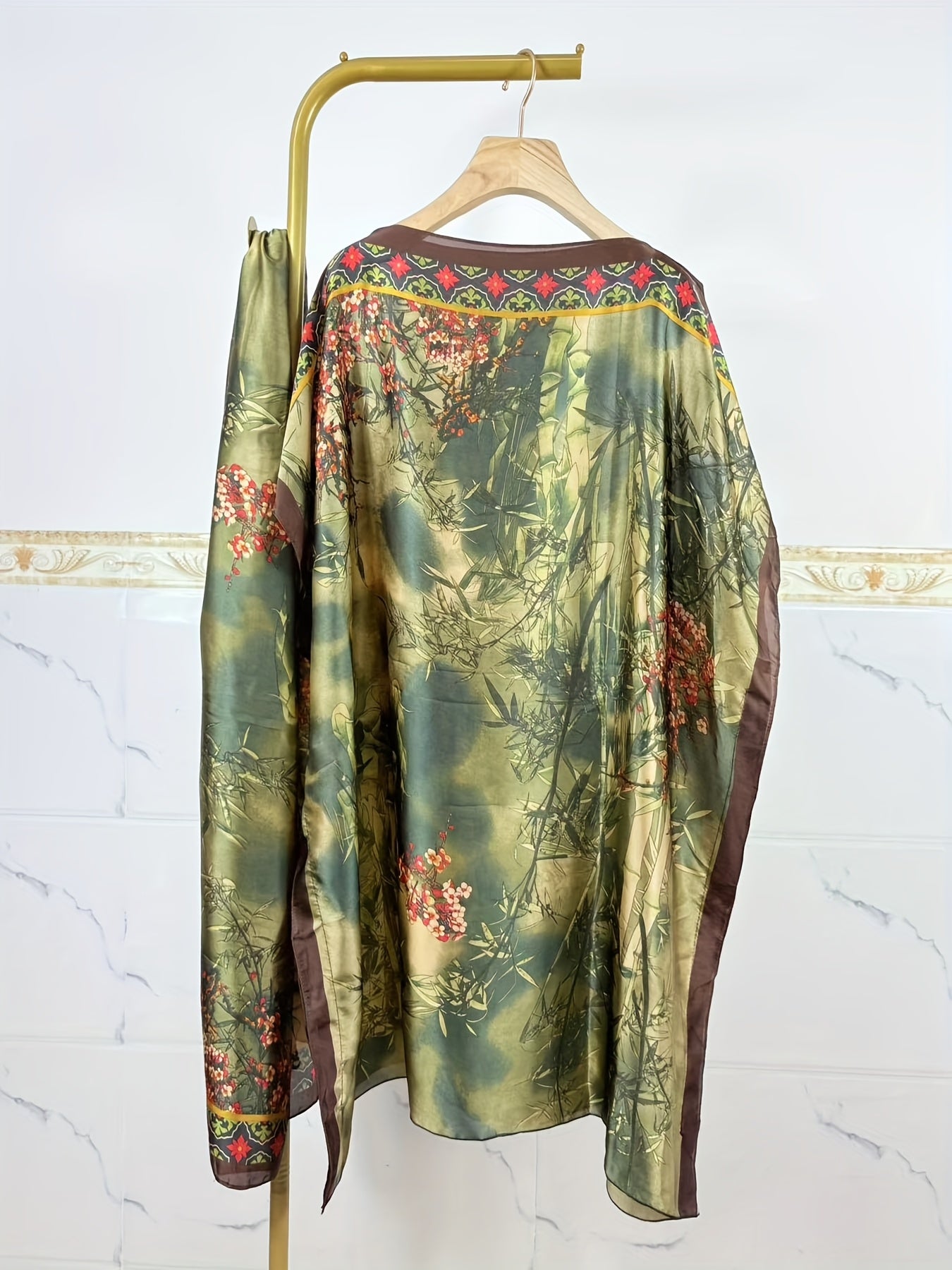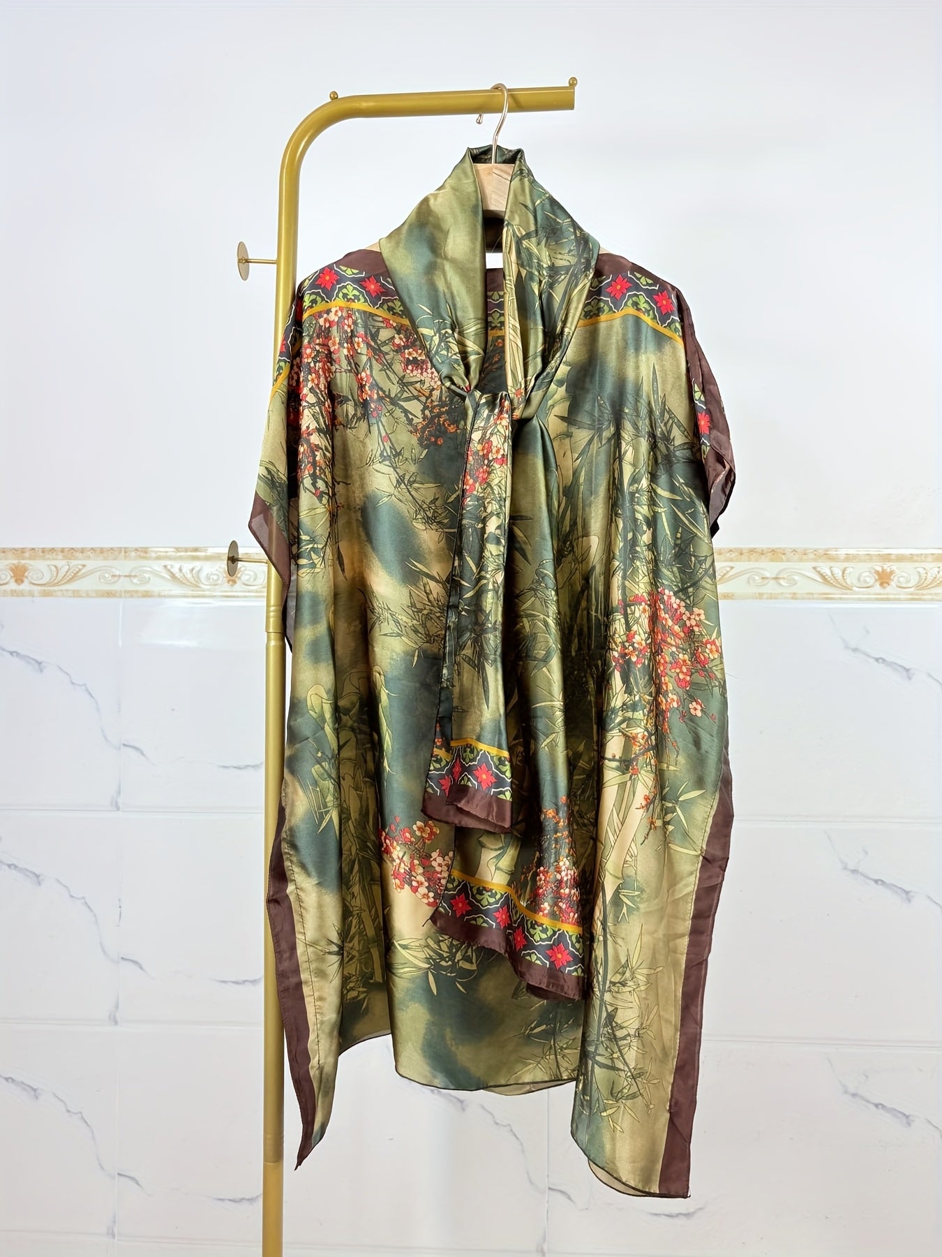 Блузка женская больших размеров с цветочным принтом зеленый и коричневый, дышащий полиэстер, повседневная и официальная