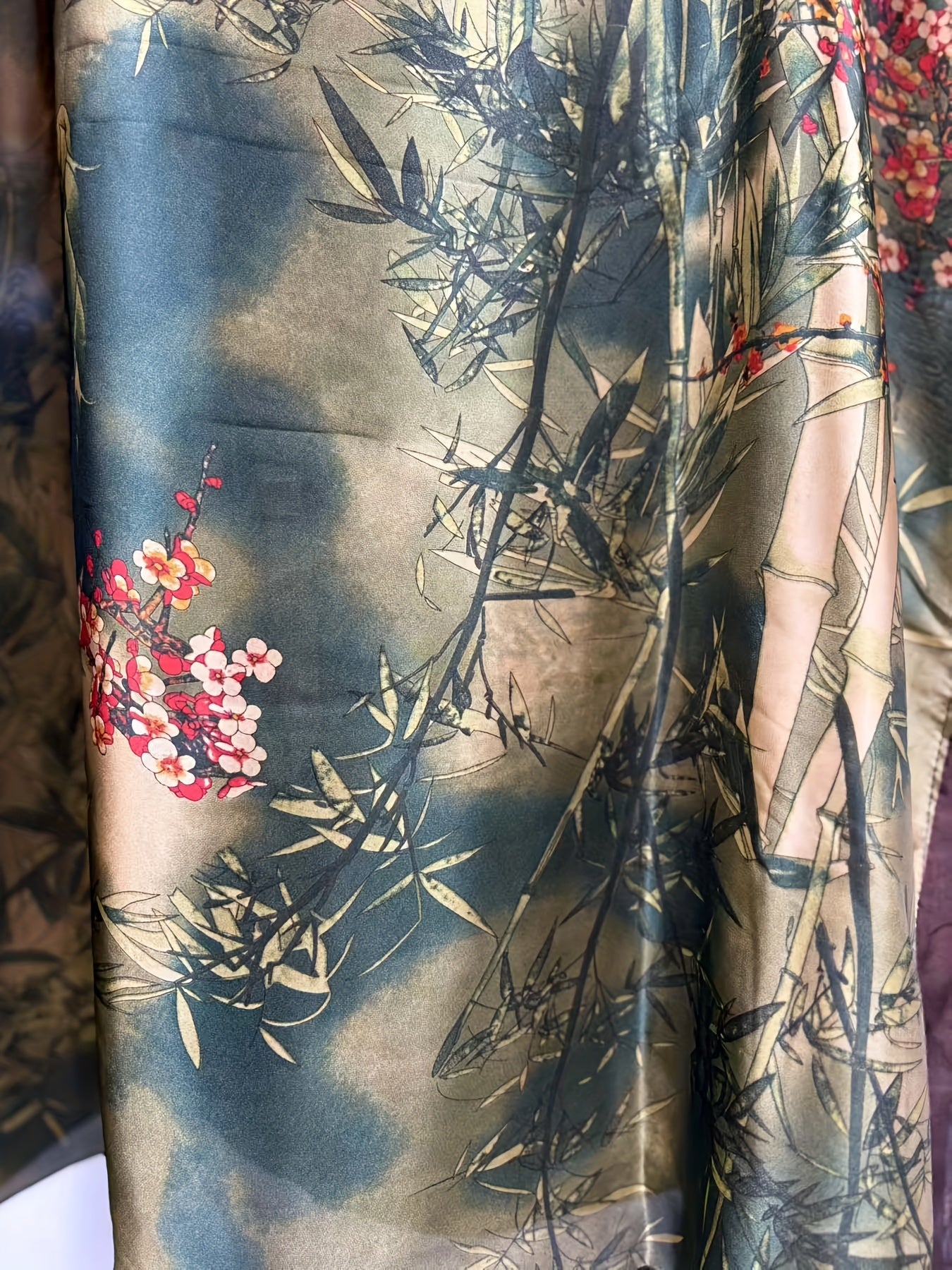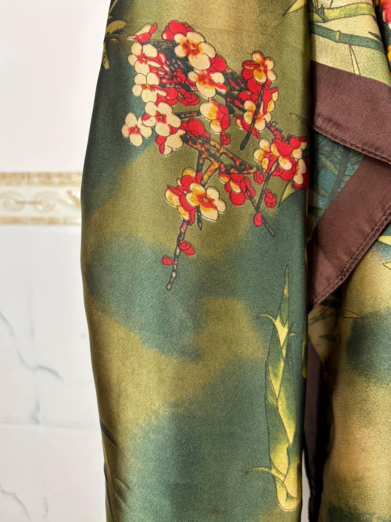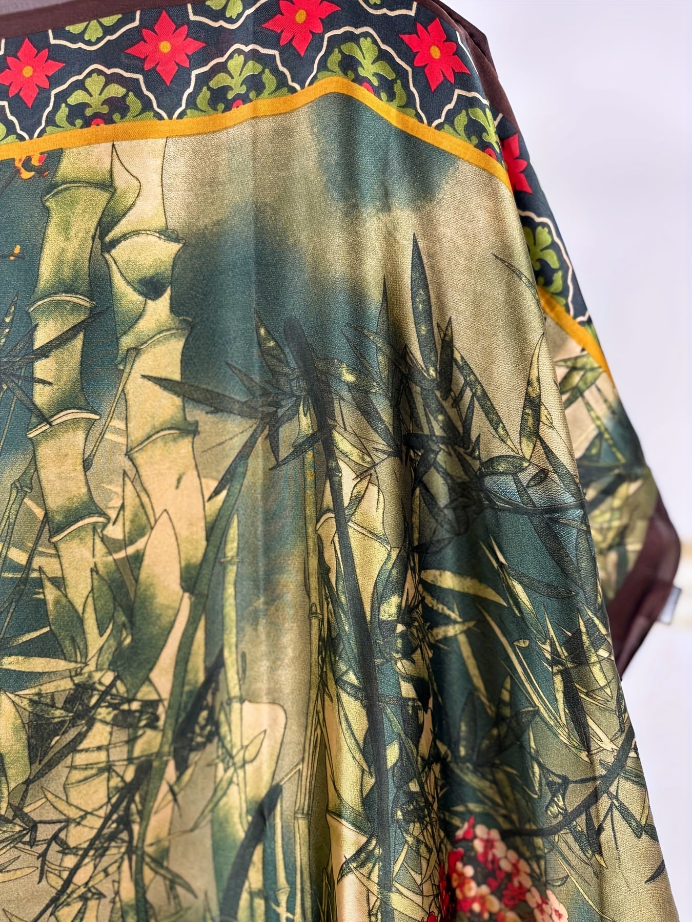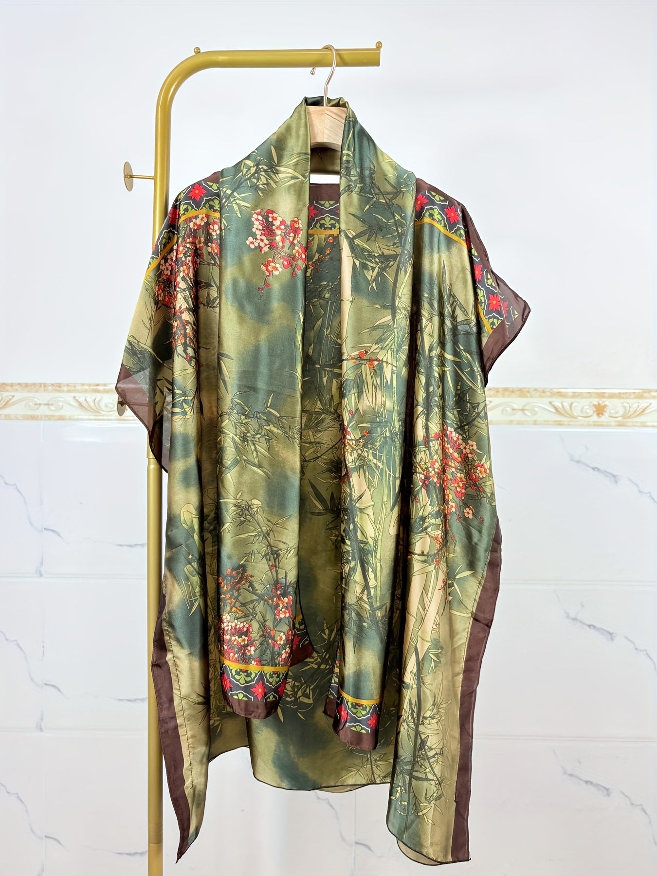 Блузка женская больших размеров с цветочным принтом зеленый и коричневый, дышащий полиэстер, повседневная и официальная